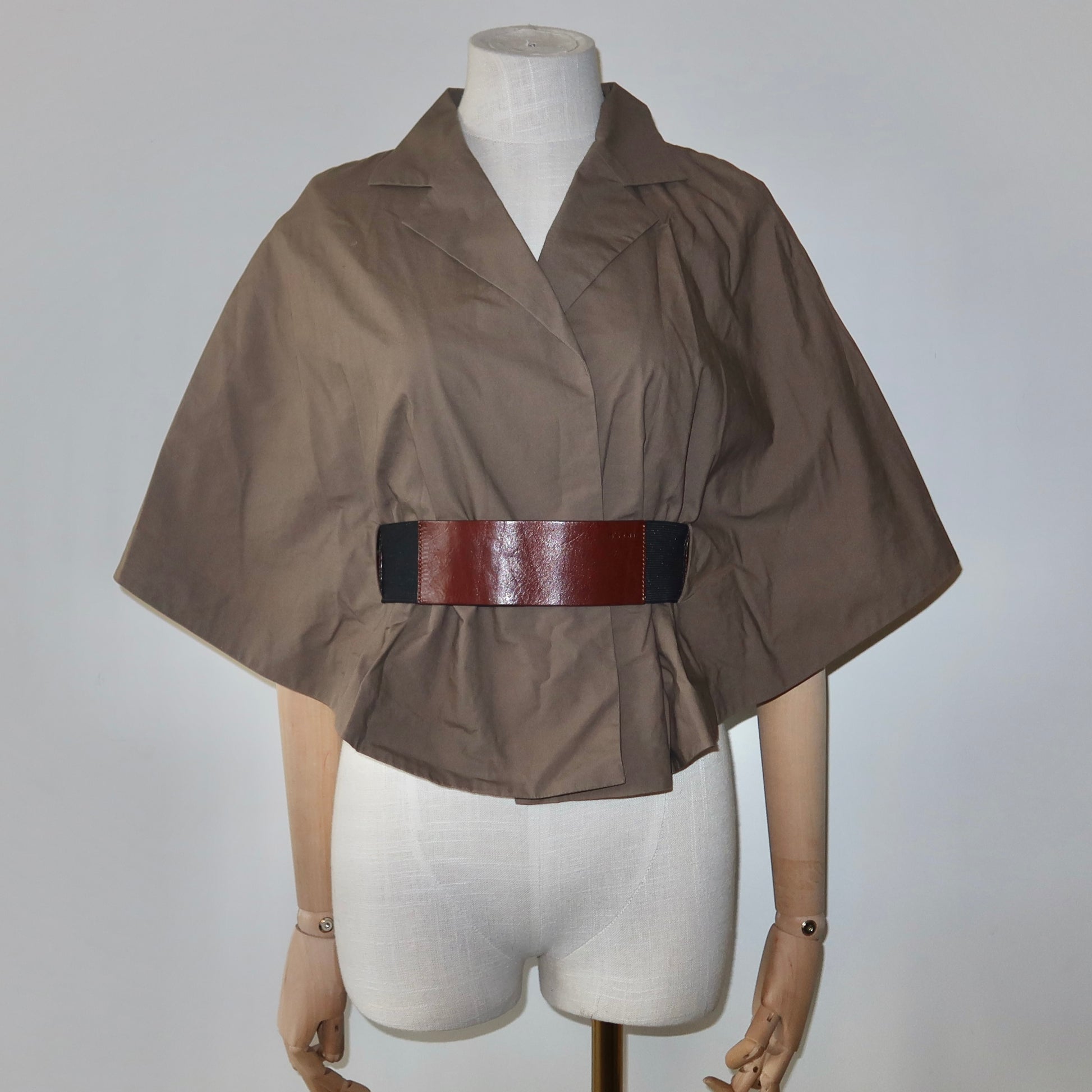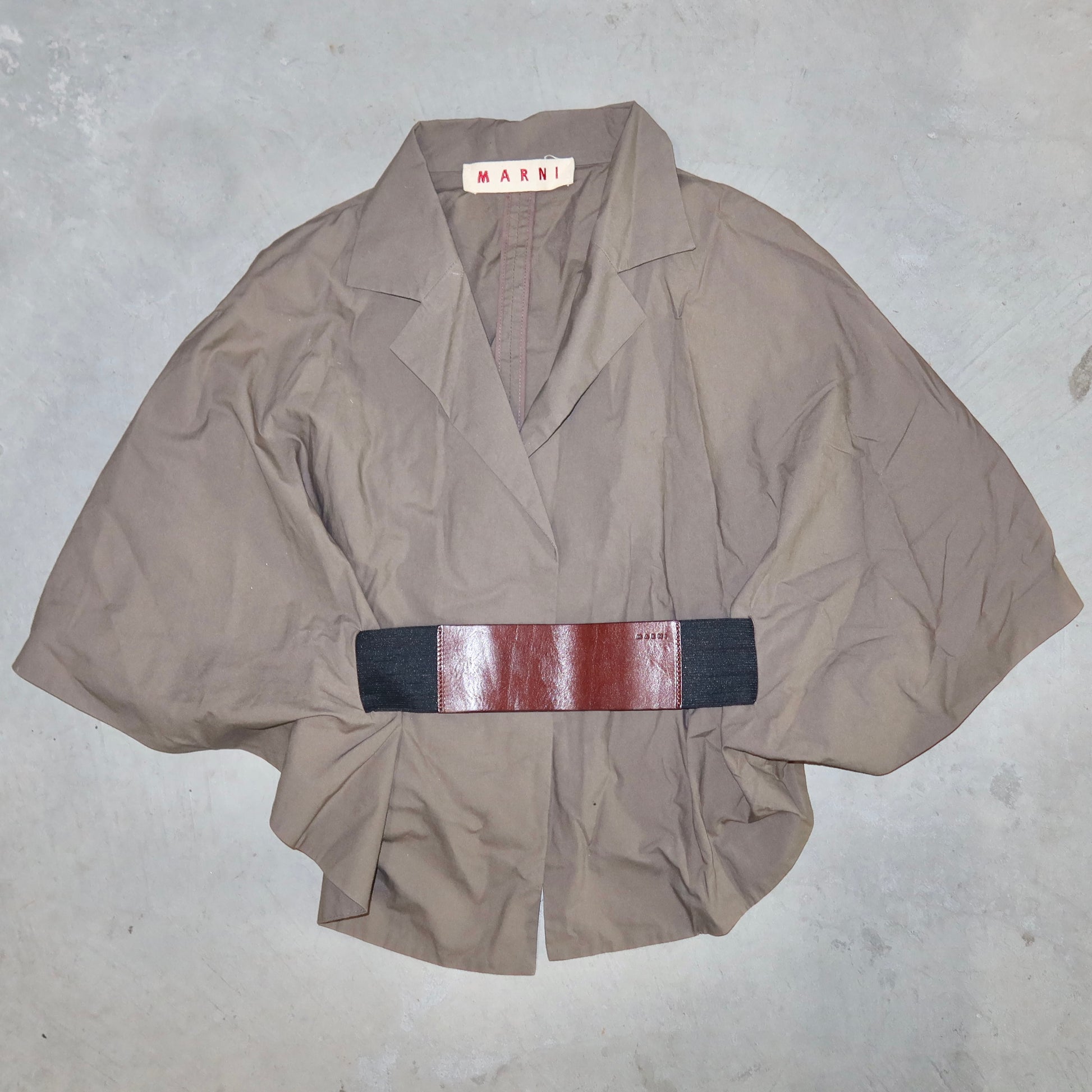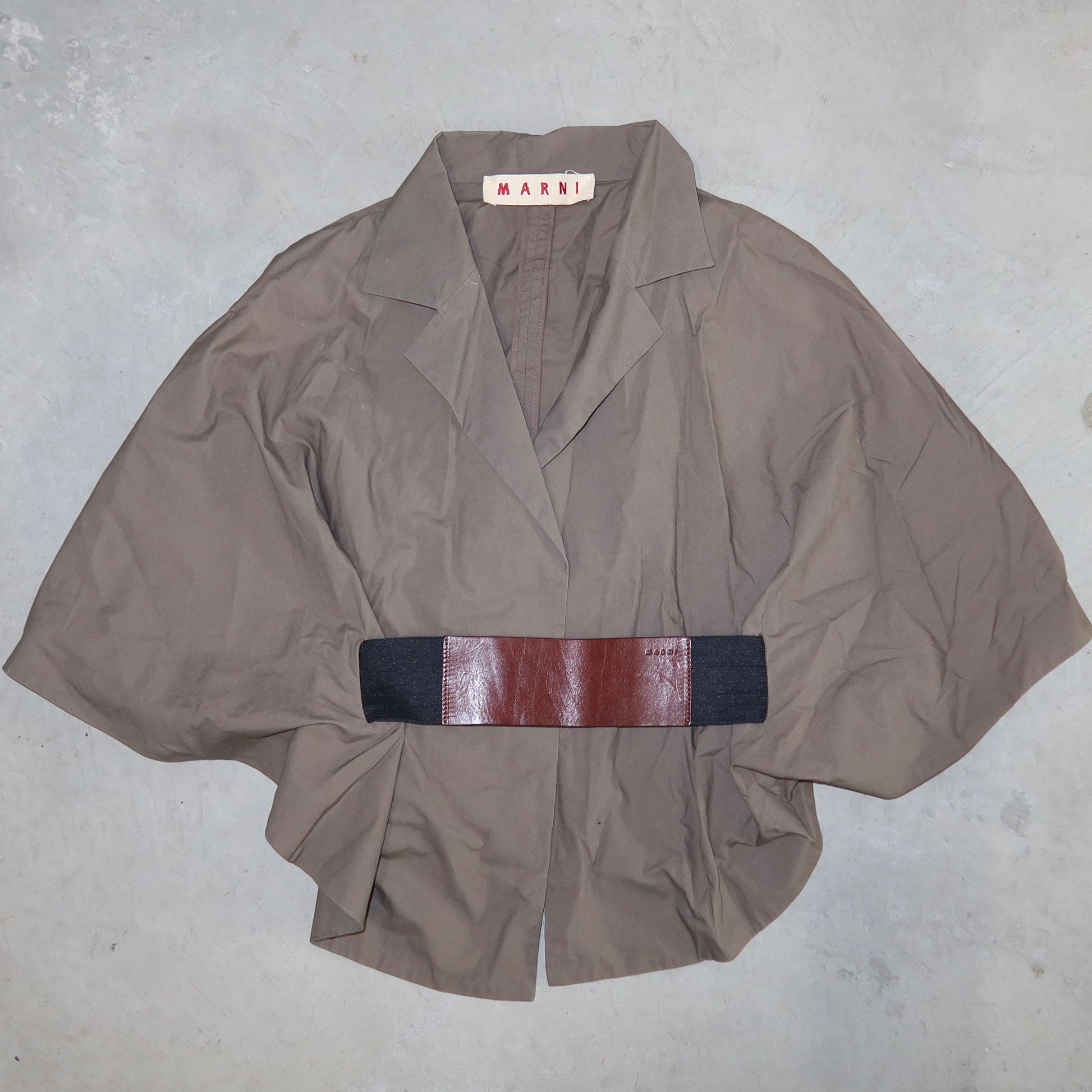 Gorgeous Marni khaki cape with stretchy waist belt. Forms the most beautiful shape on the body.