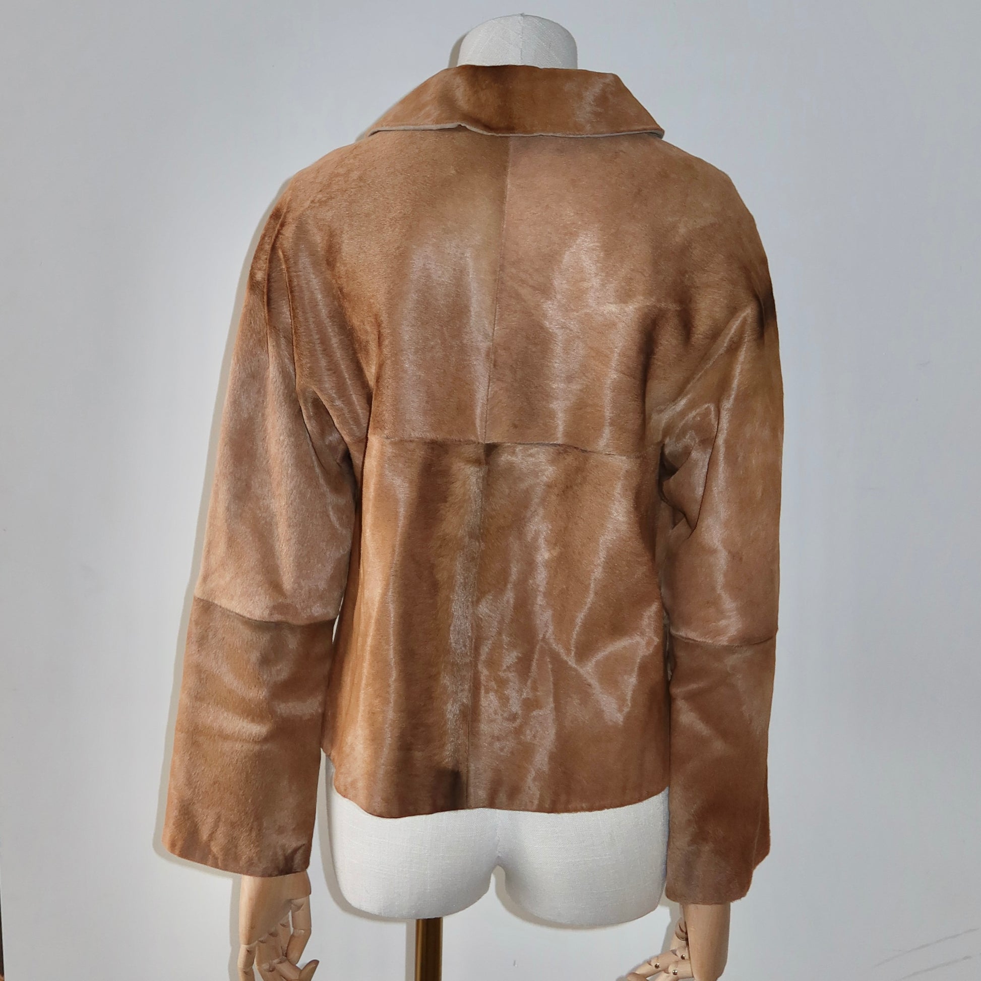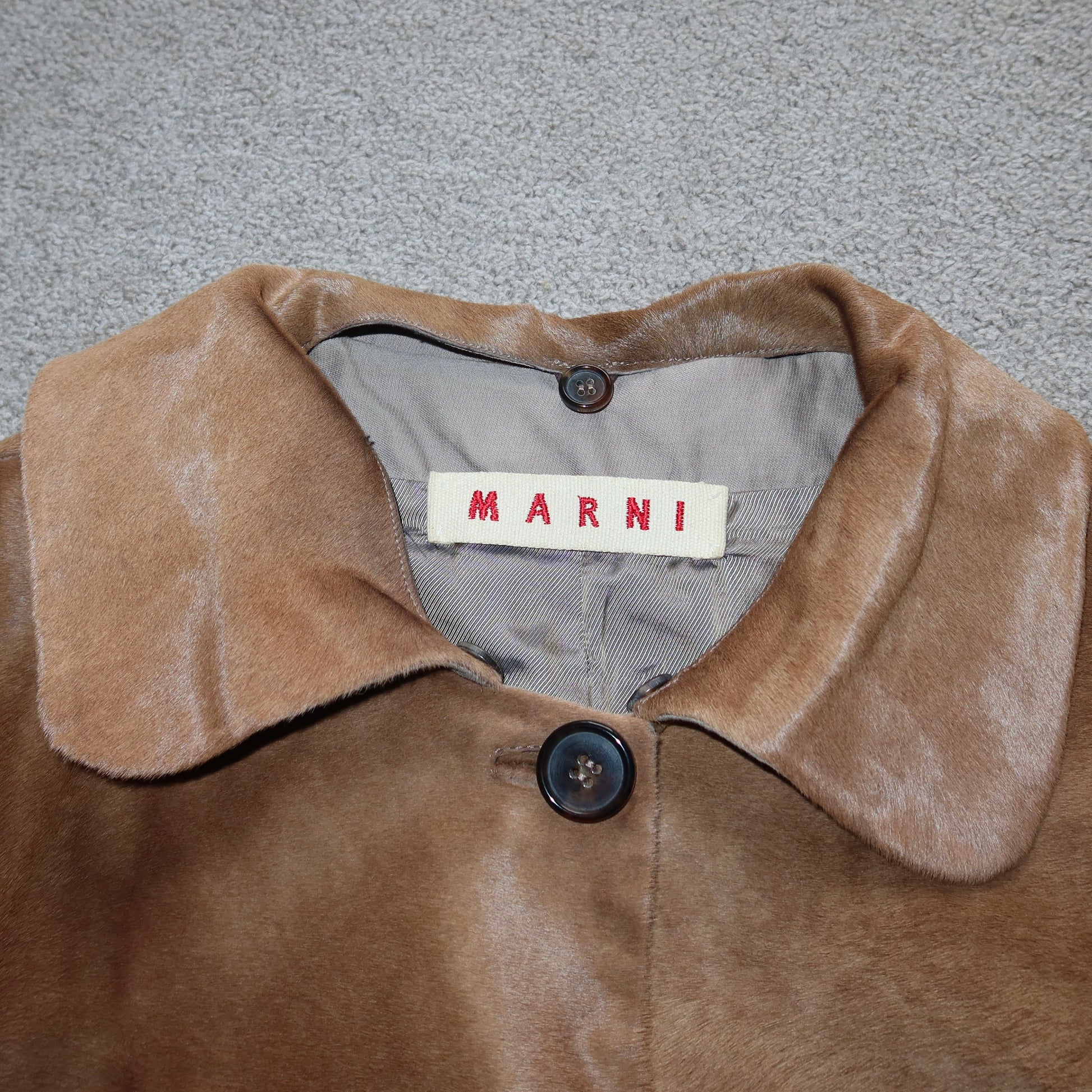 Beautiful cowhide Marni jacket with removable collar. Black fur collar attachment used as a styling prop only! Find available fur collars here.
