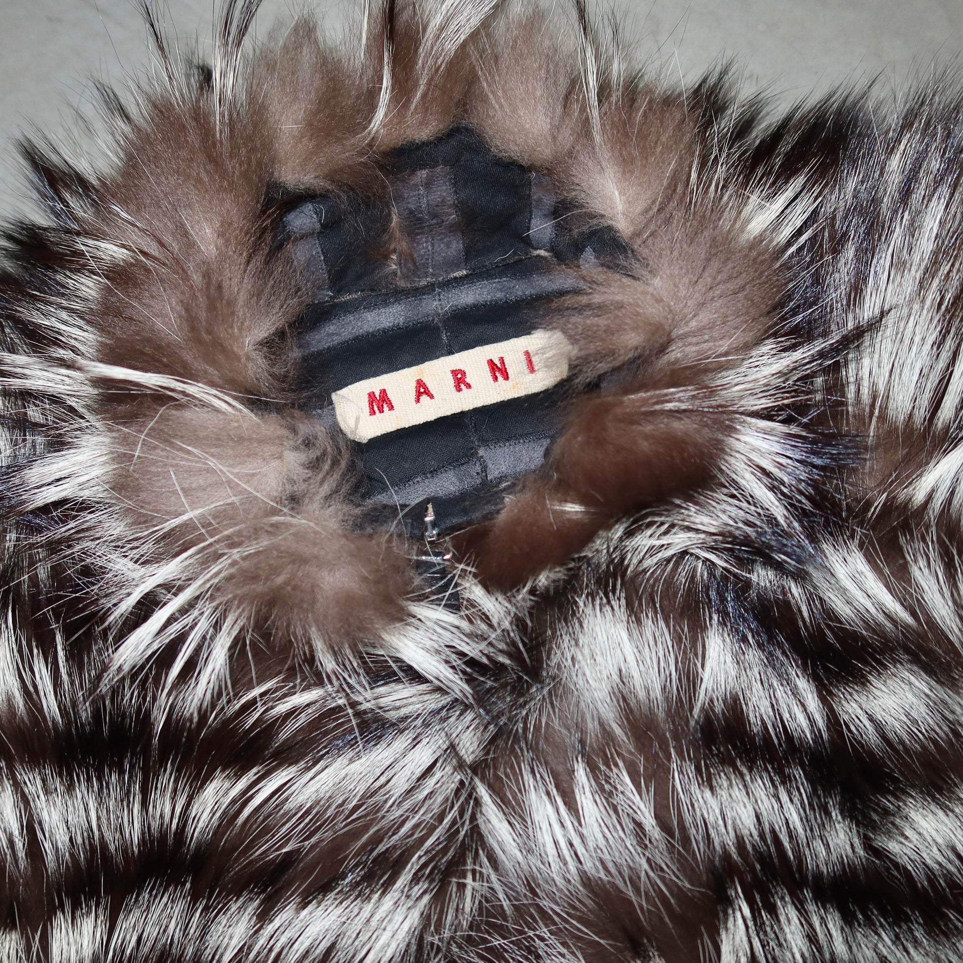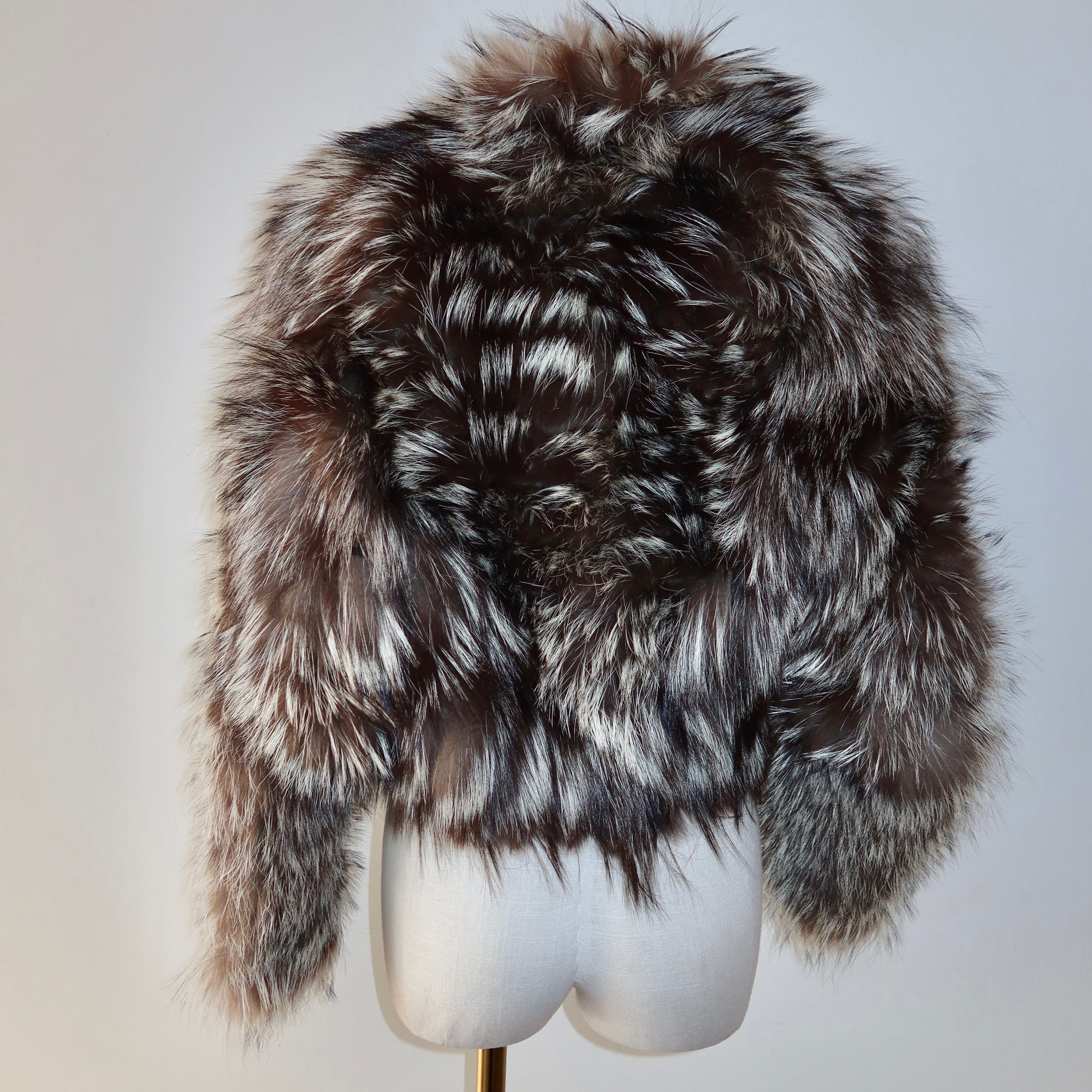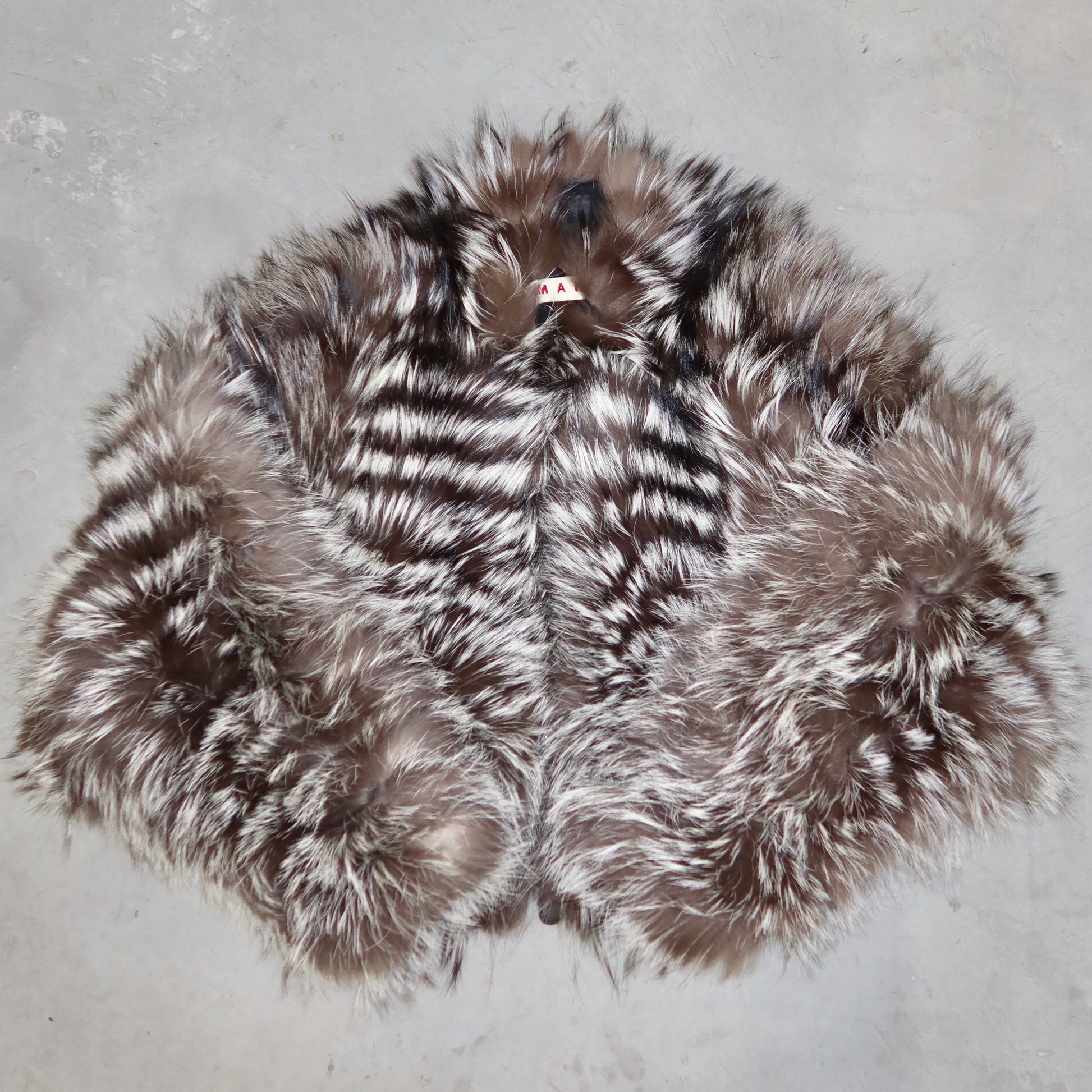 Incredible silver fox fur coat by Marni. This is a zip up bomber with batwing style sleeves. Shoulders are very exaggerated when on. No lining.