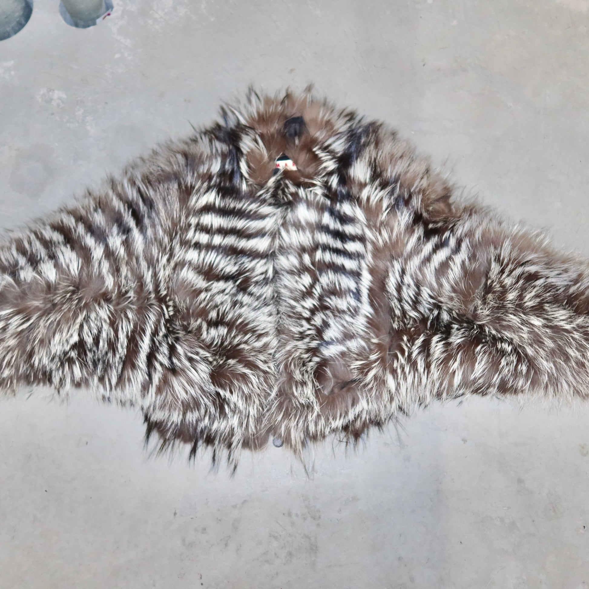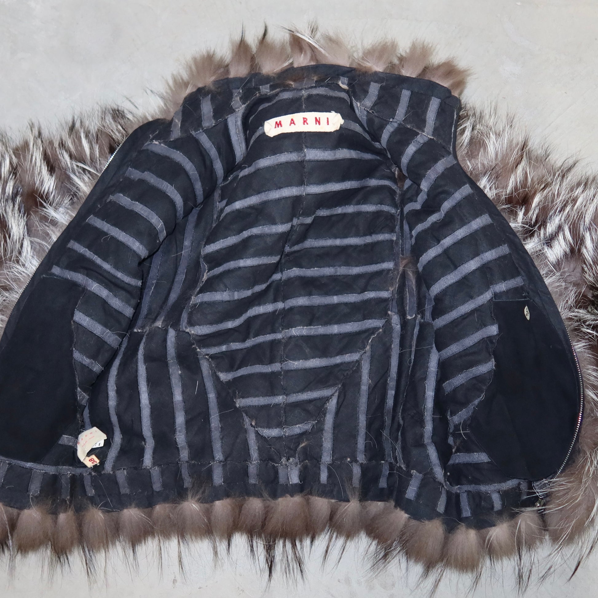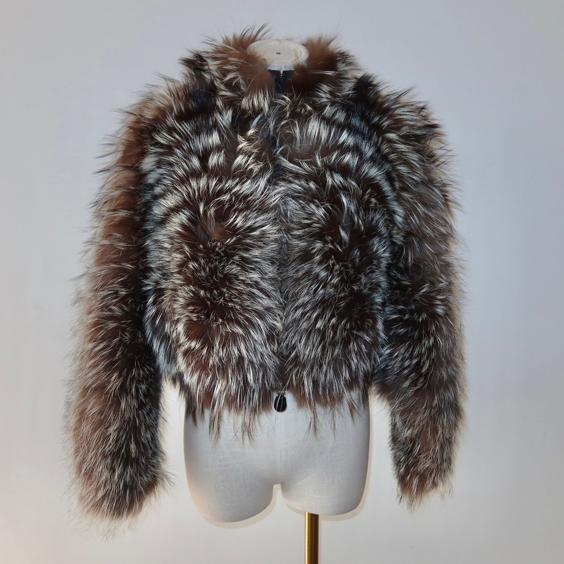 Incredible silver fox fur coat by Marni. This is a zip up bomber with batwing style sleeves. Shoulders are very exaggerated when on. No lining.
