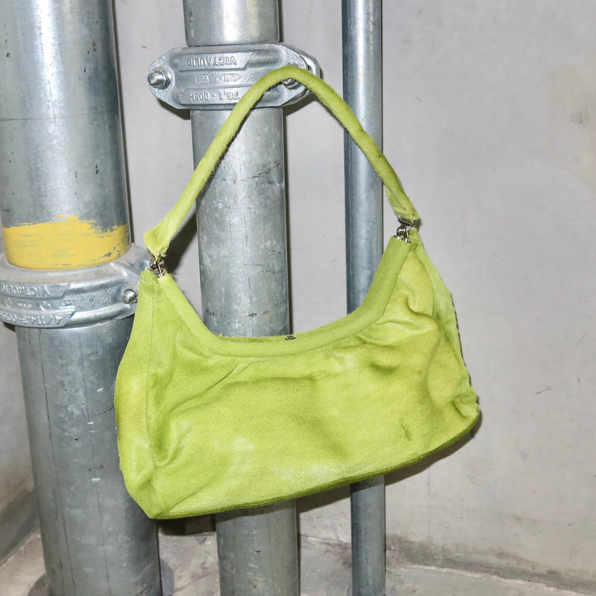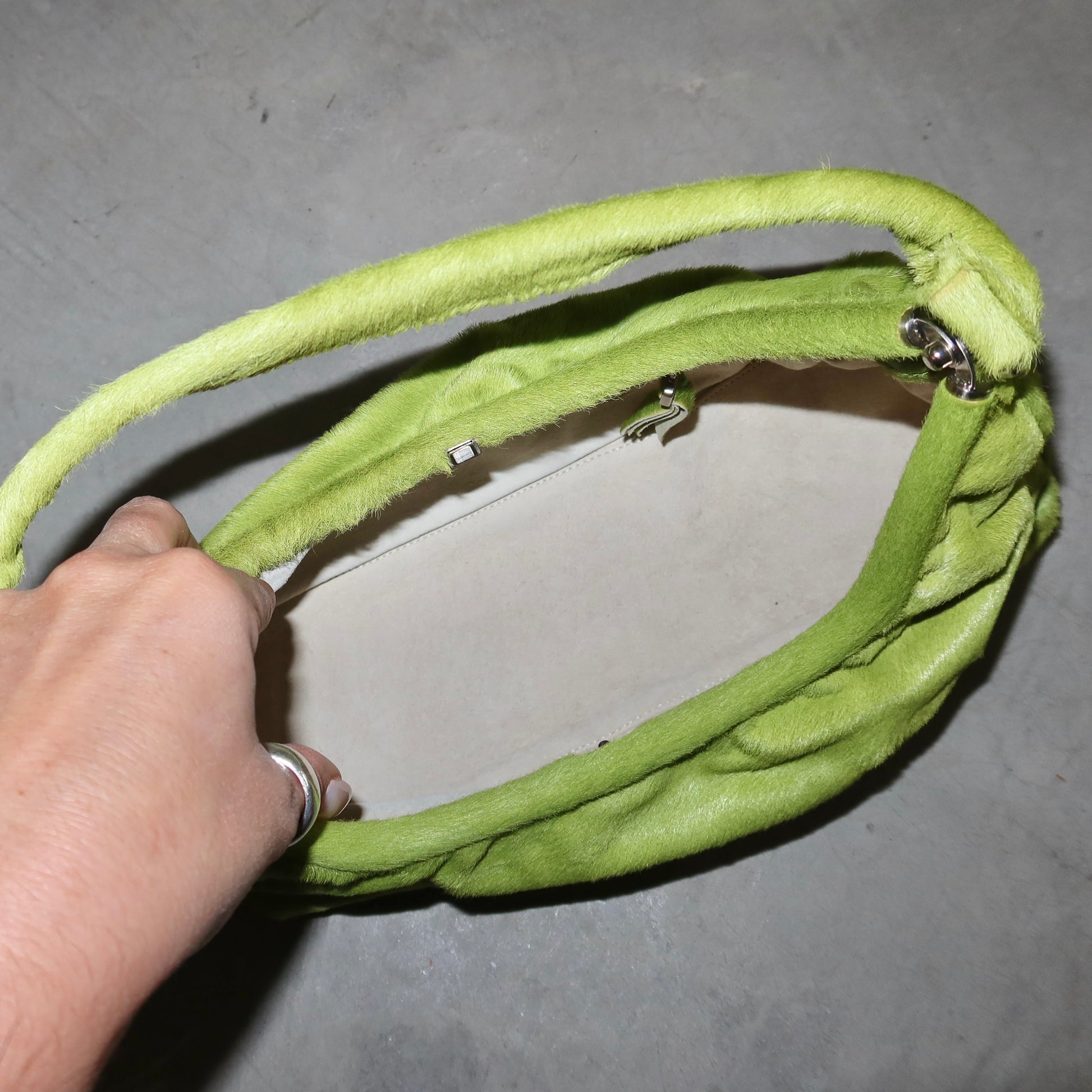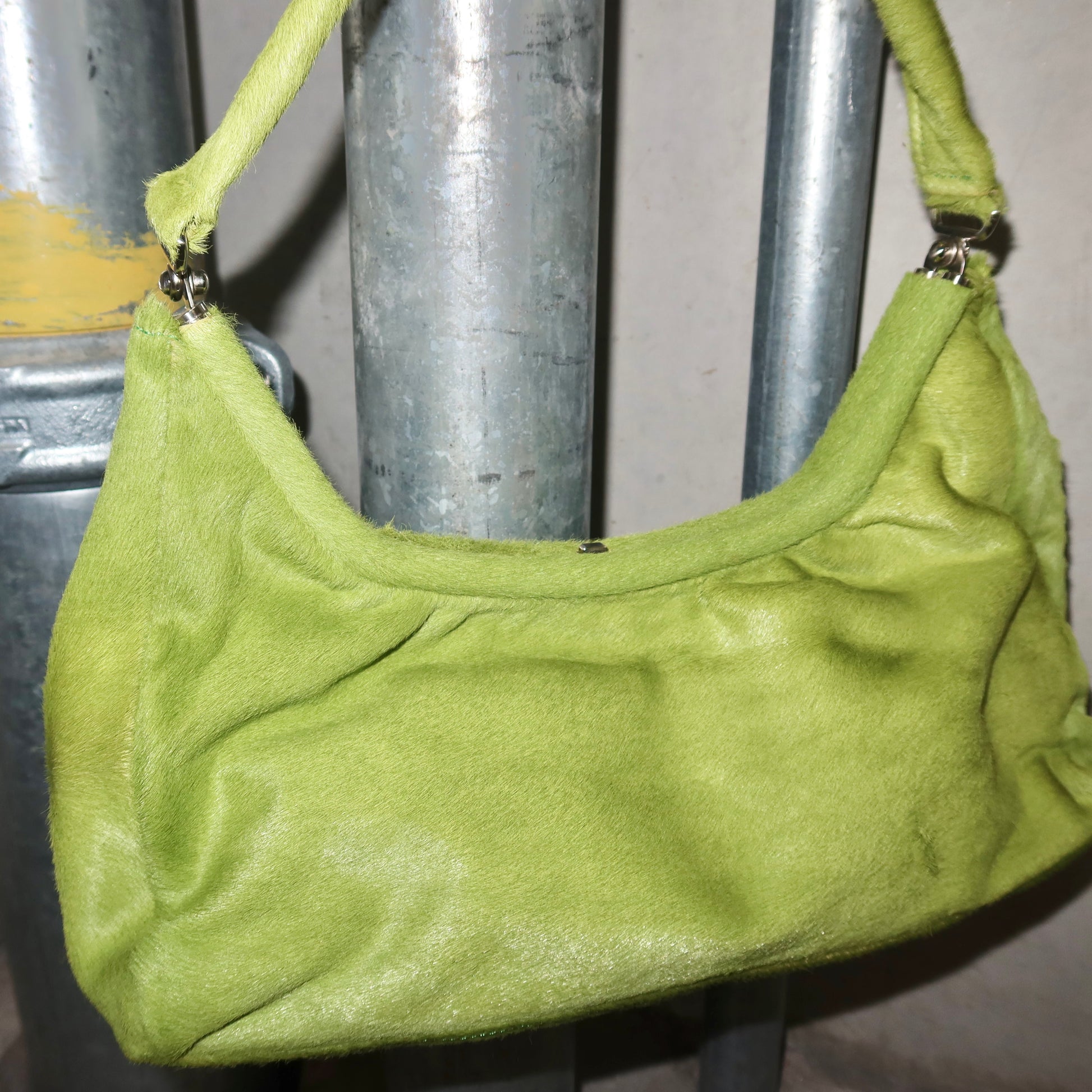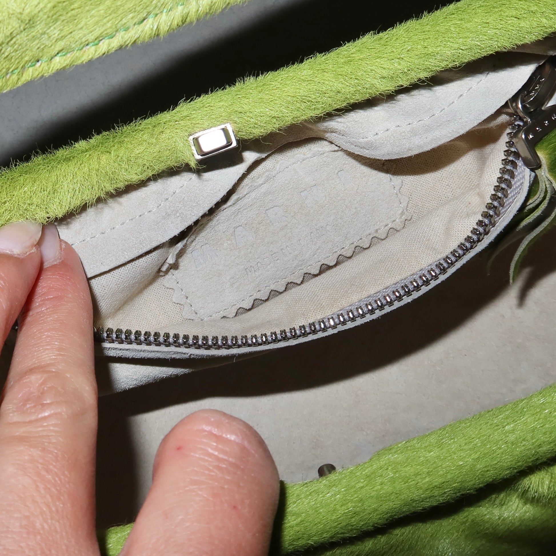 The cutest Marni vibrant green cowhide bag. Clasp opening (push down on the little button to open).