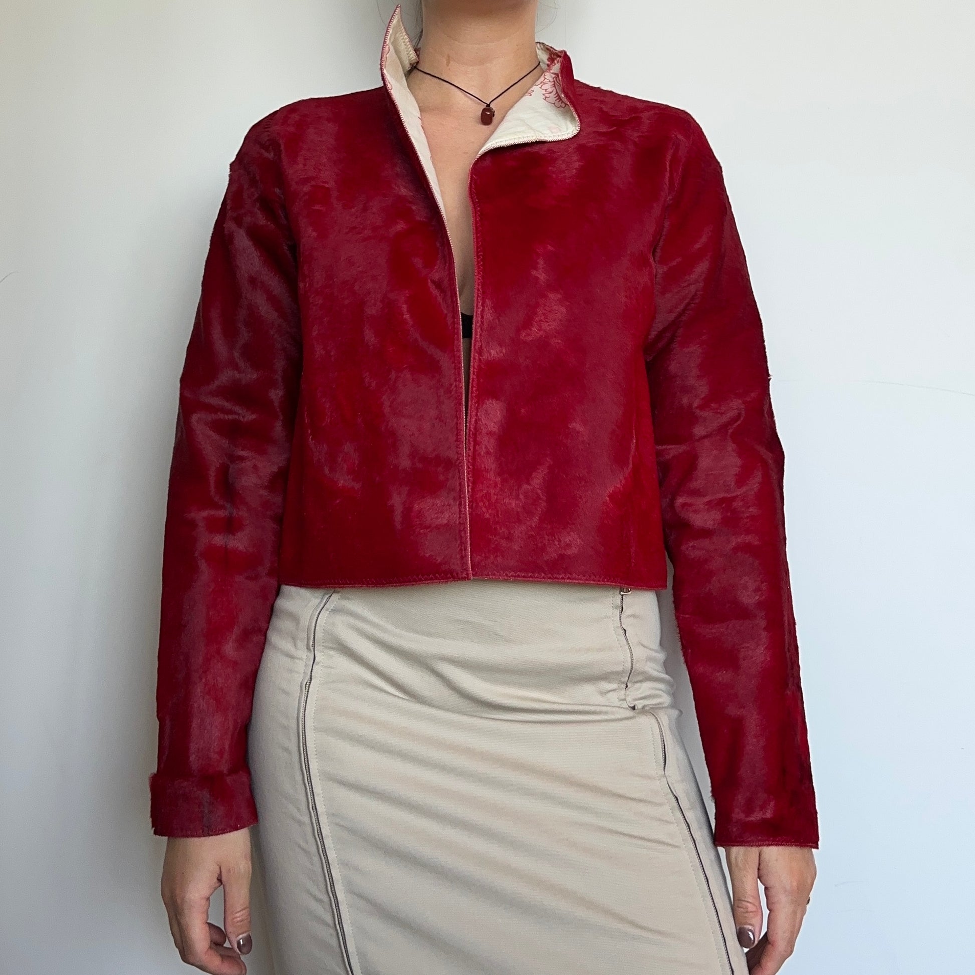 Stunning rare Marni red cowhide jacket. The chicest shape with high neck and cropped body. No closure.