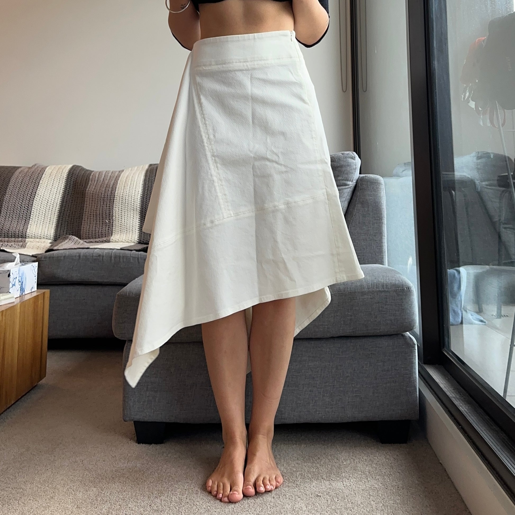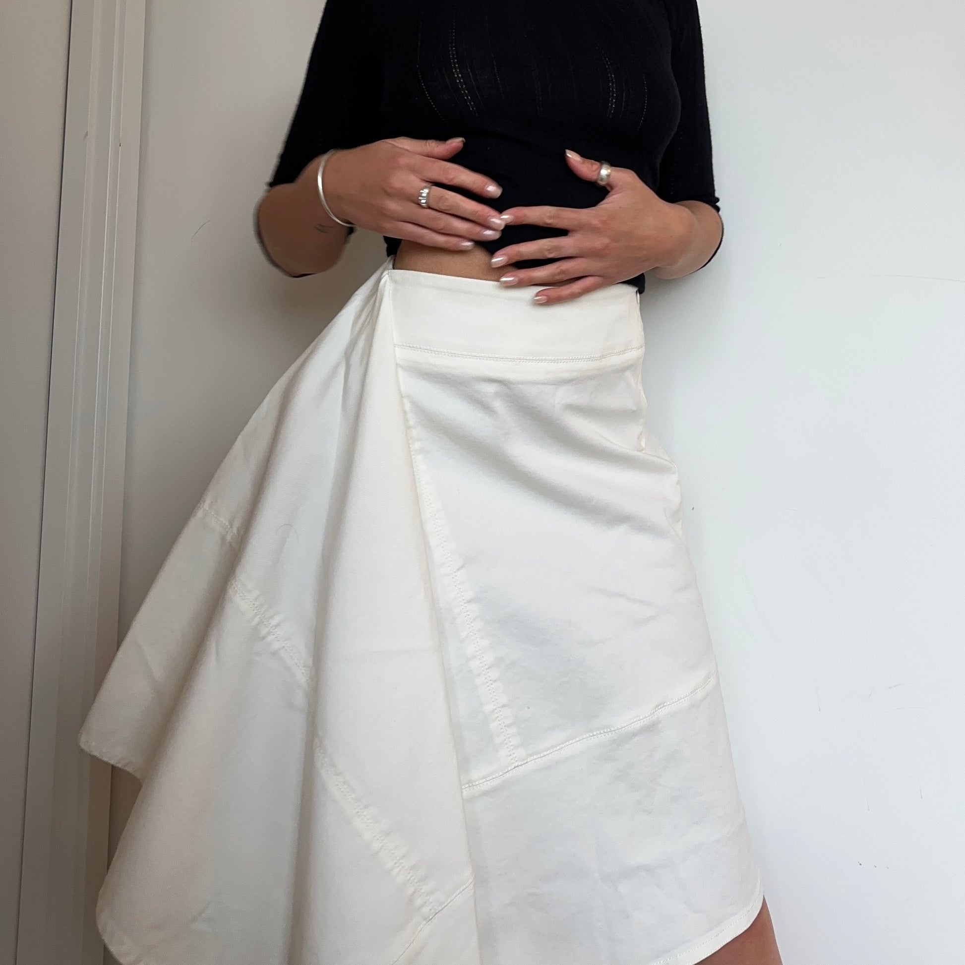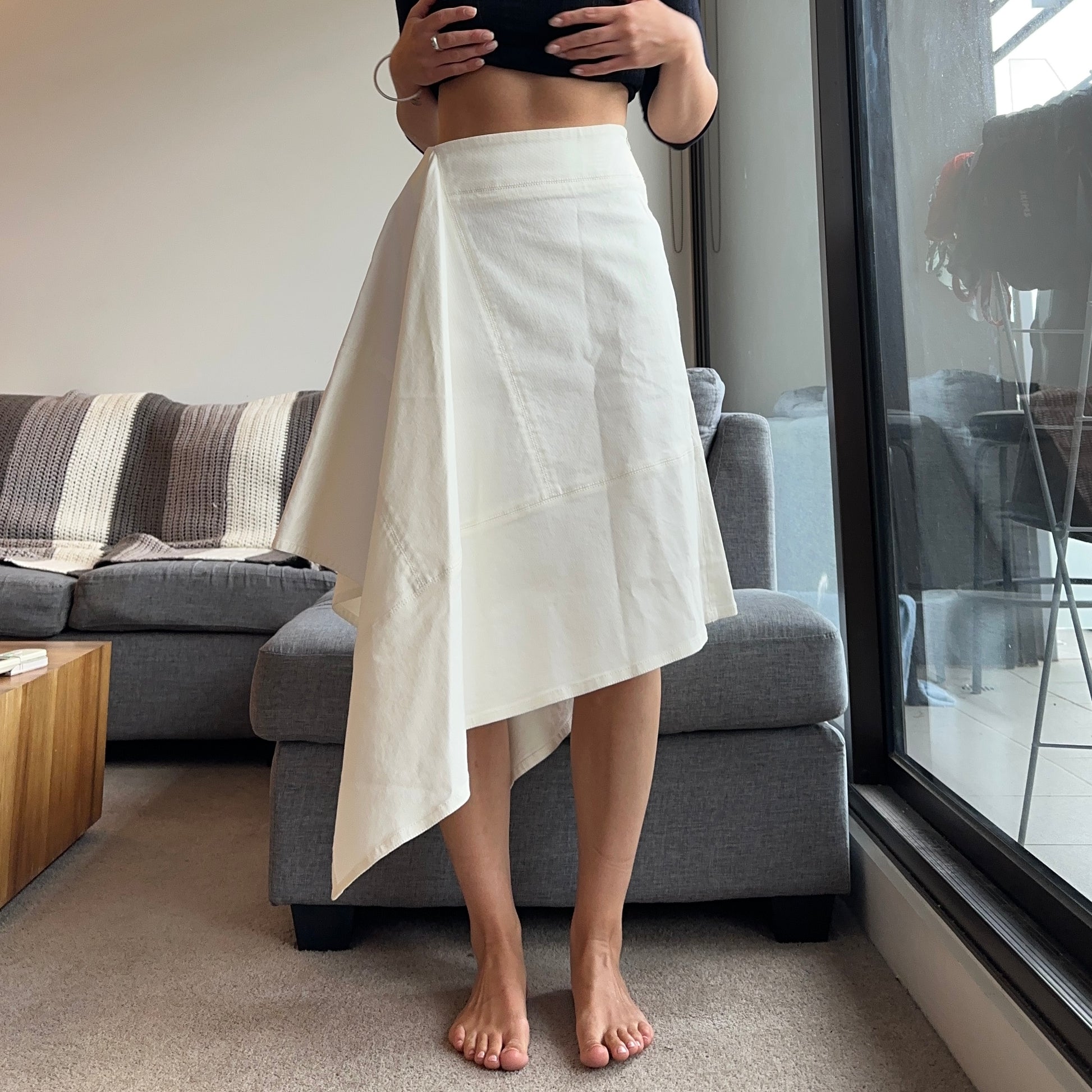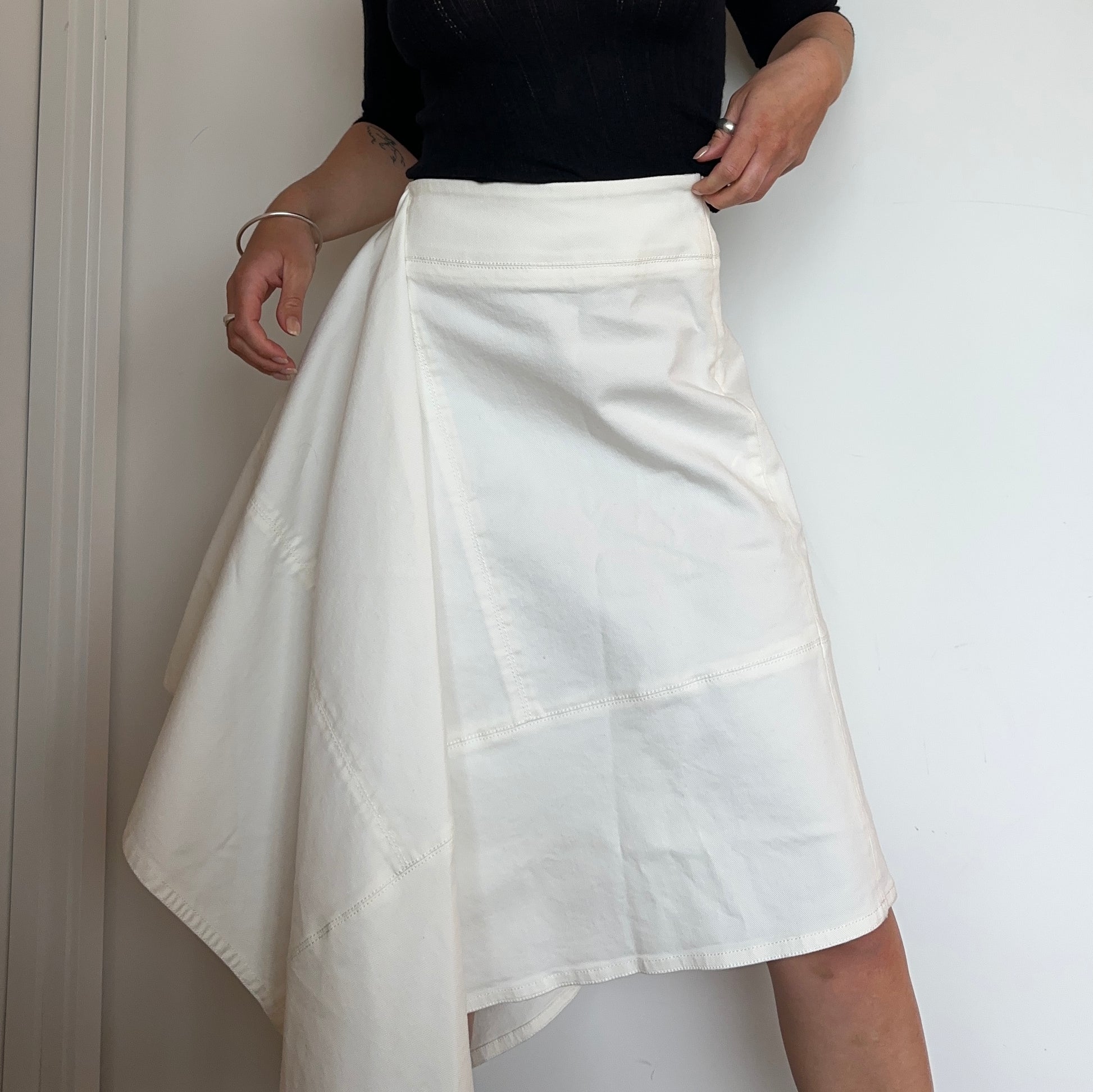 Beautiful thick cotton twill midi skirt by Marni. Beautiful draped assymmetric shape.
