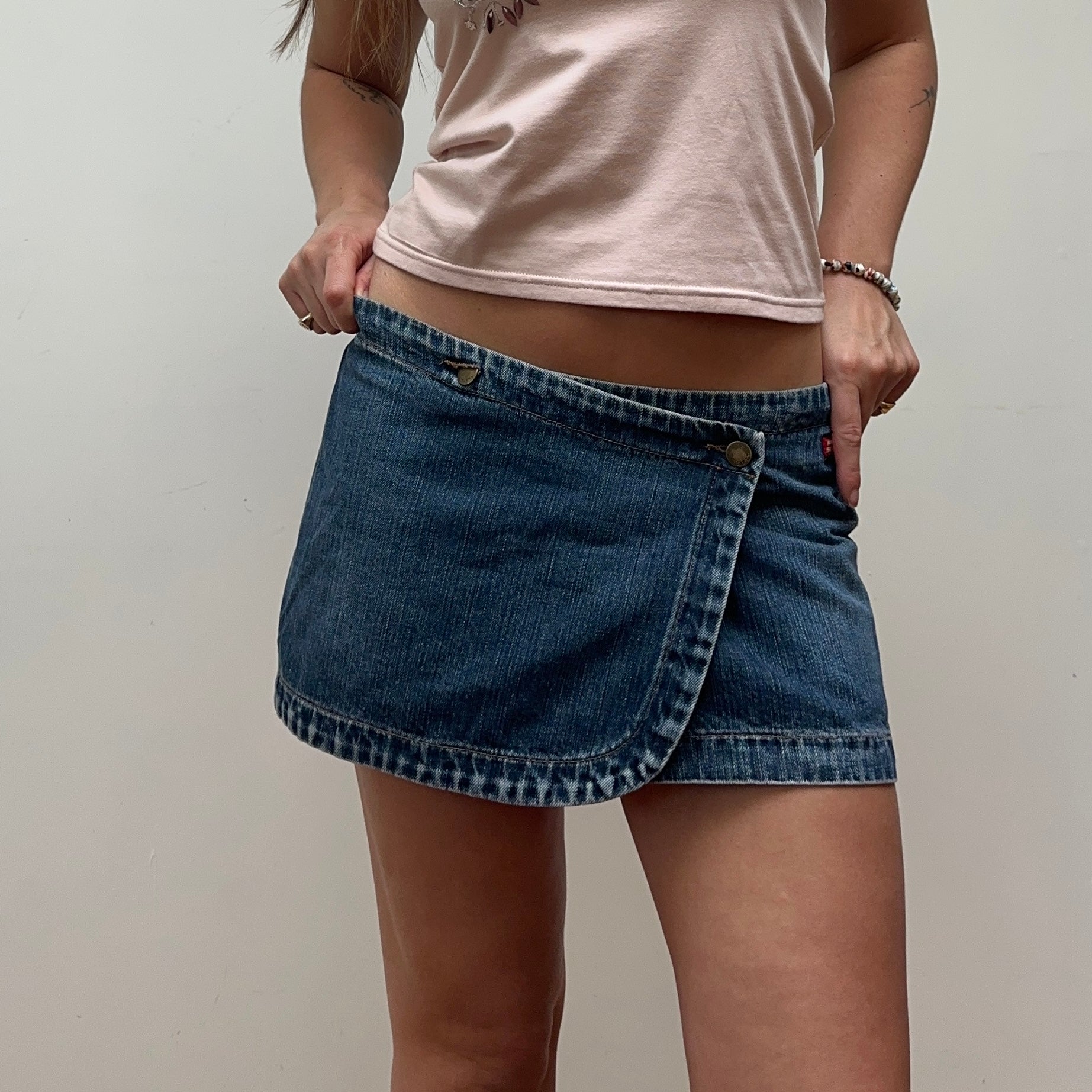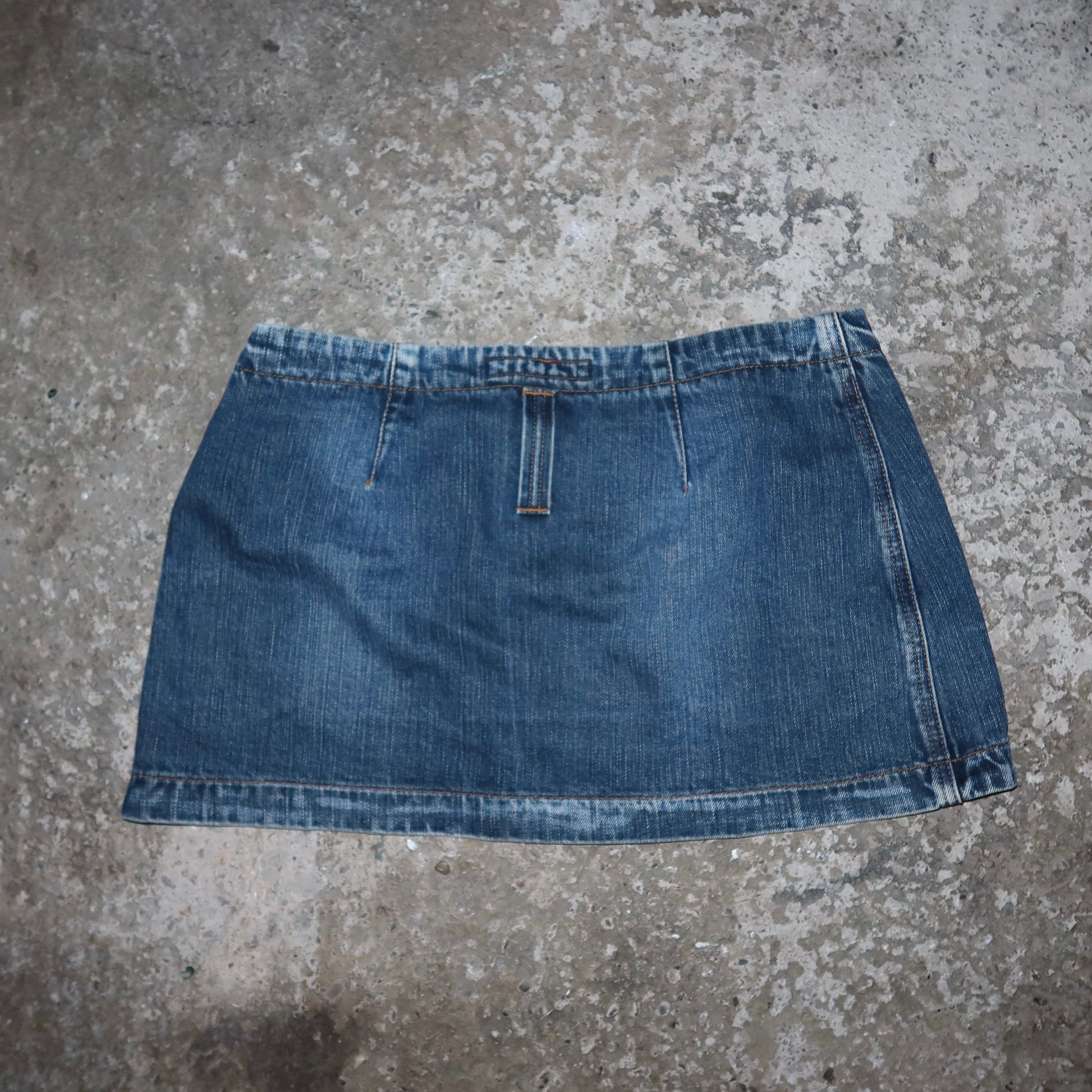 Miss Sixty blue denim mini skirt, the same model famously worn by Bella Hadid.