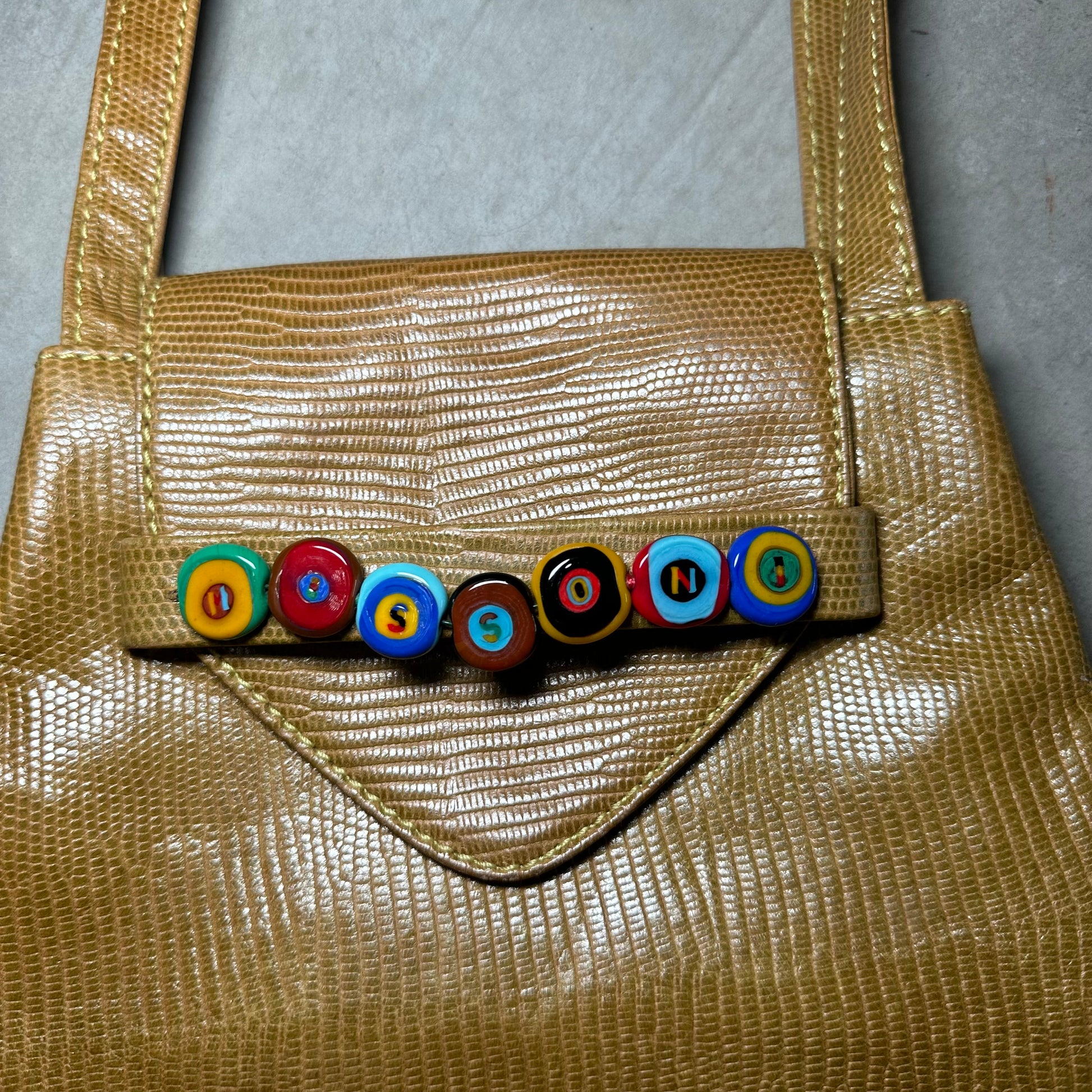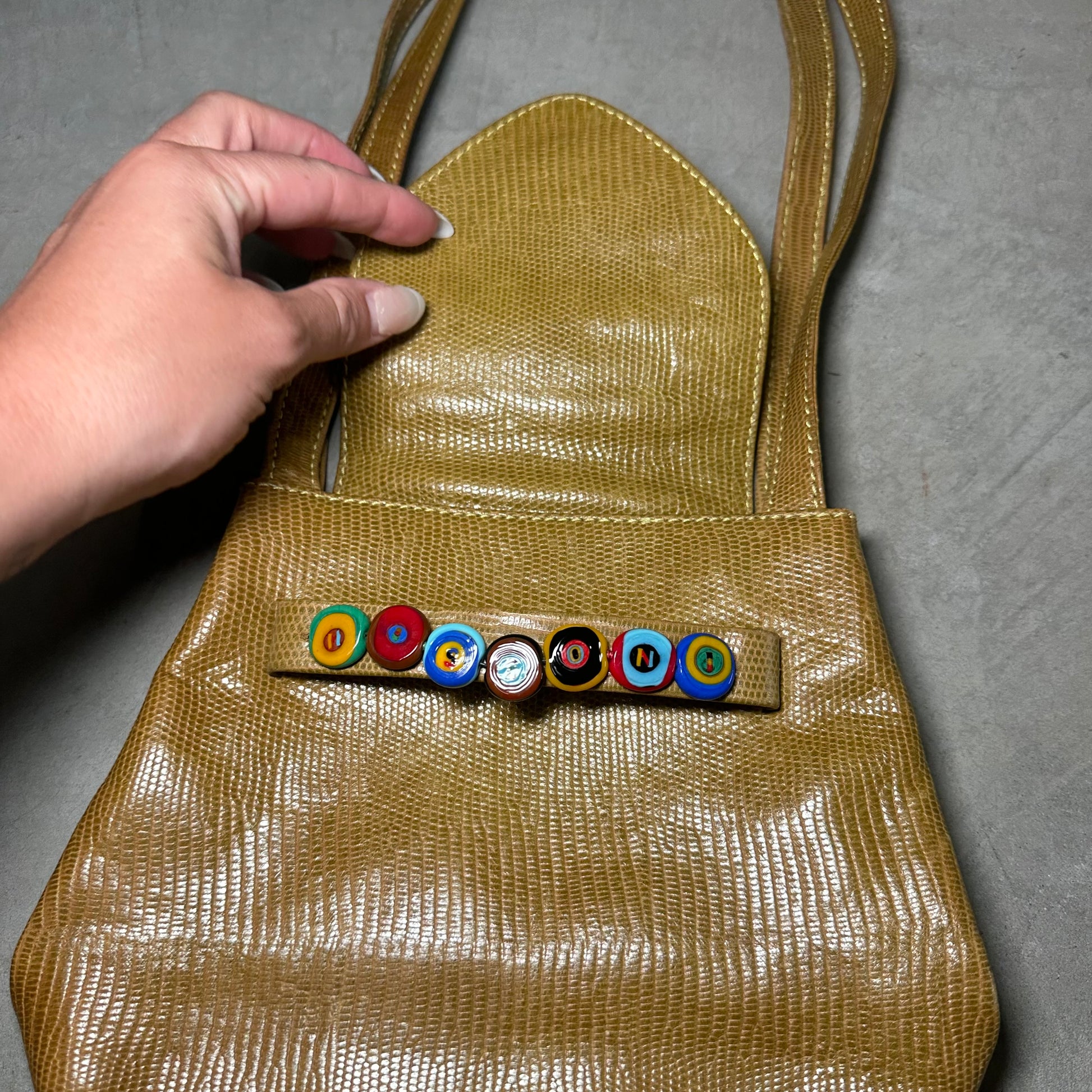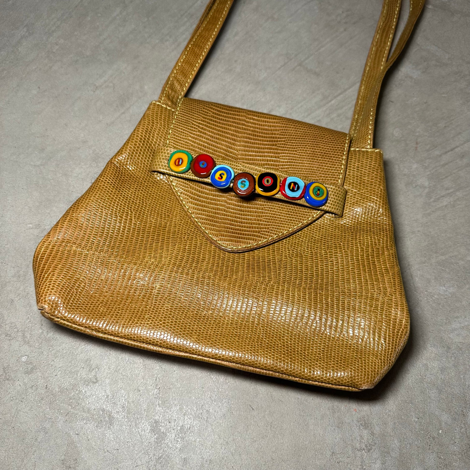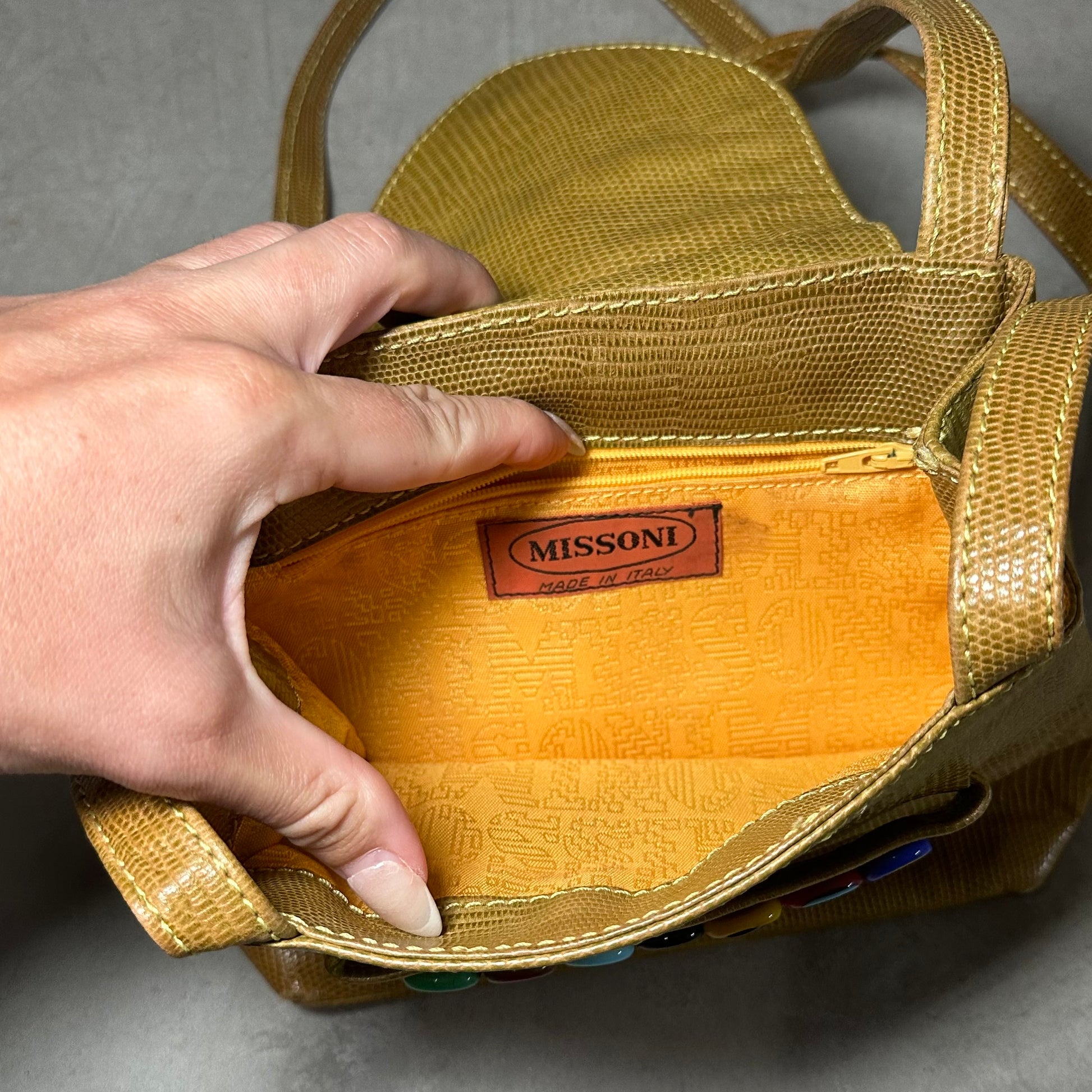 The most gorgeous croc effect leather Missoni bag. Adorable beaded MISSONI spell out logo.