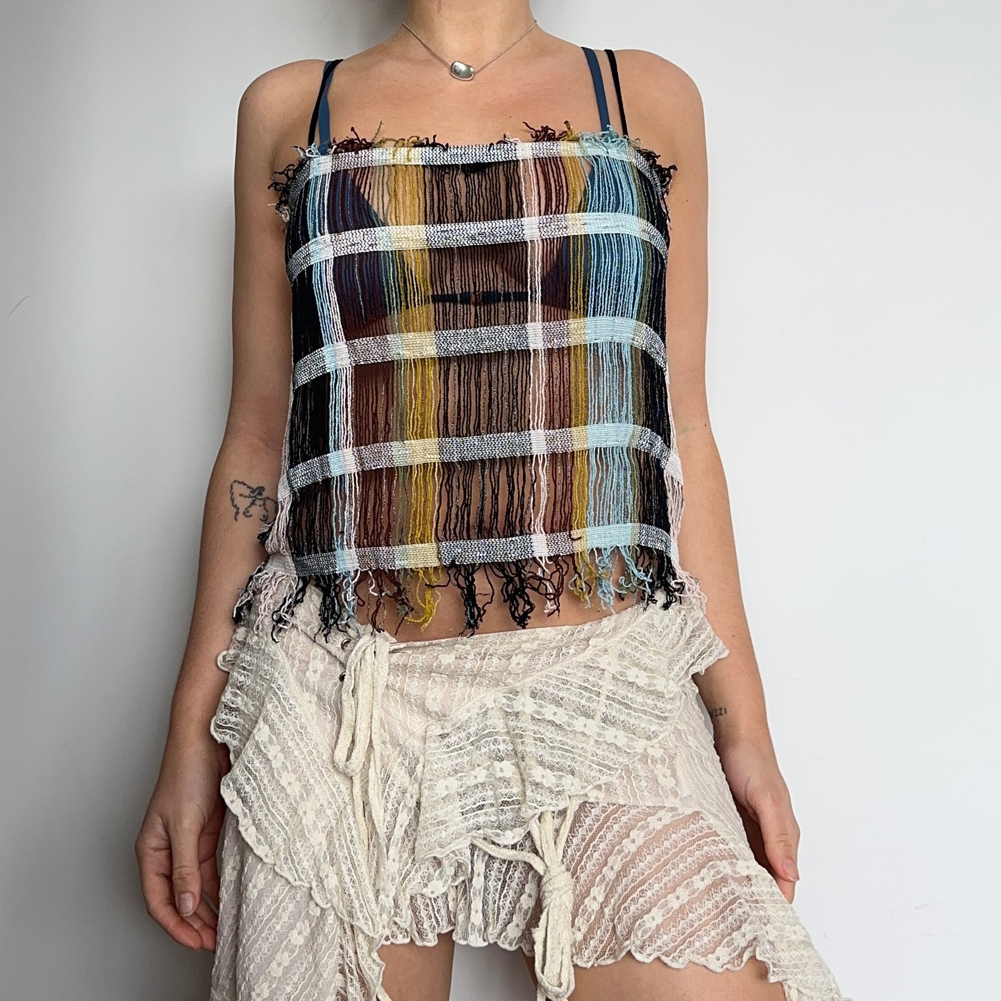 Beautiful string knit top from Missoni's SS2002 collection. The same fabric was seen in multiple different garment types on the runway.