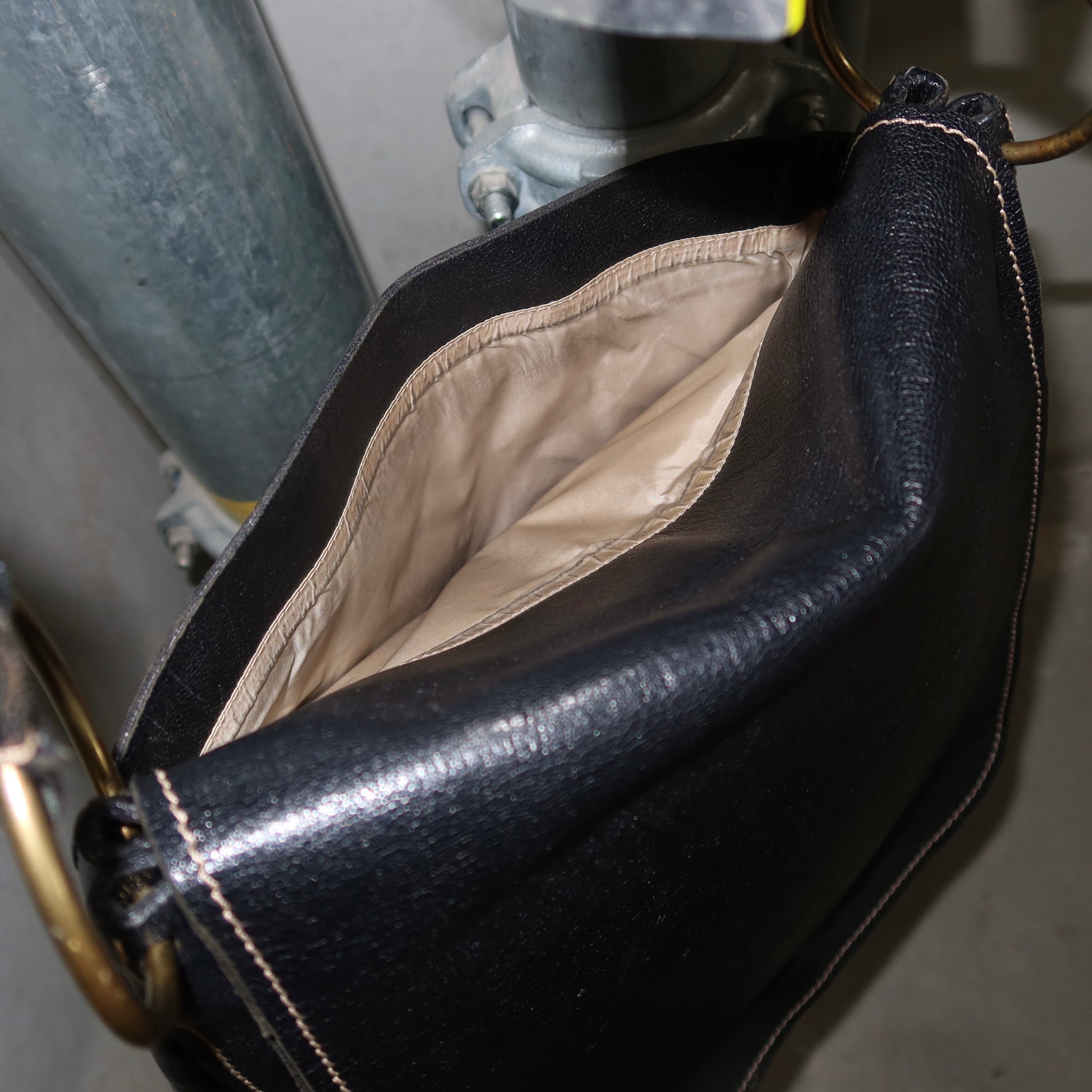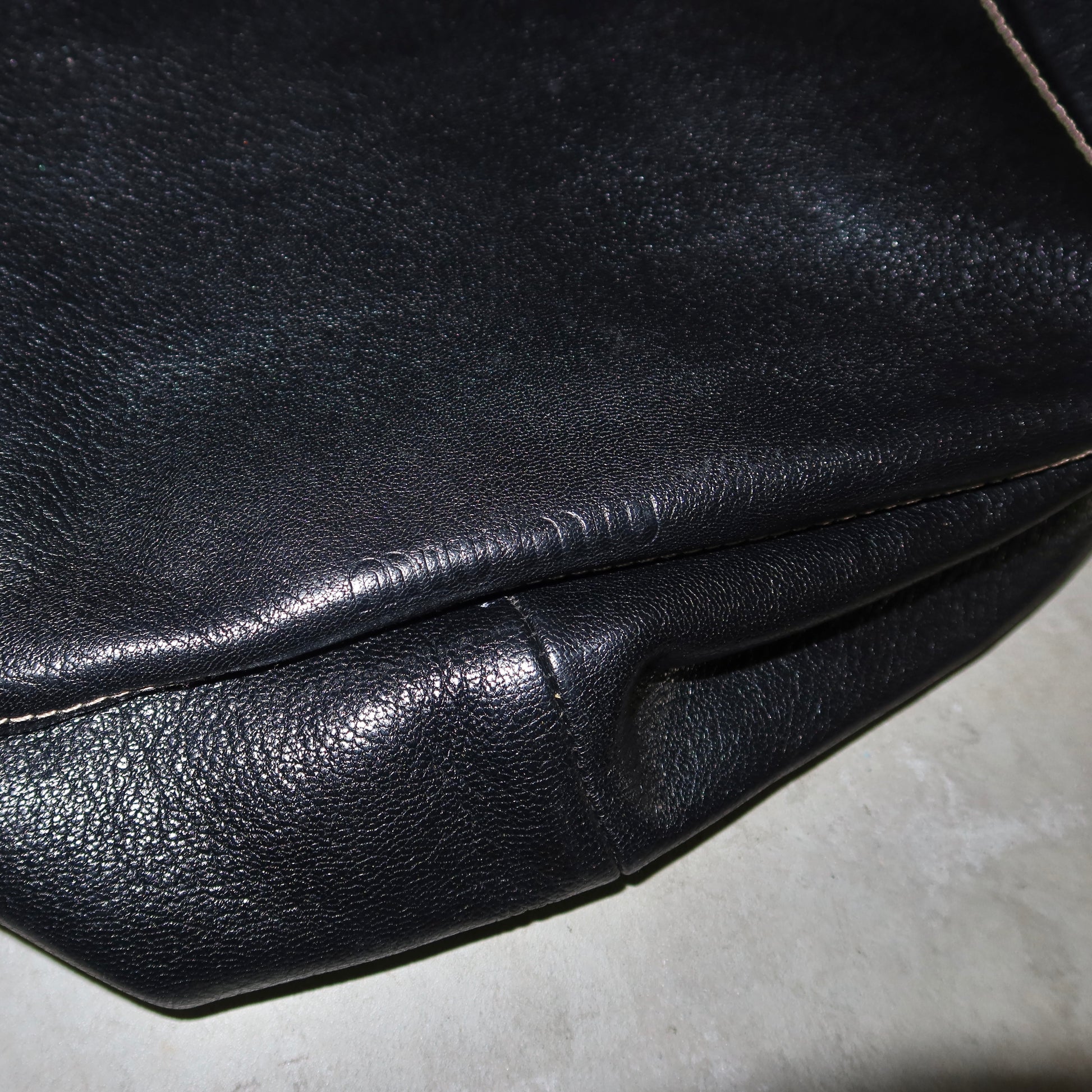 Very good vintage condition. Some light marks to the leather and interior stains, as pictured.