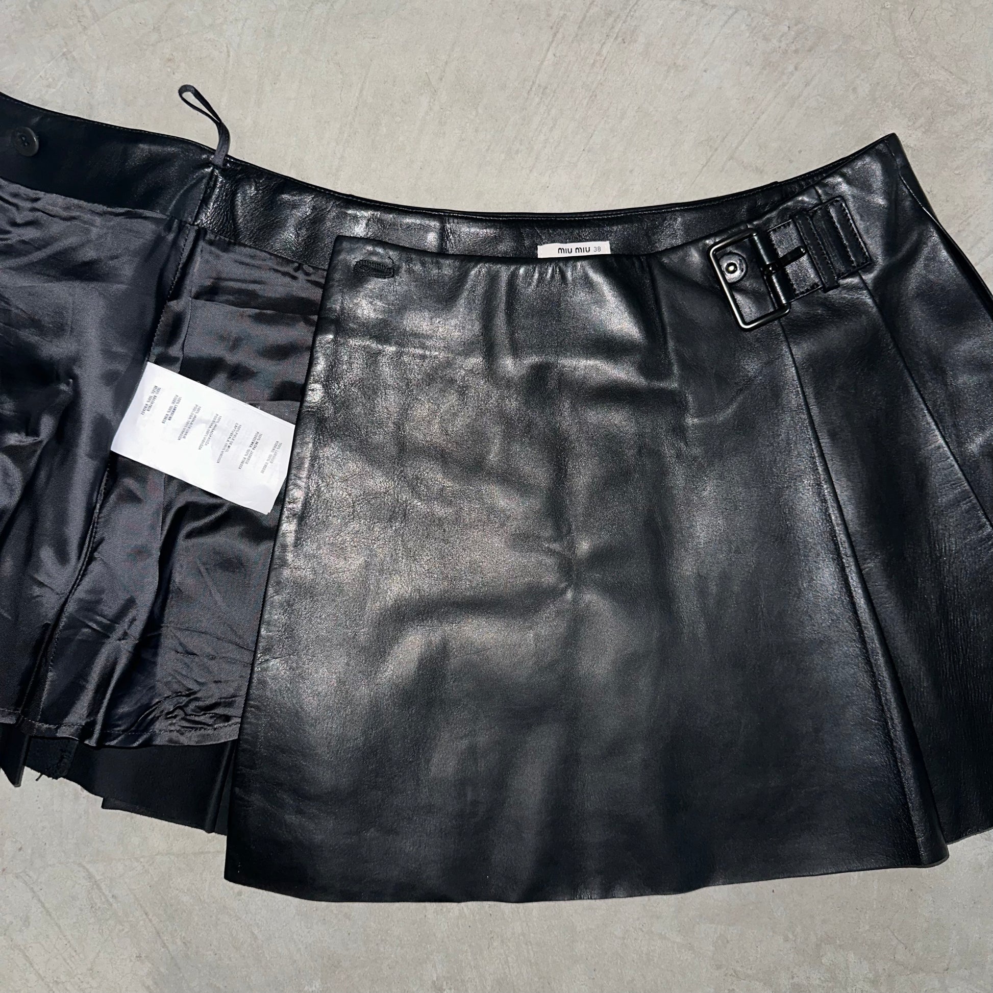 OK. She's a showstopper. Leather. Pleated. Buckle. MIU MIU. Deceased.
