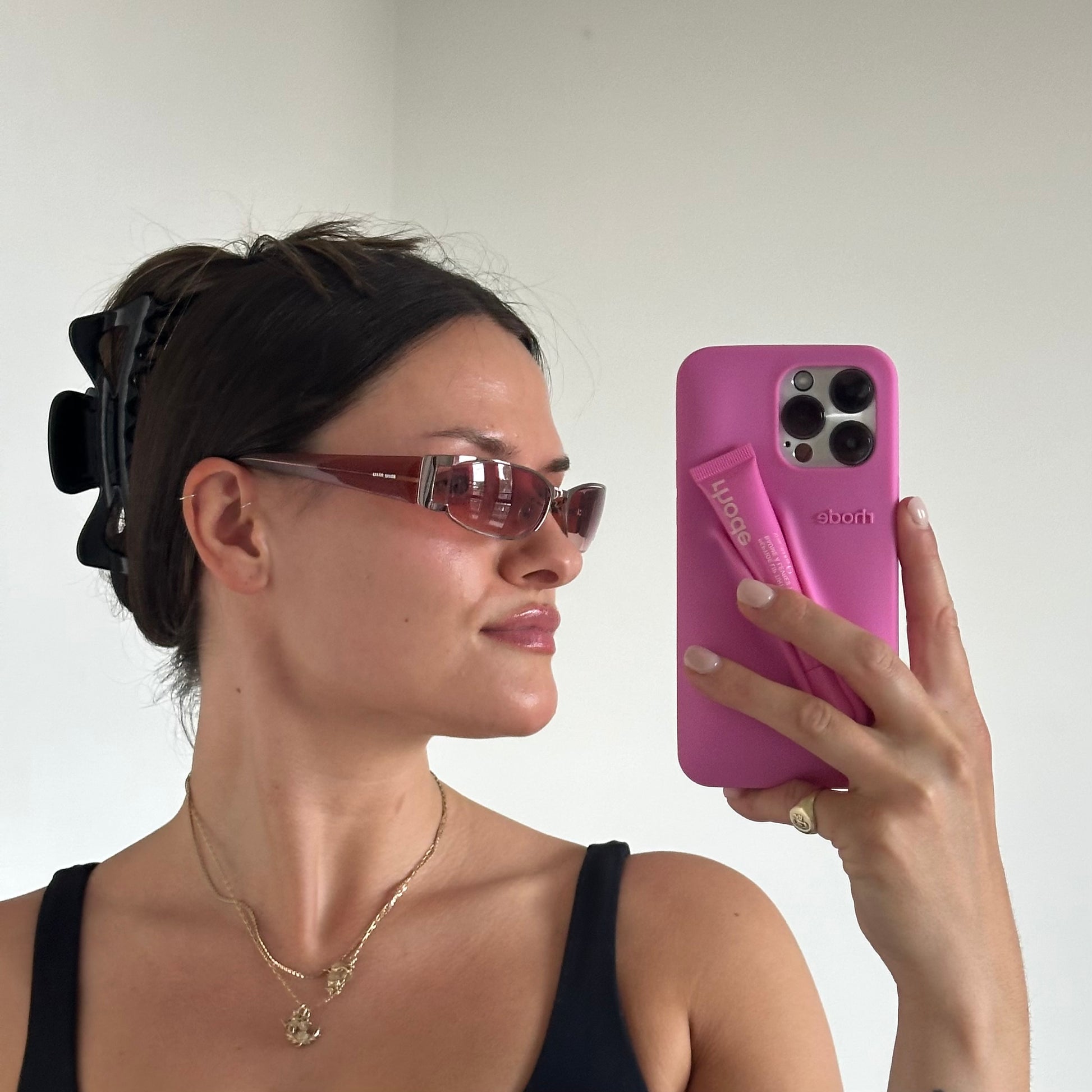 Gorgeous pink tinted Miu Miu sunglasses with silver rim.