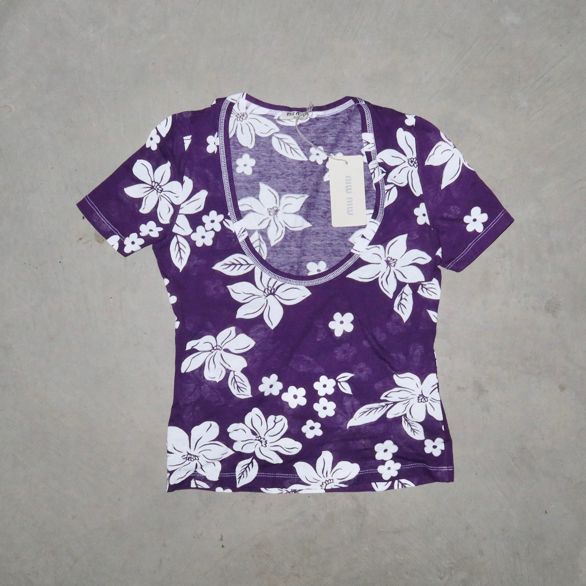 Incredible floral Hawai'in inspired tee by Miu Miu, from their SS2003 collection. Still with it's tags attached!