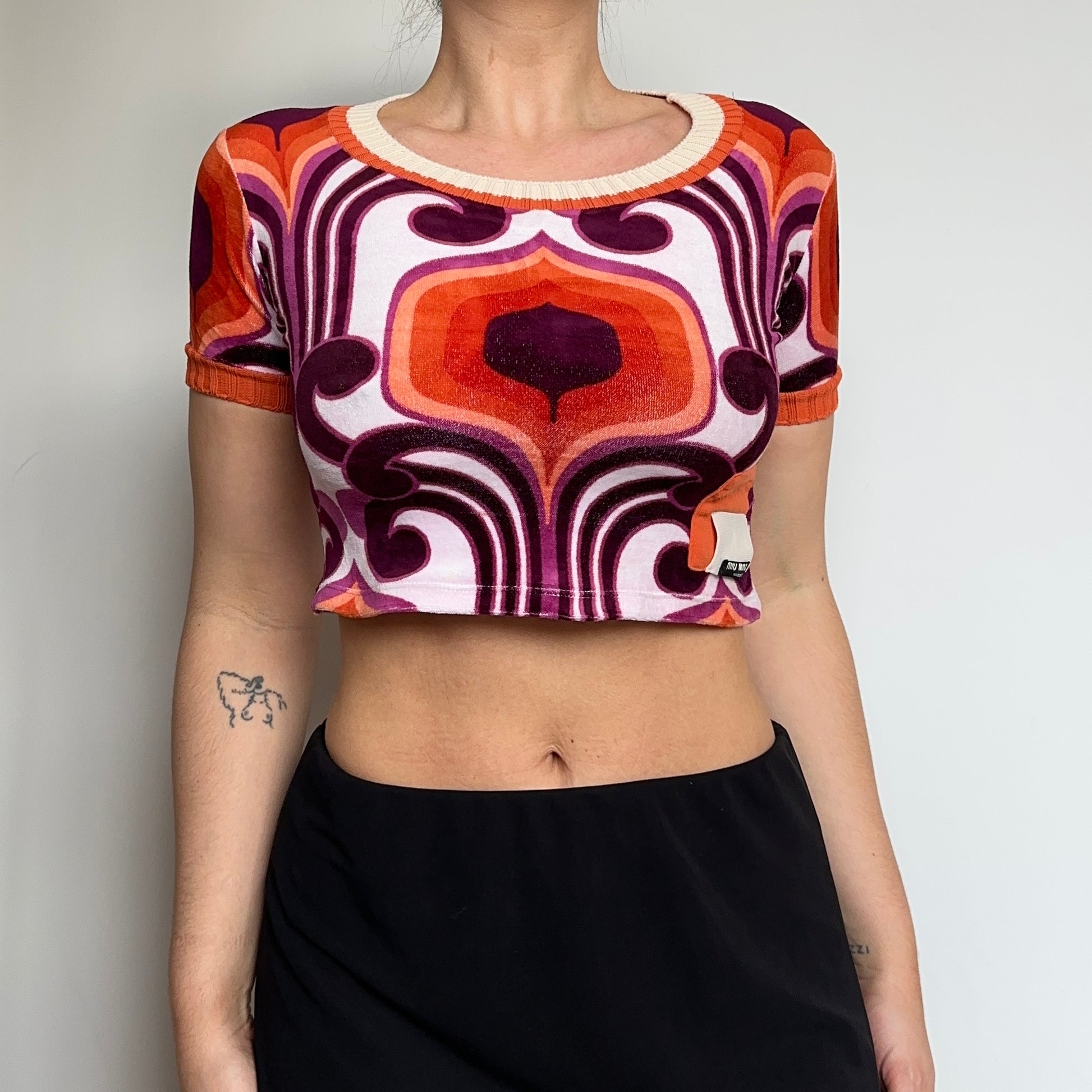 Cutest velour (velvety) cropped top by Miu Miu from SS2005 in an iconic print.