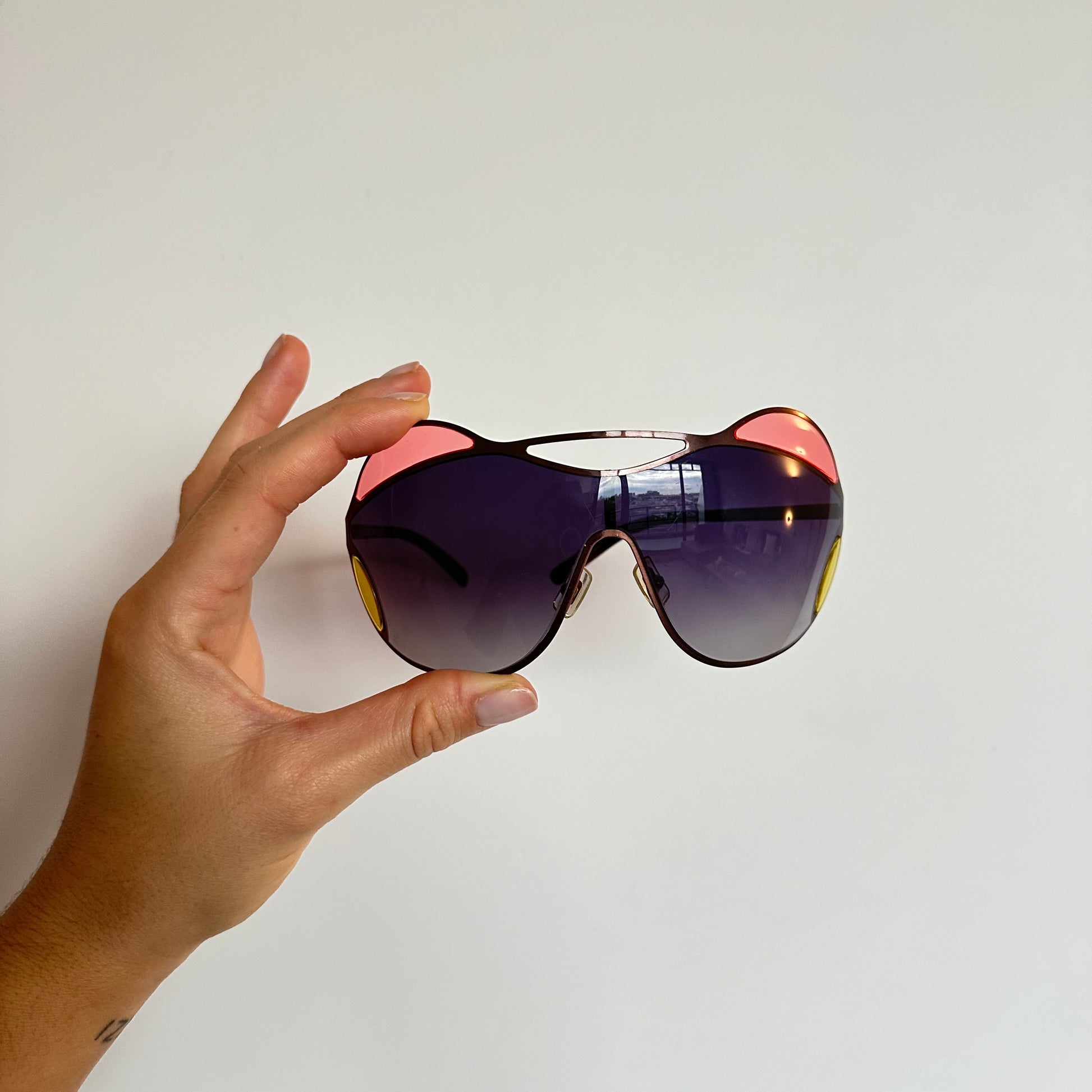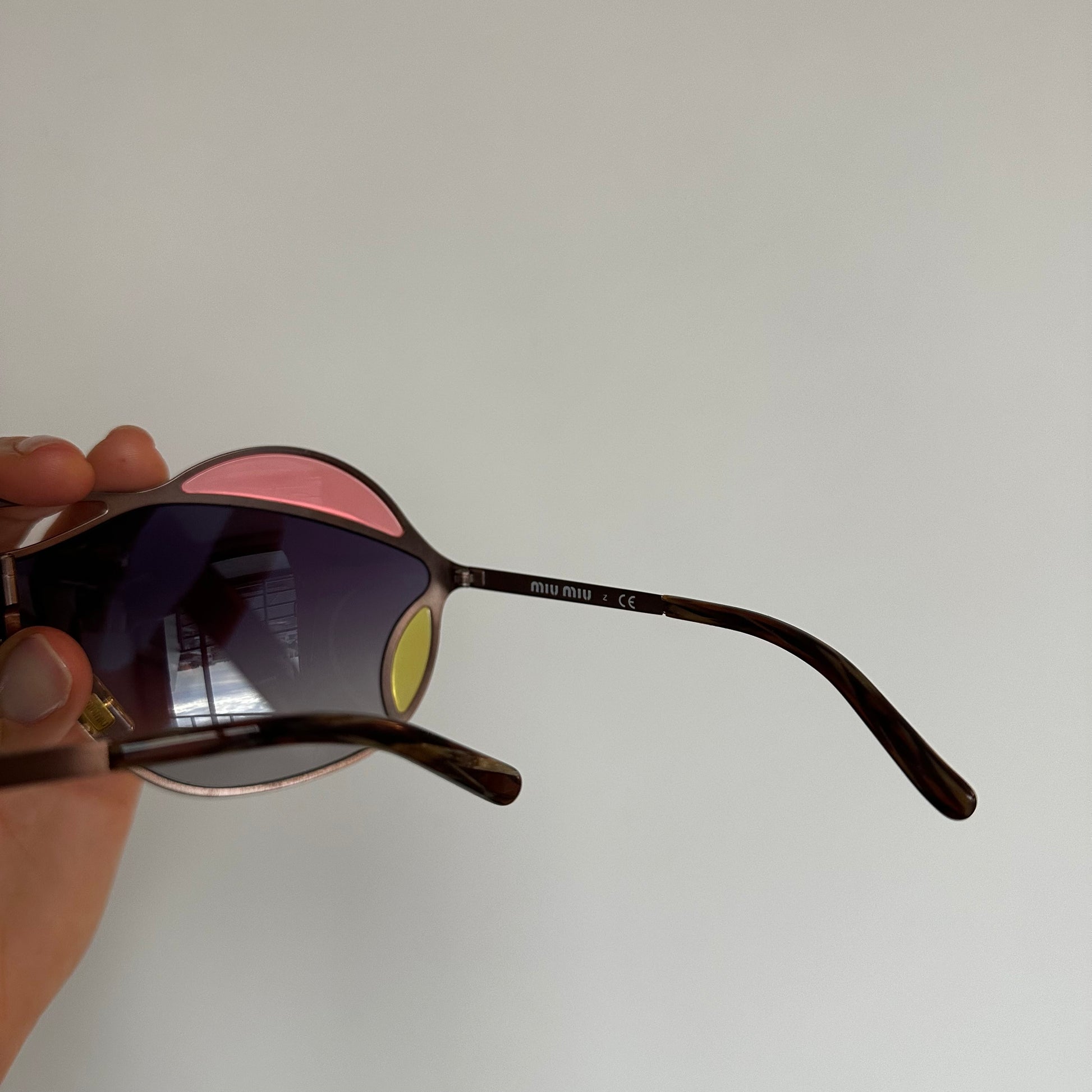 Gorgeous oversized Miu Miu stain-glass effect bug eye sunglasses. Similar pair seen in the SS2008 campaign with Kirsten Dunst.