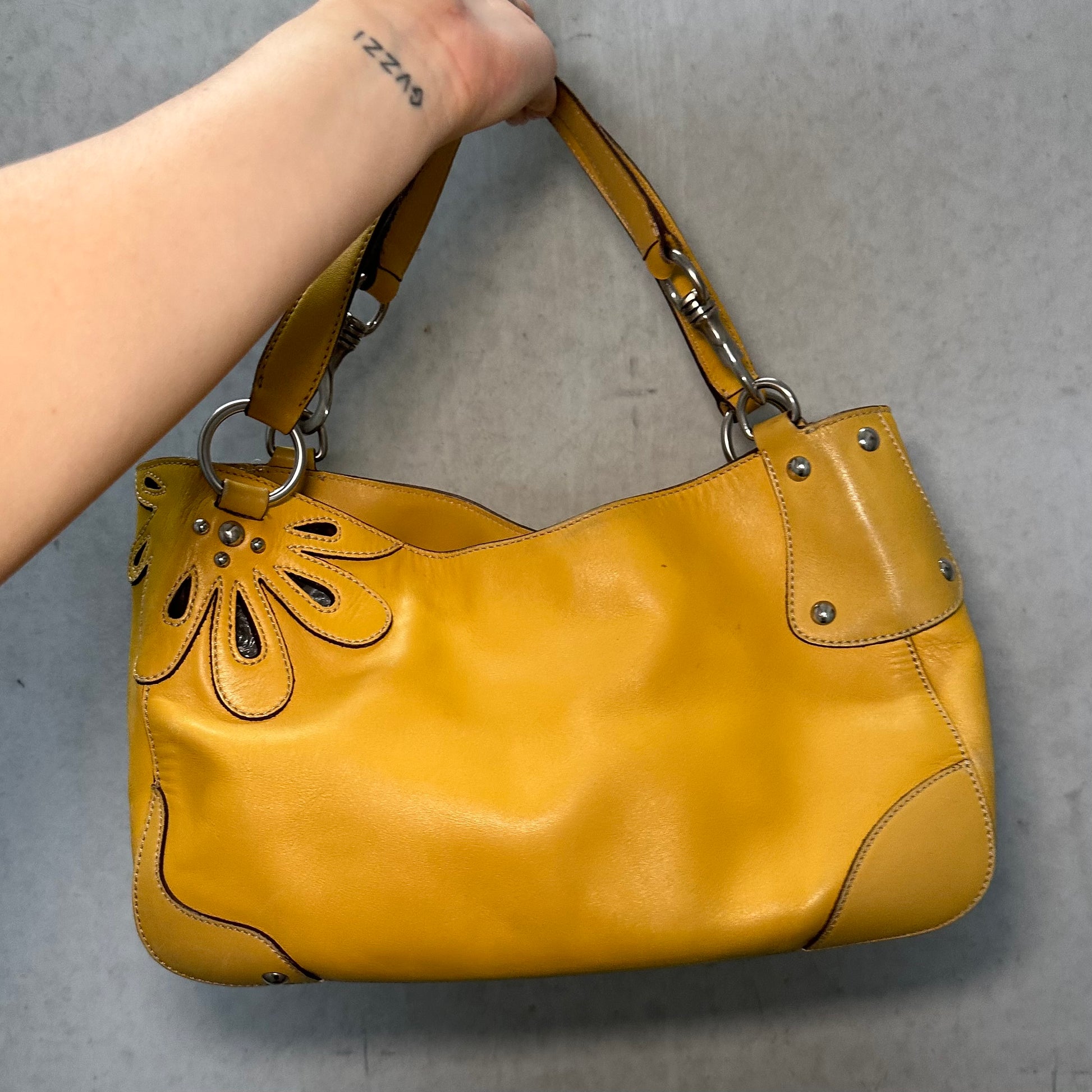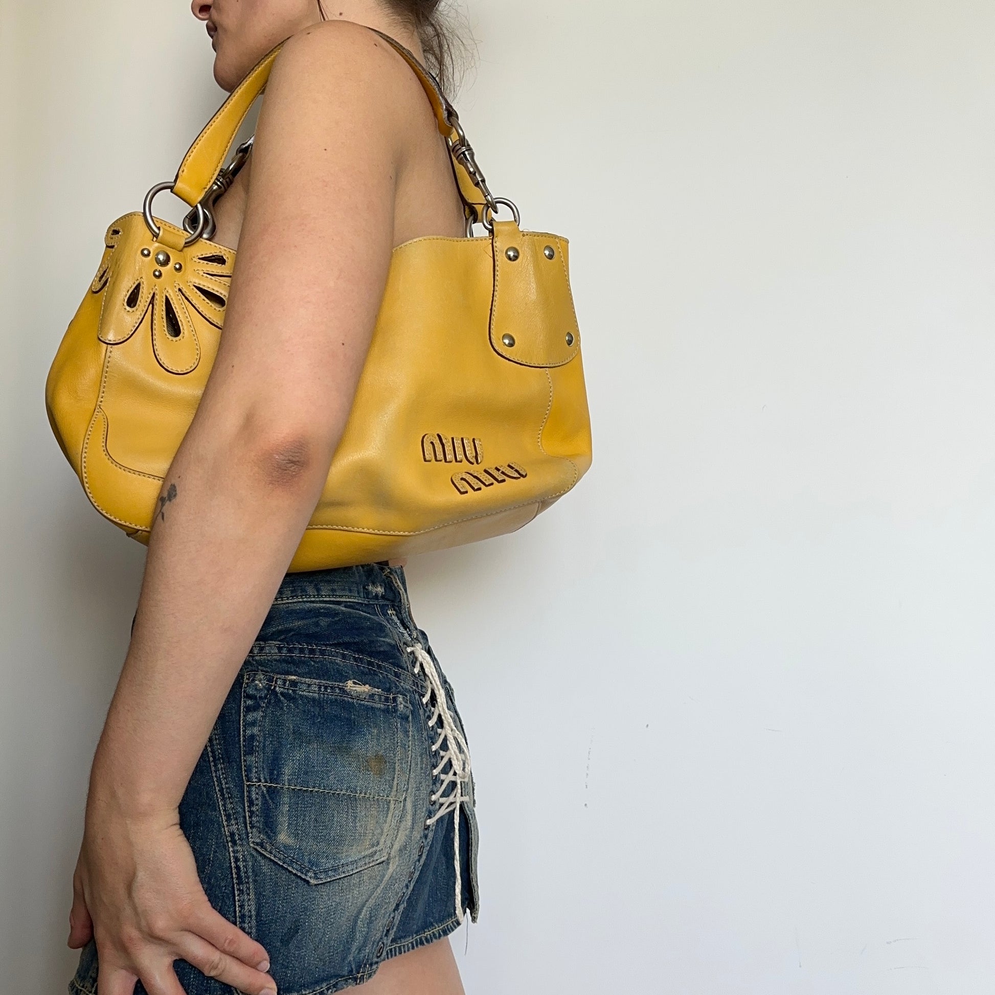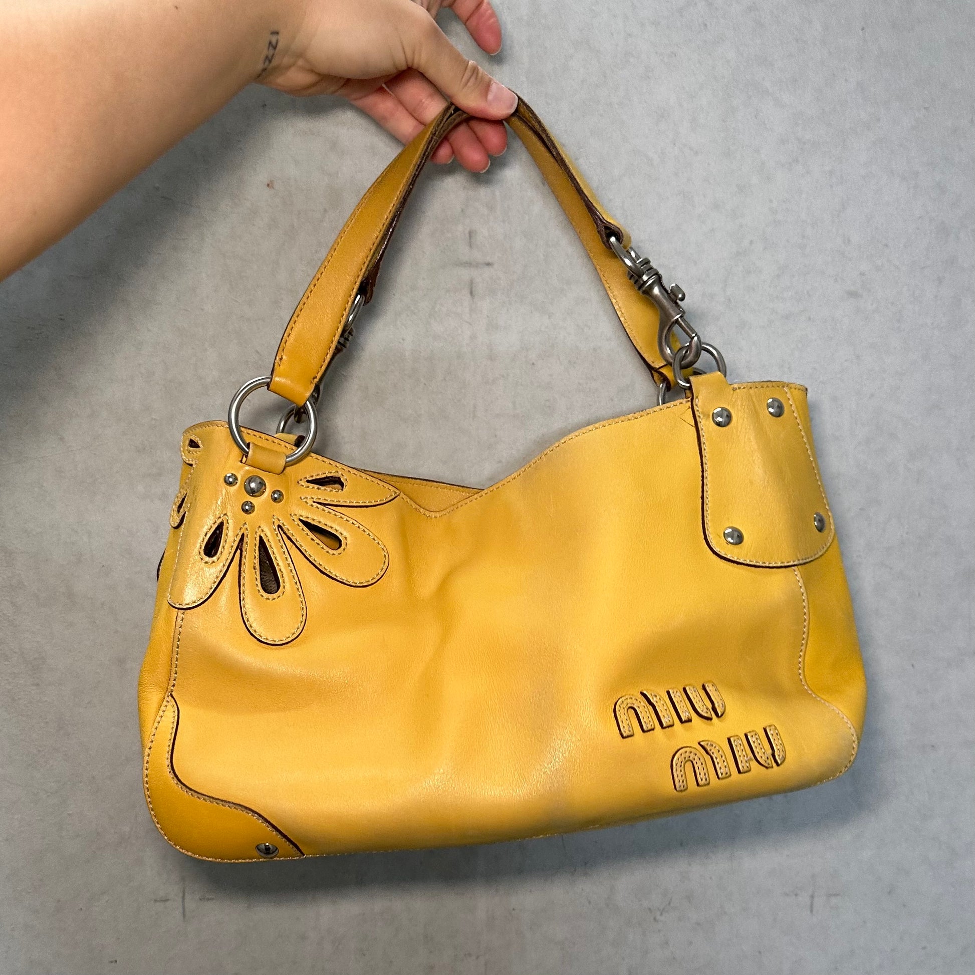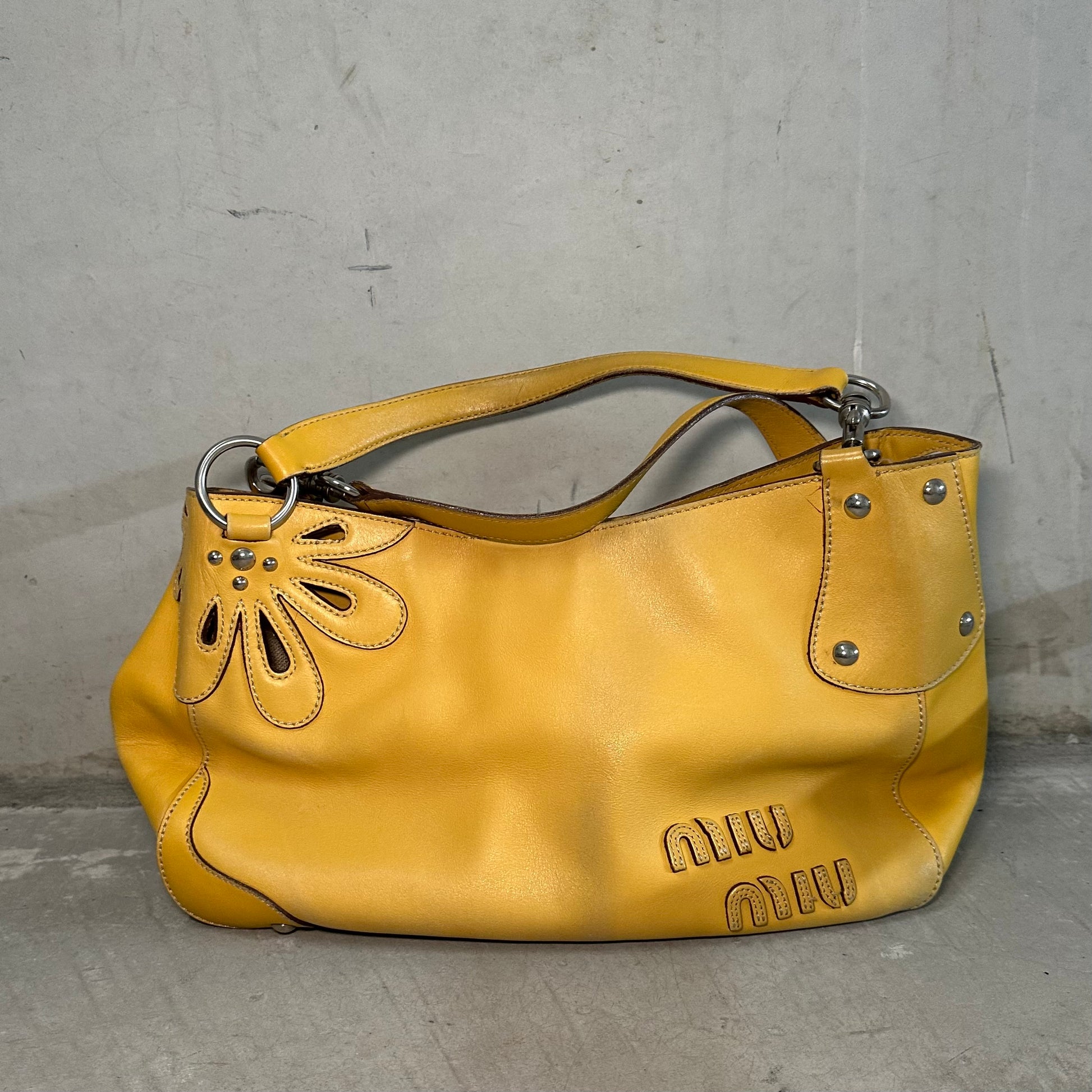 Stunning yellow Miu Miu bag with 3-D logo. I'm obsessed with this guy!