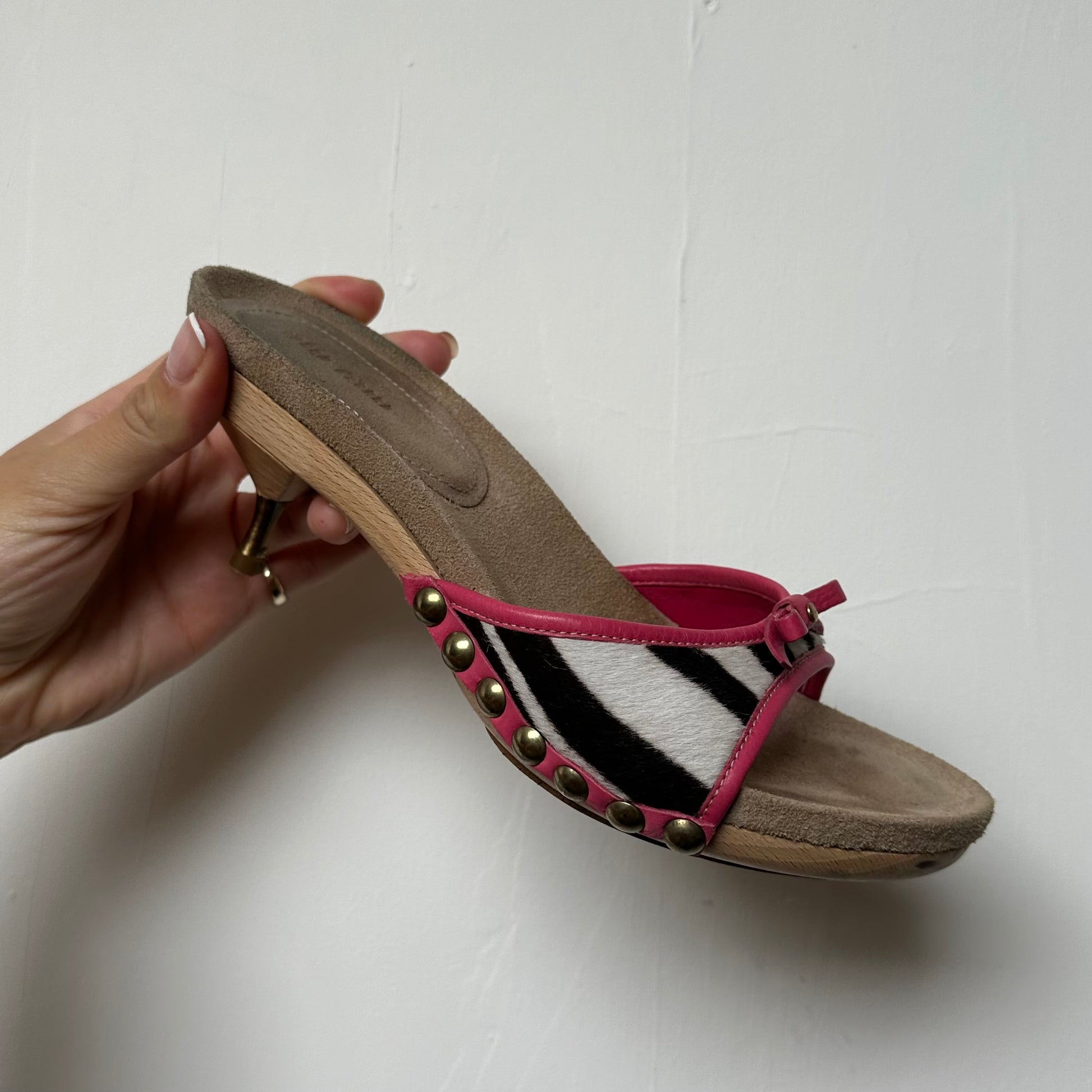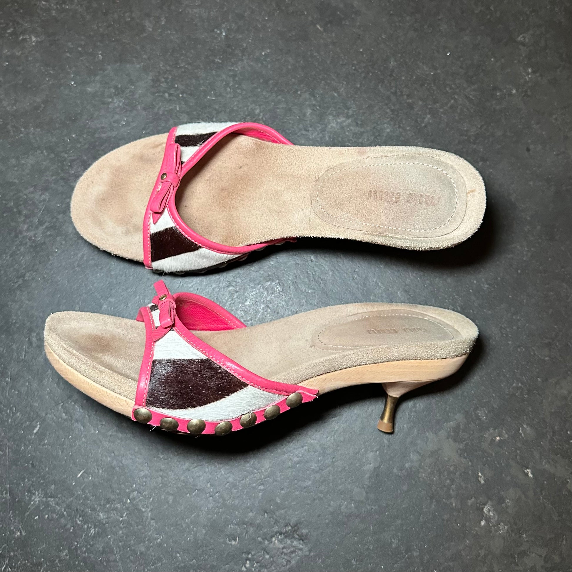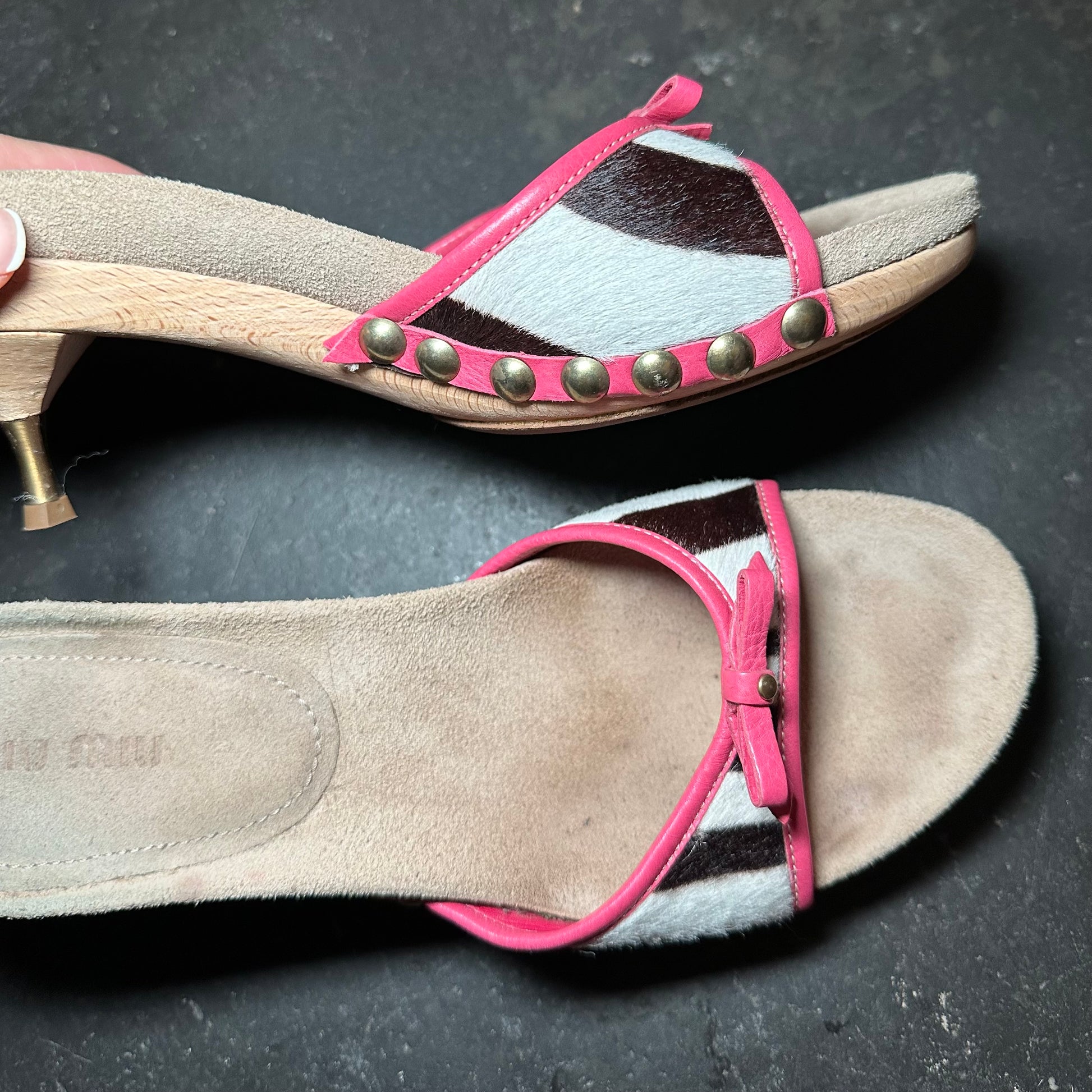 Miu Miu Zebra Cowhide Peep Toe Kitten Heels (37)