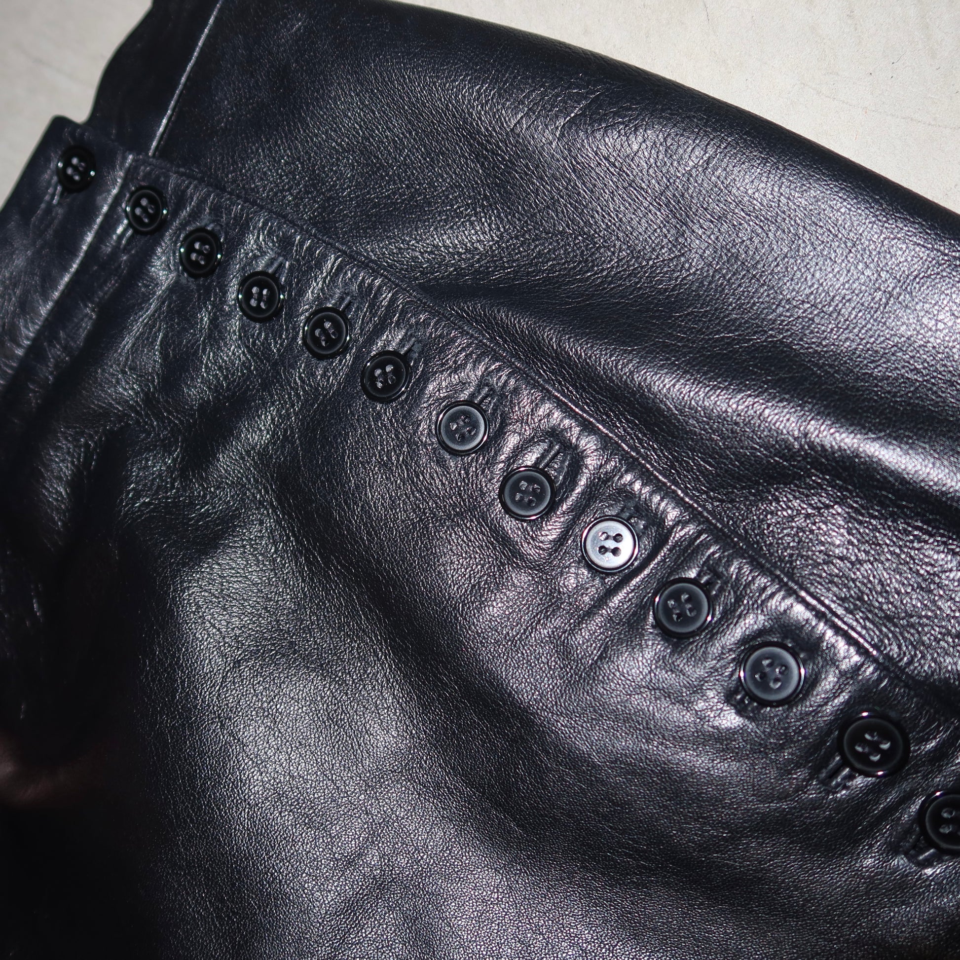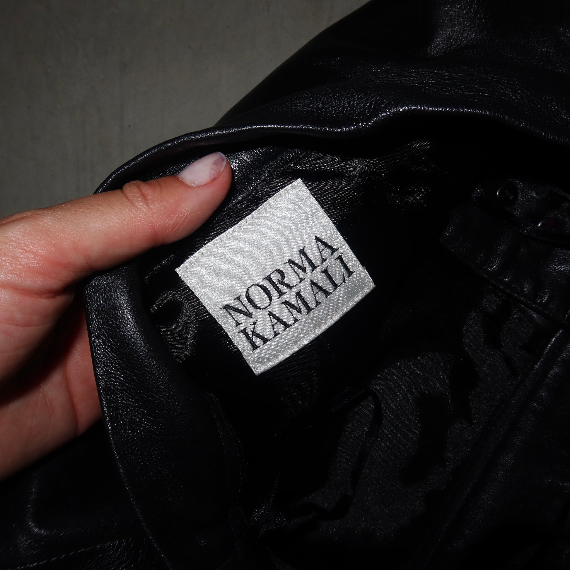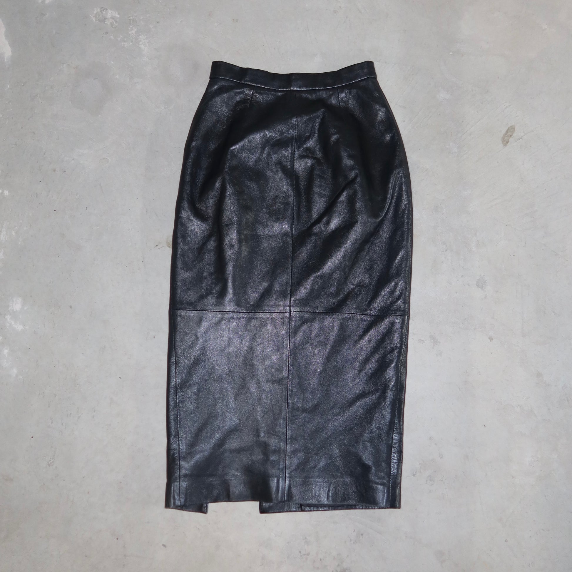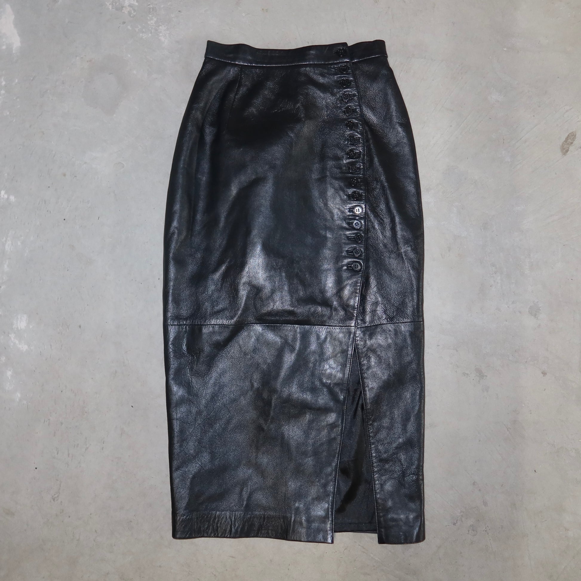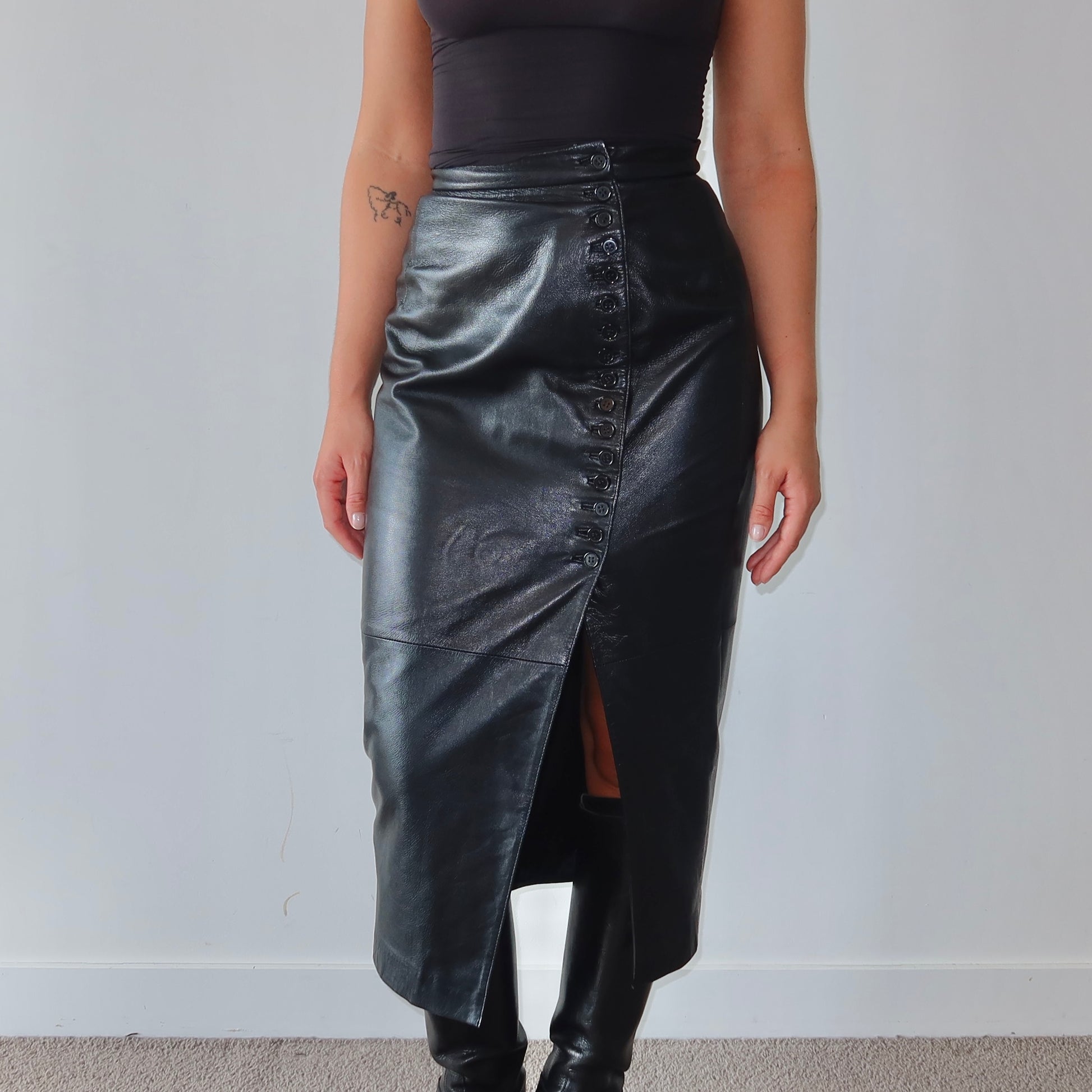Beautiful leather Norma Kamali pencil skirt with functioning button details.
