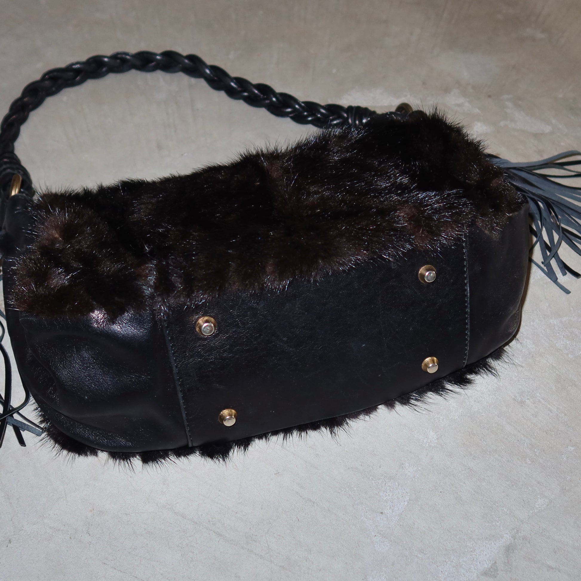 Stunning black/brown mink fur bag by Paolo Masi with black leather accents and gold hardware. Made in Italy.