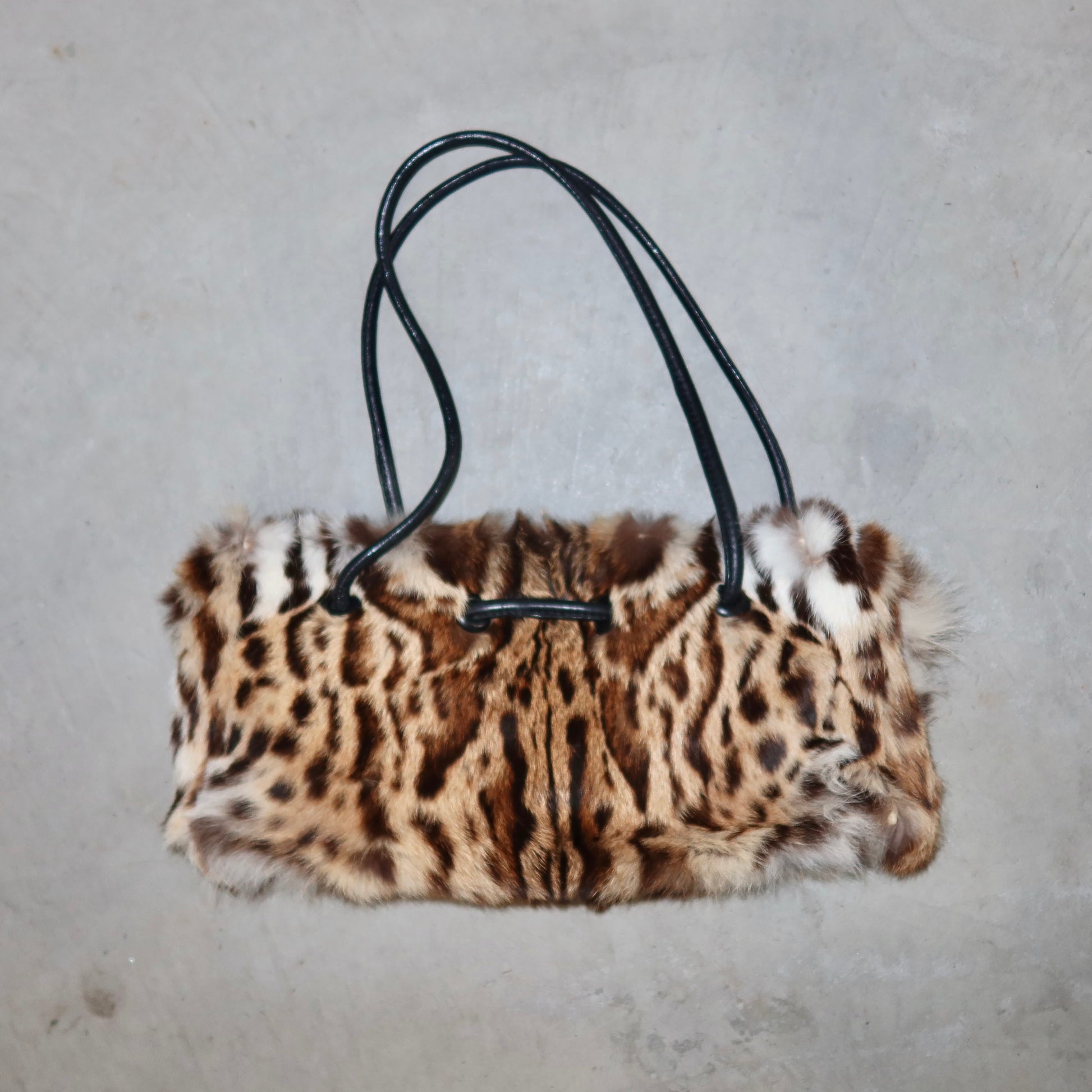 Breathtaking real fur bag by Paolo Masi in a beautiful leopard print. These could be genuine fur markings from an animal like an ocelot or they could be printed on, I really can’t be sure! The fur is real however. Made in Italy.
