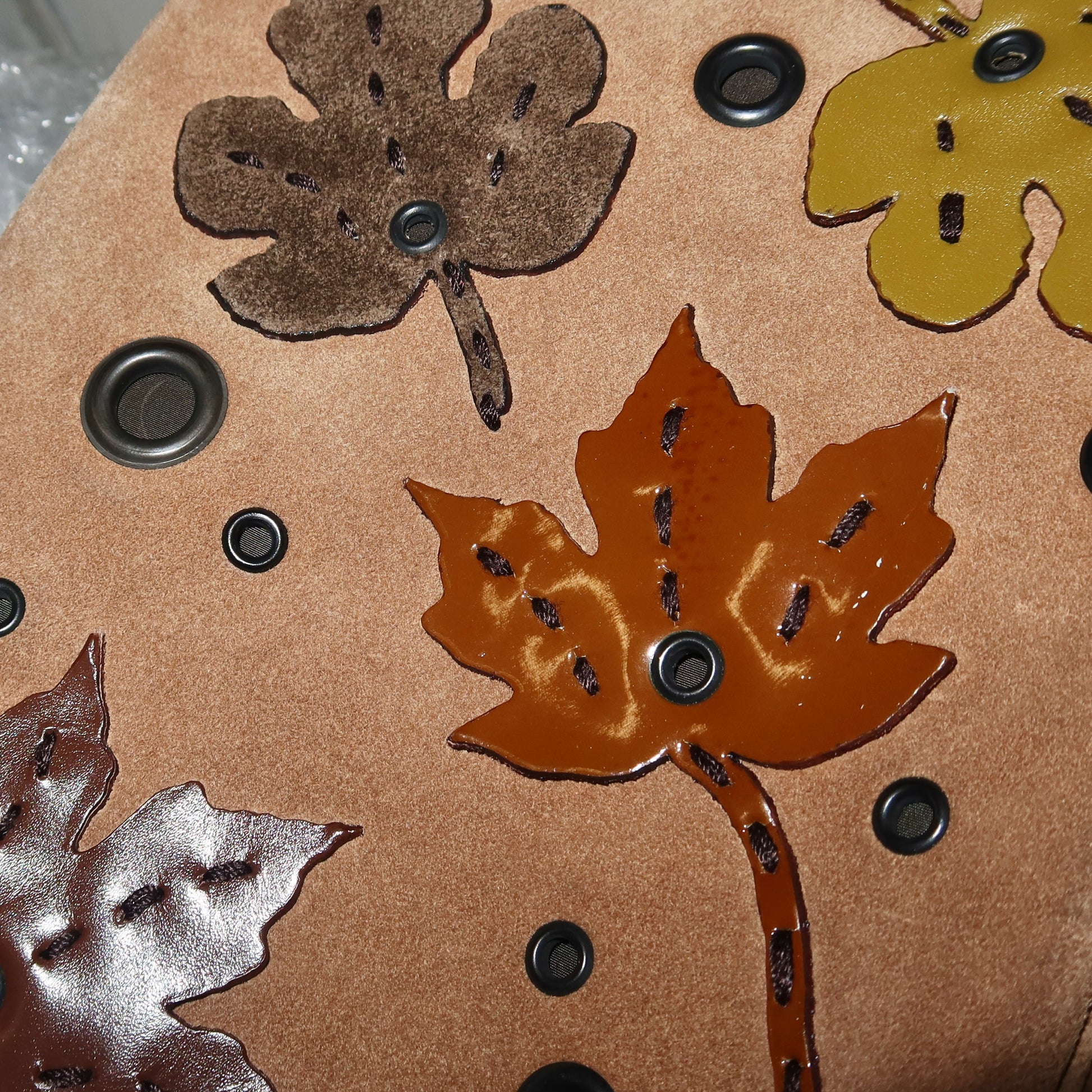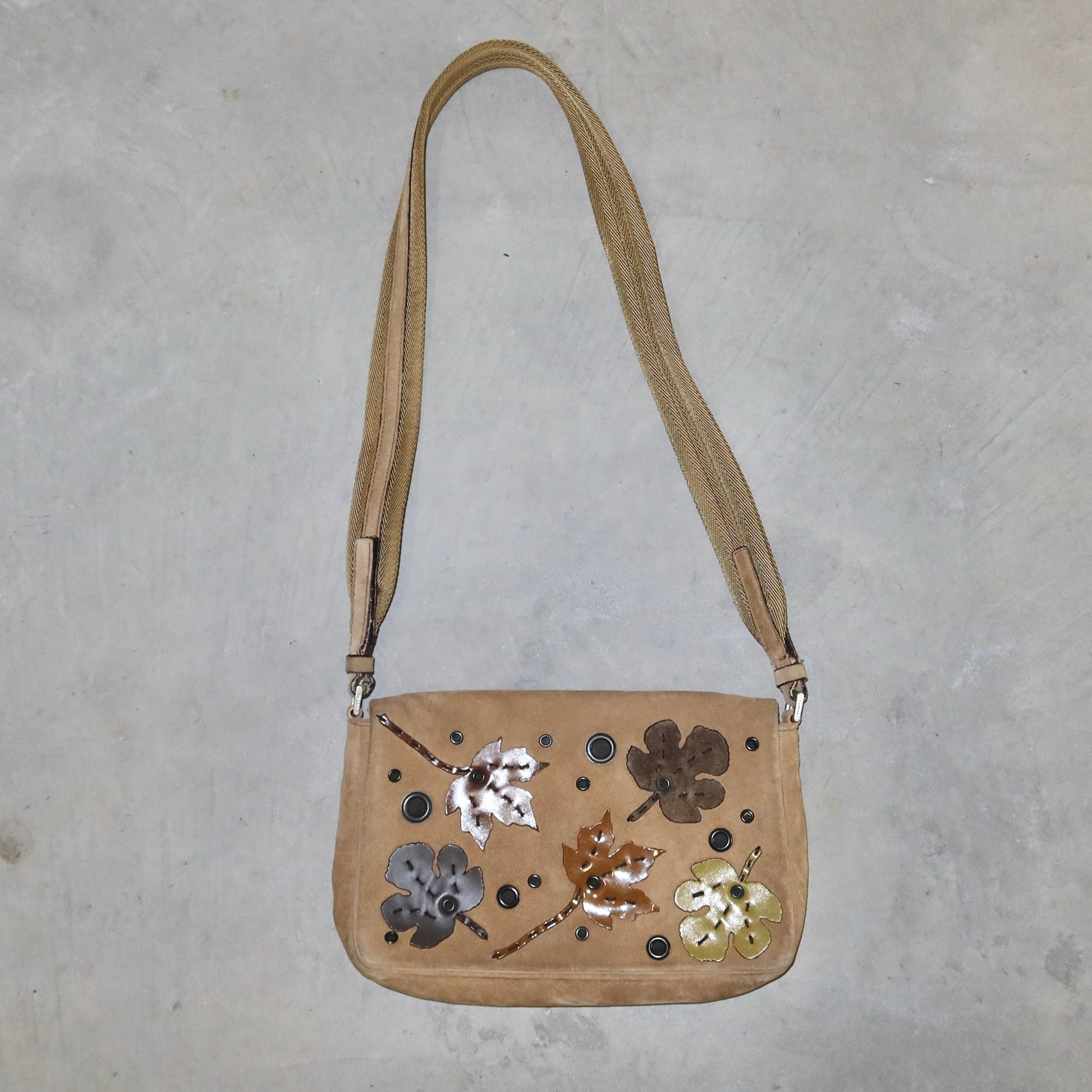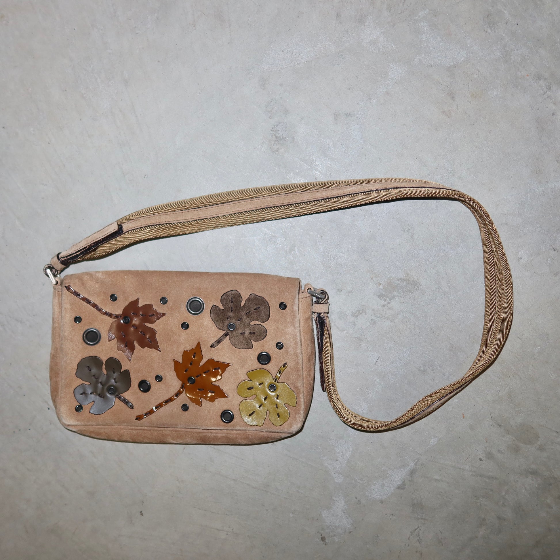 Insanely gorgeous Prada AW1999 suede bag with iconic 3D leaves design. Can be worn as a shoulder bag or high up crossbody.