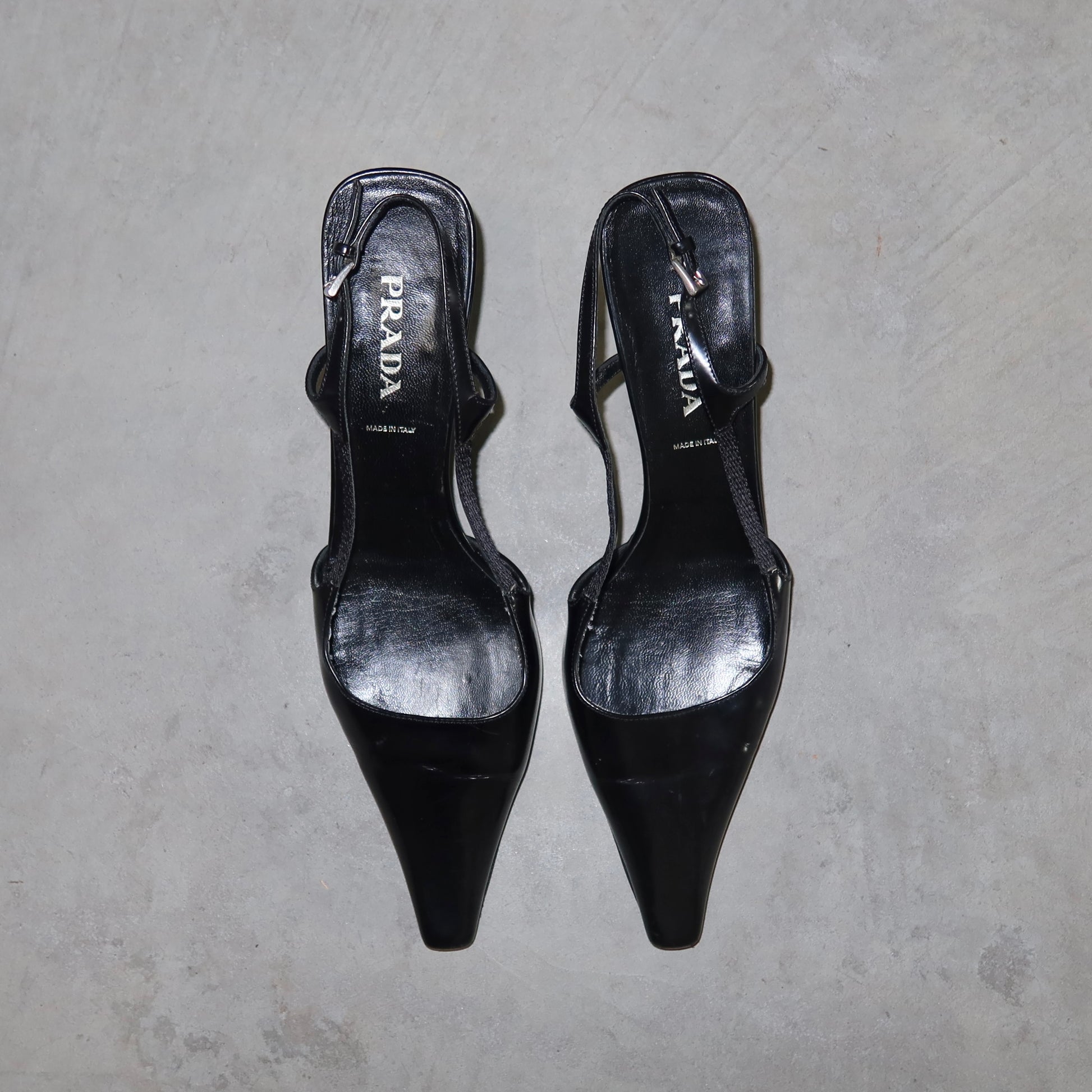 Prada Black Leather Sling-Backs with Plaque Detail (39.5)