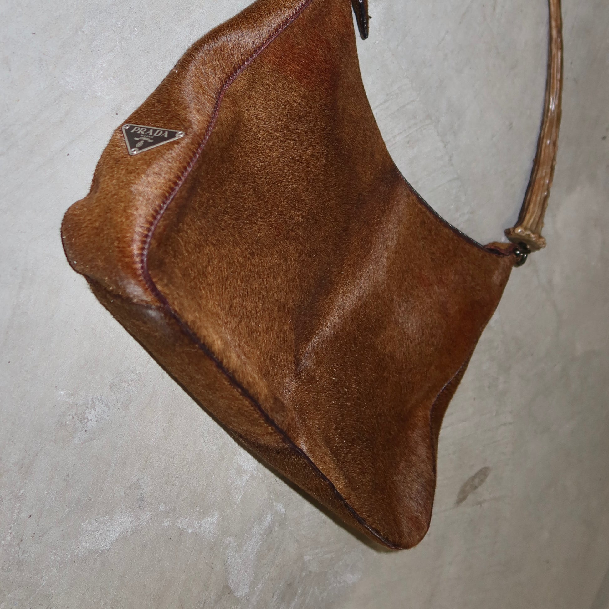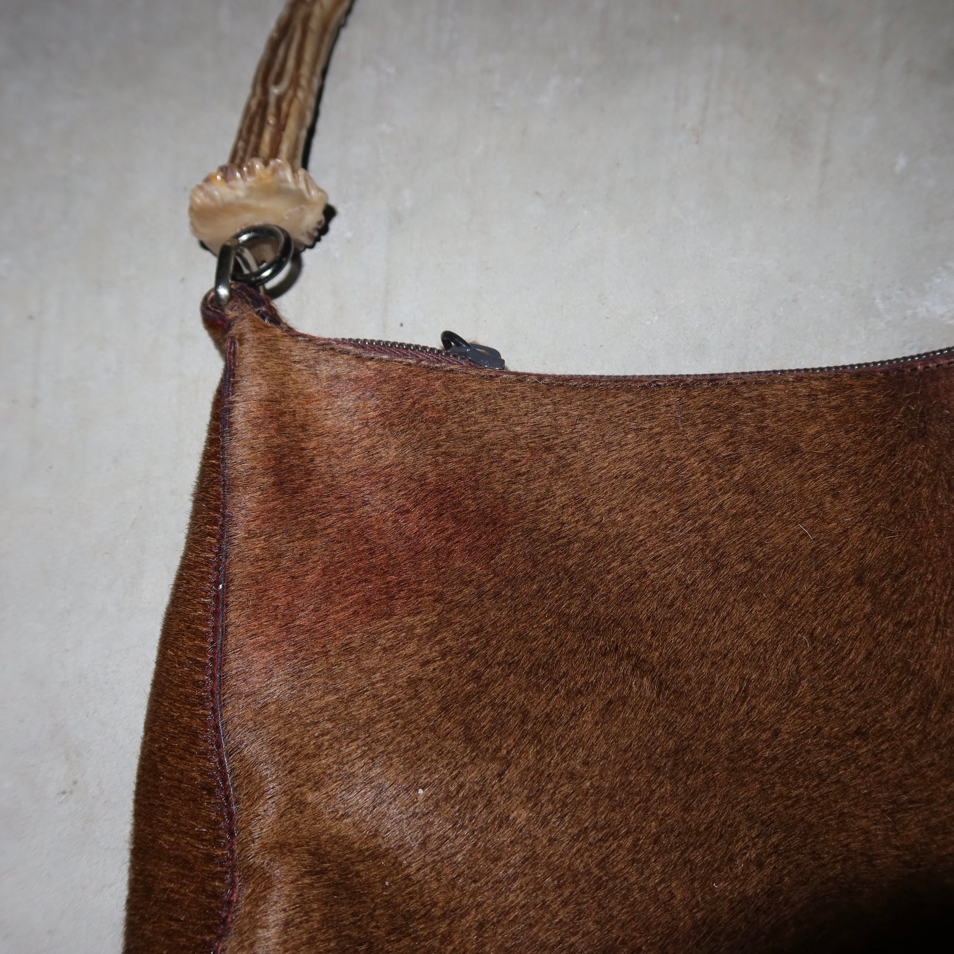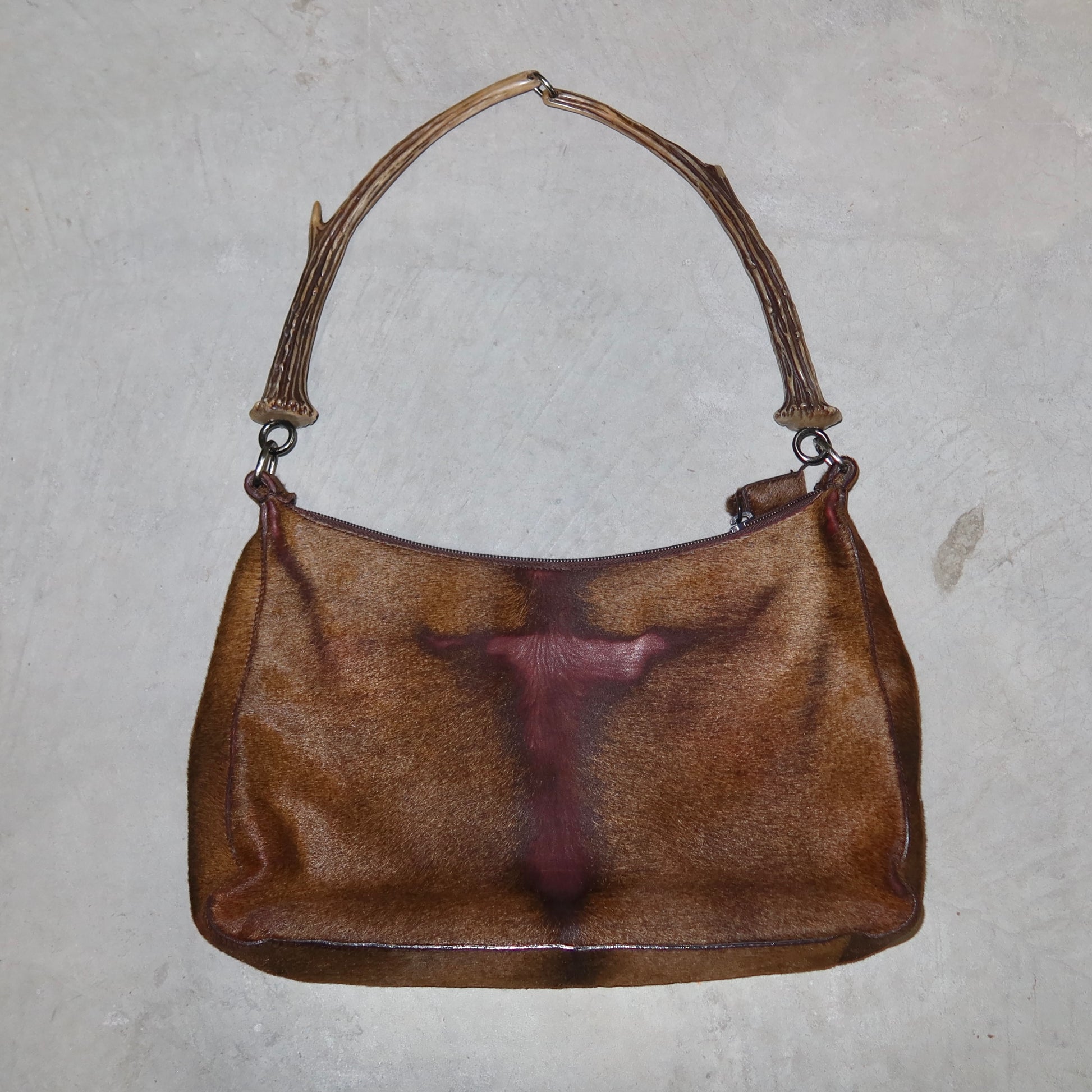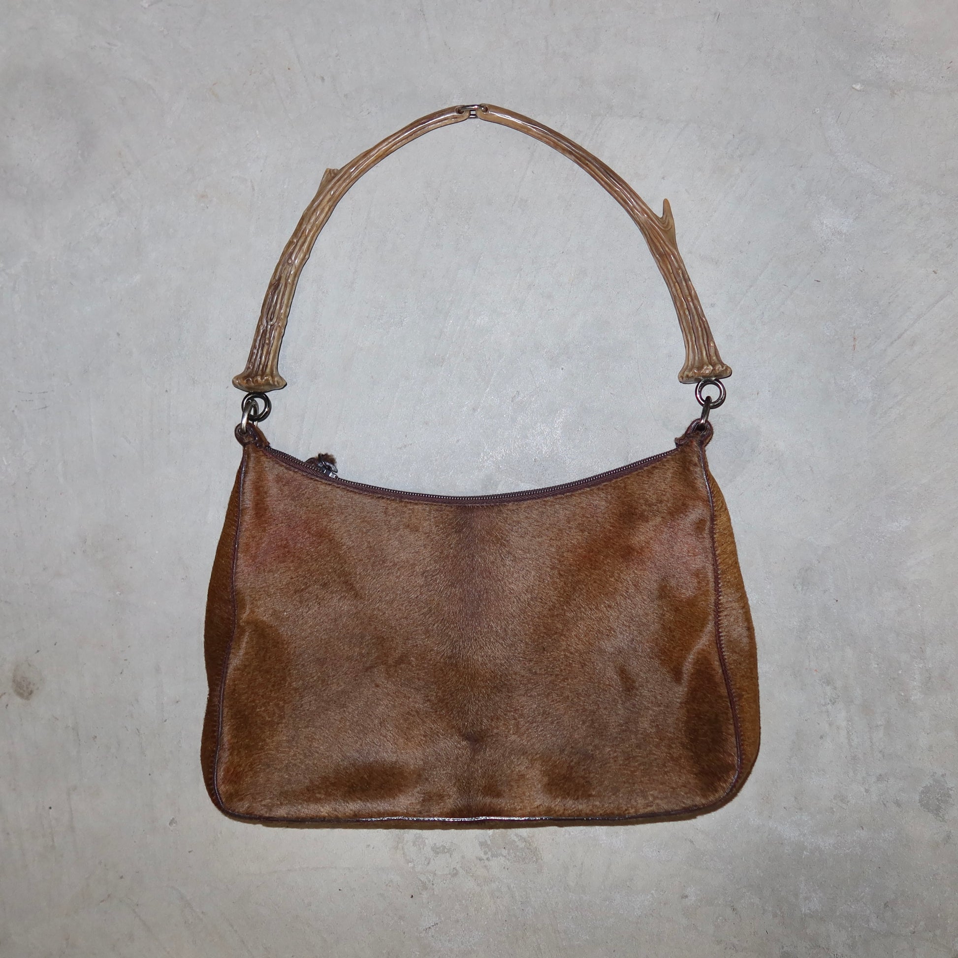 Insanely rare Prada bag made from deer hide with faux deer horn handles. A truly special collectors piece.