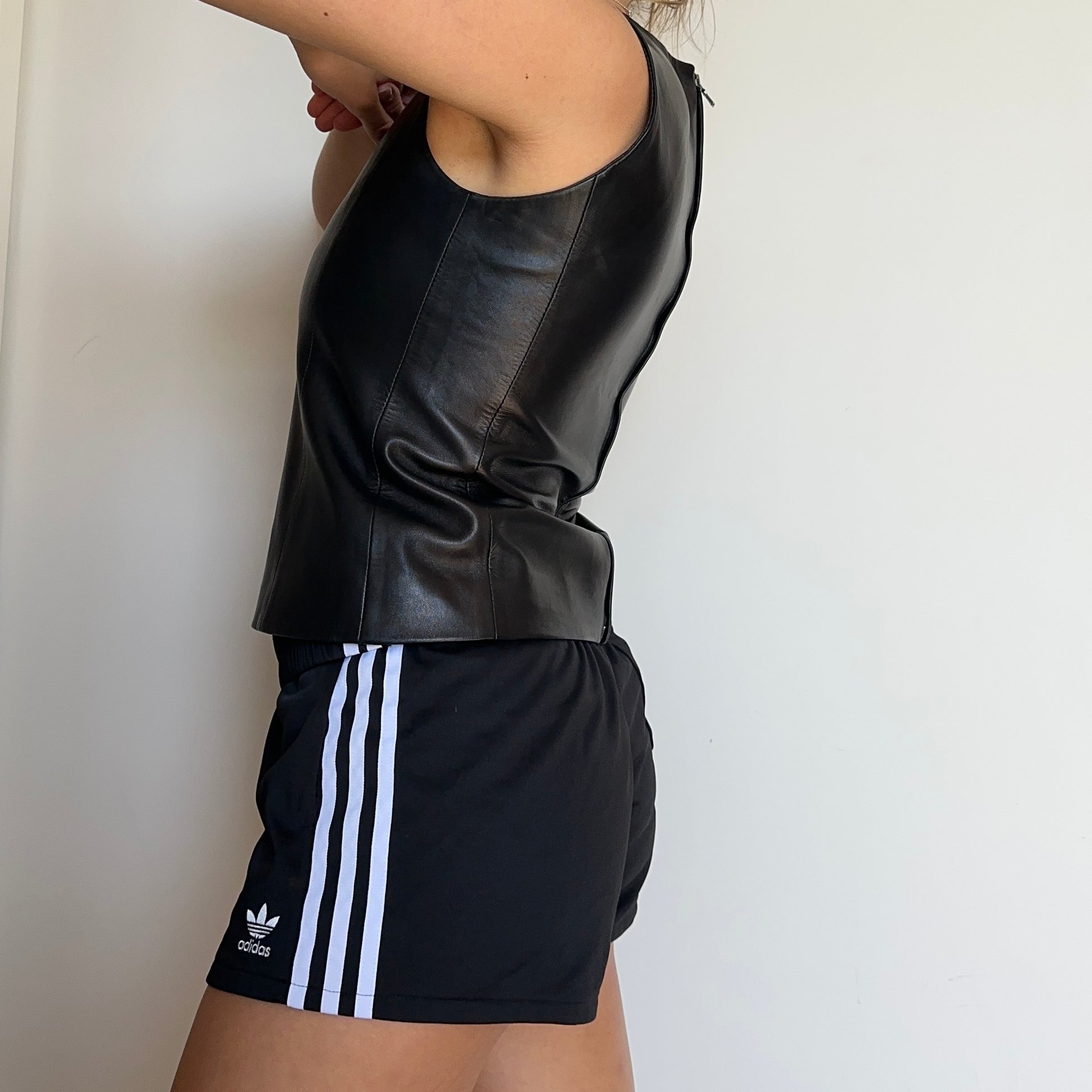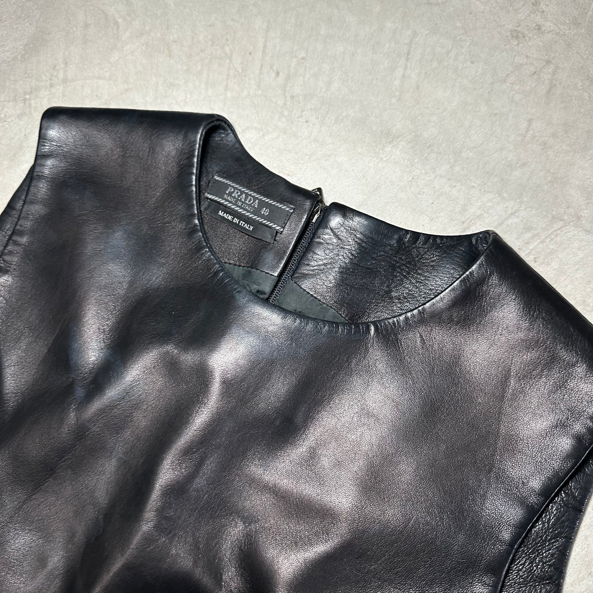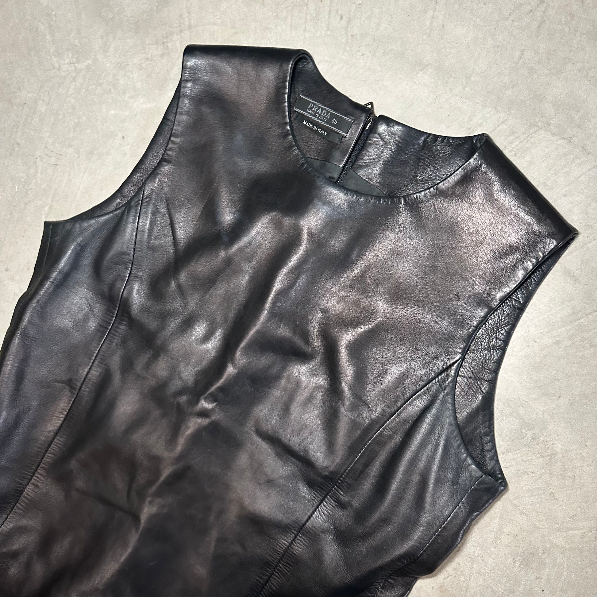 Insane buttery leather, high neck tank top by Prada.
