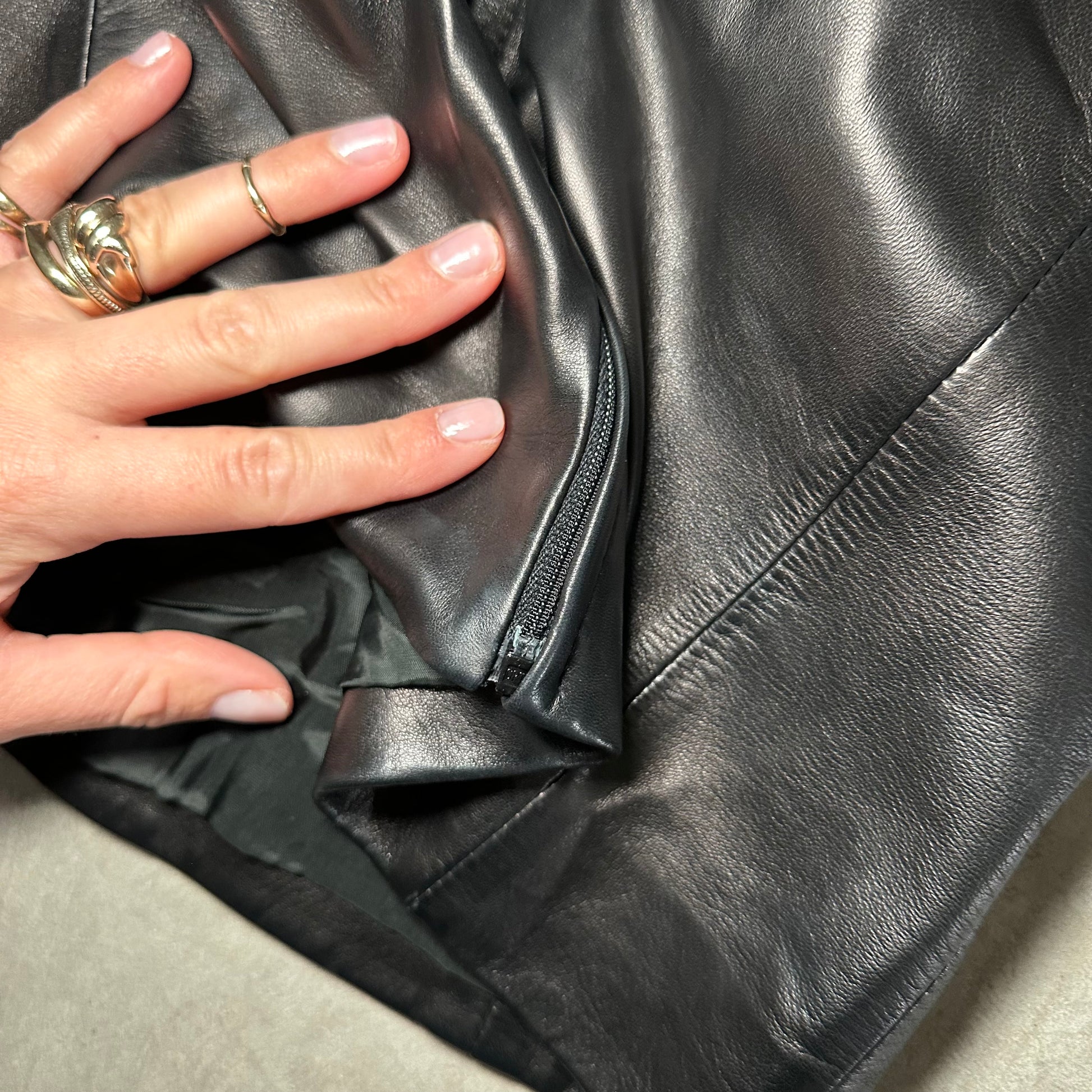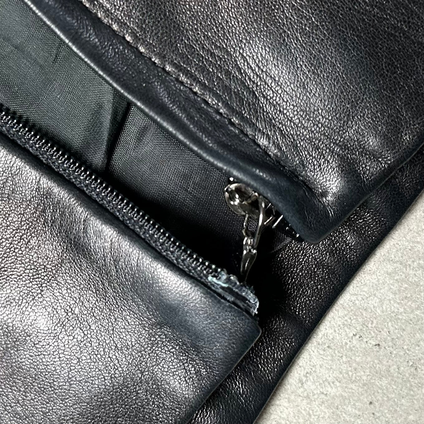 Good vintage condition. Some imperfections/marks in the suede, as pictured (looks worse under flash). Small plastic bit at bottom of the zip has worn a bit and you need to really push it into the metal slot to secure it before zipping up! Otherwise it will separate open from the bottom.