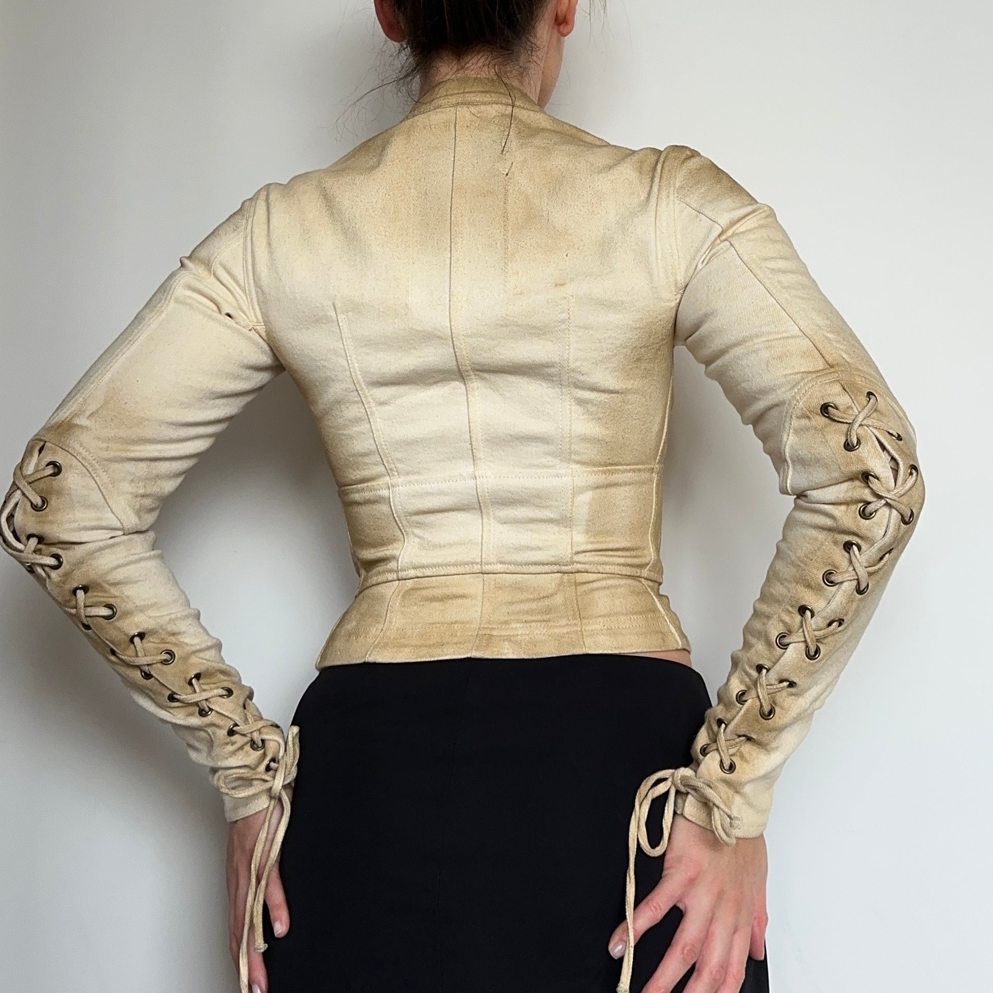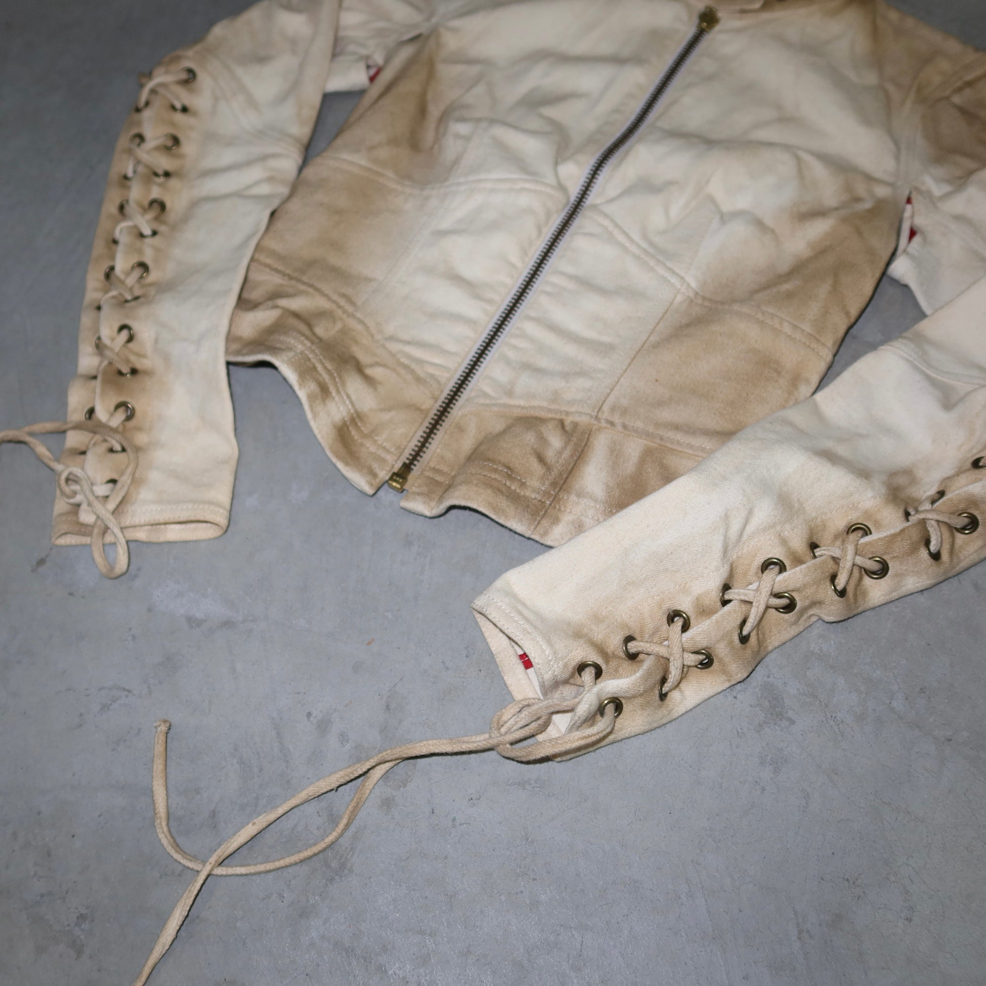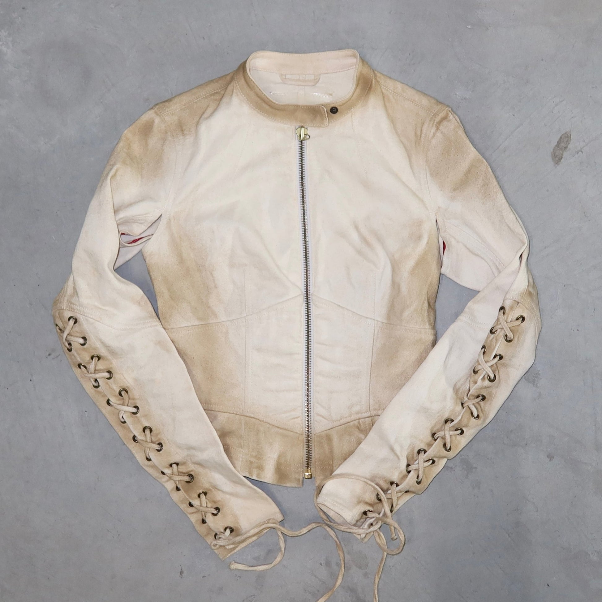 Gorgeous Prada Sport cotton moto jacket with lace up sleeves.