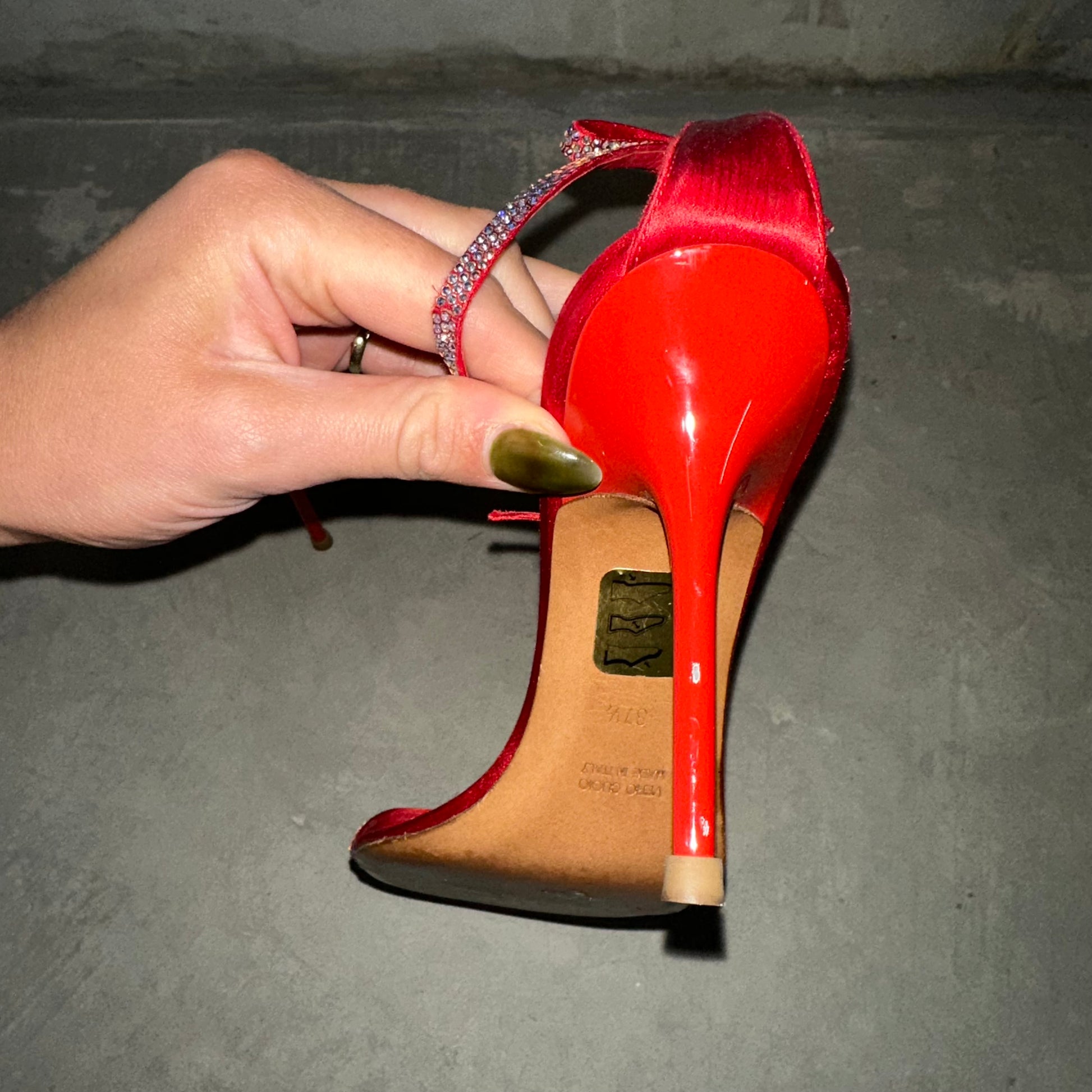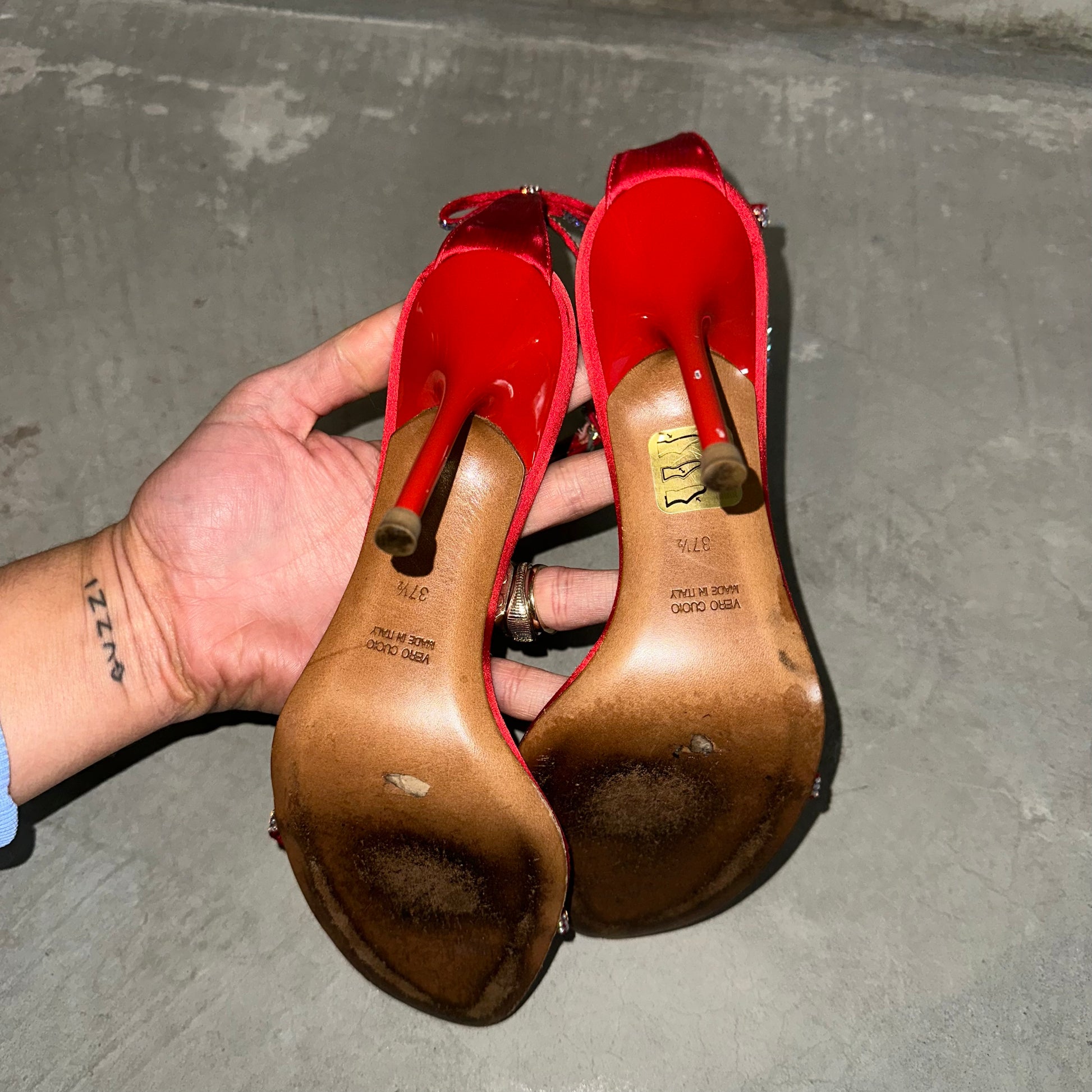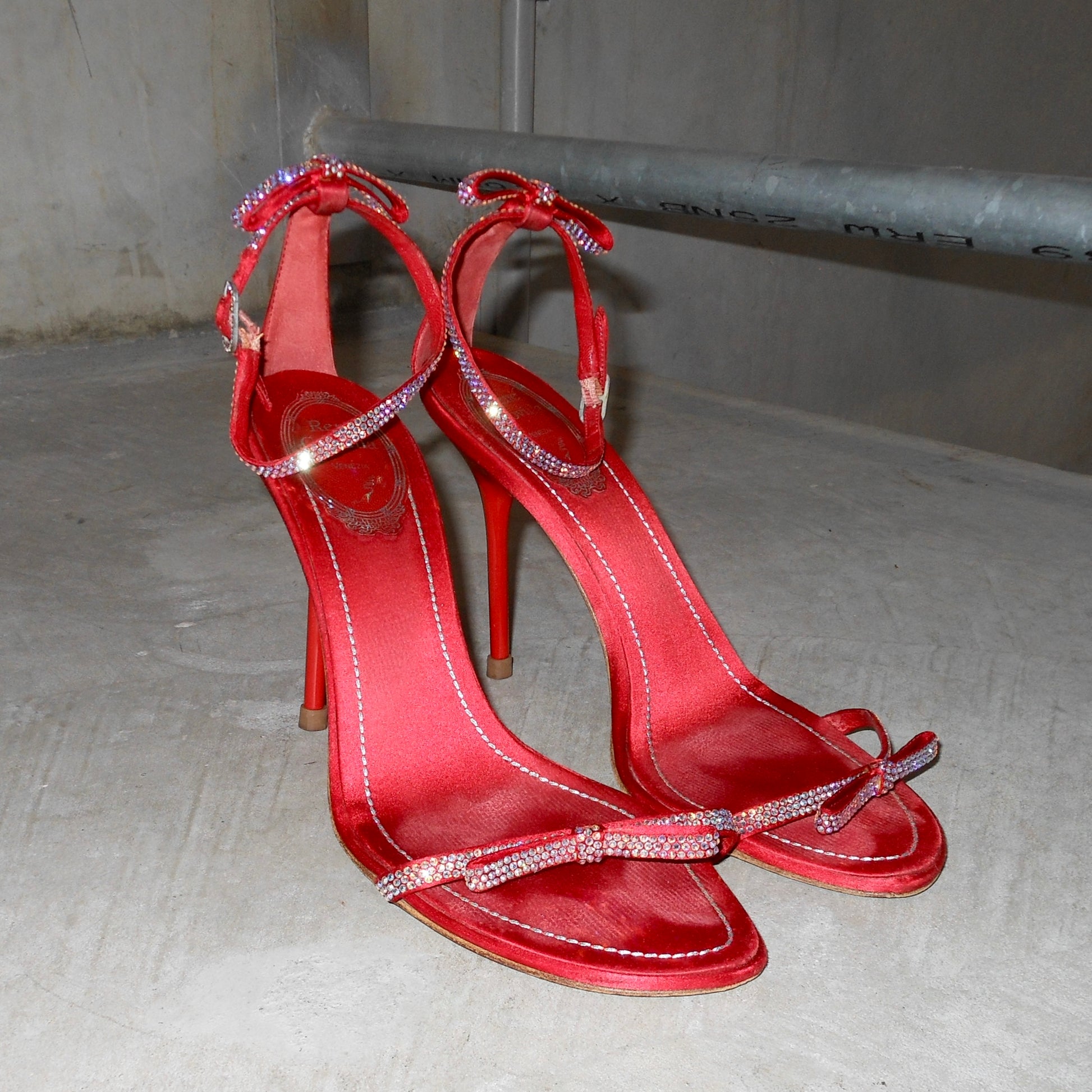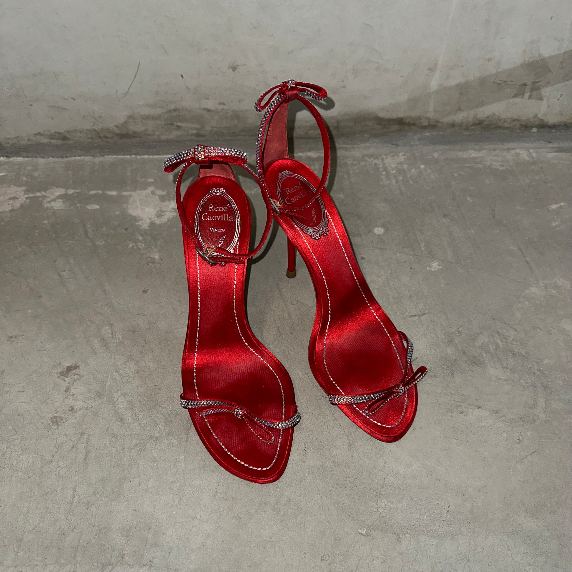 Rene Caovilla Red Satin Bow Heels (37.5)