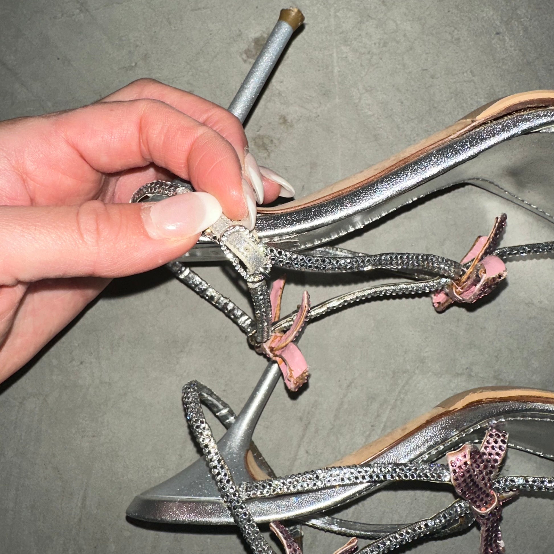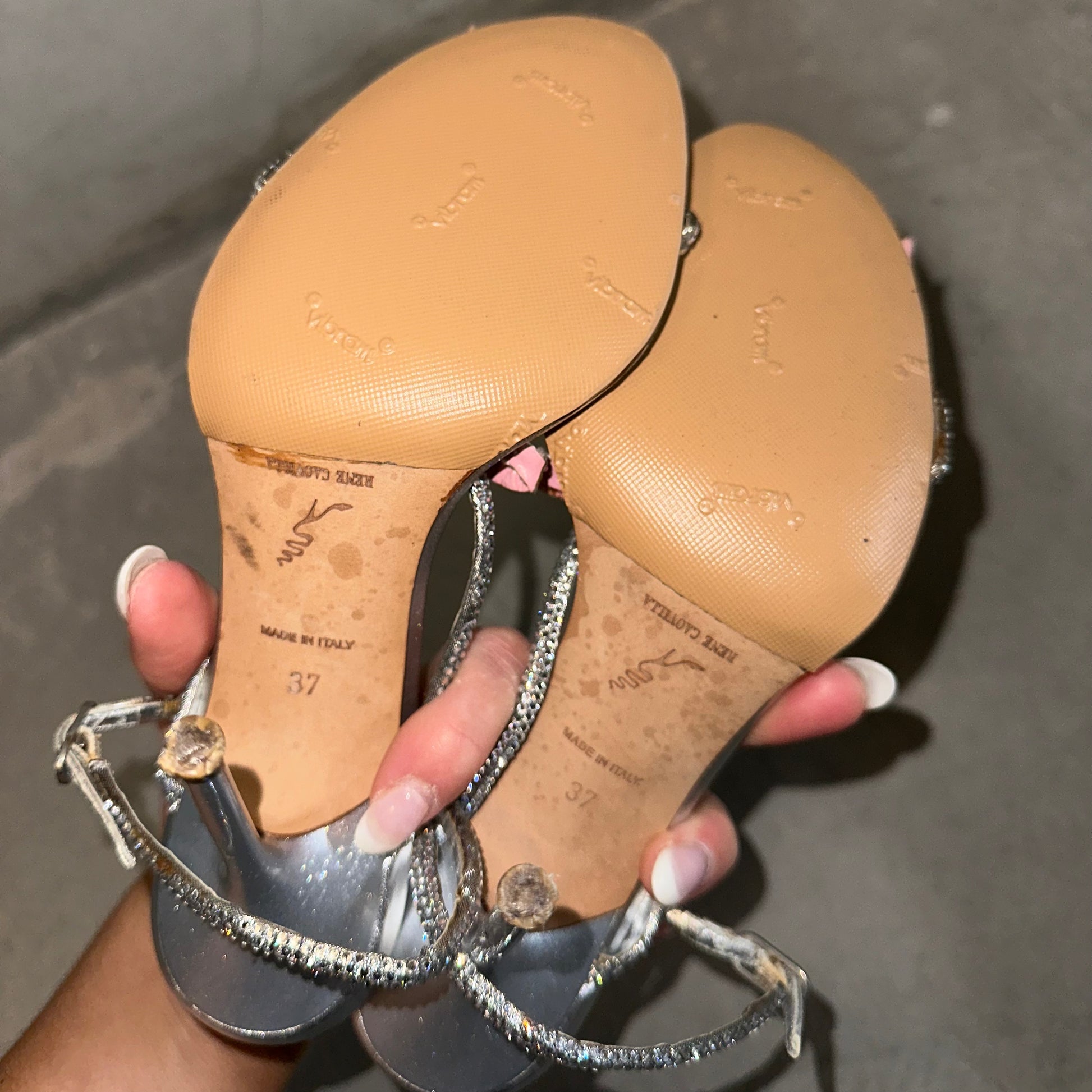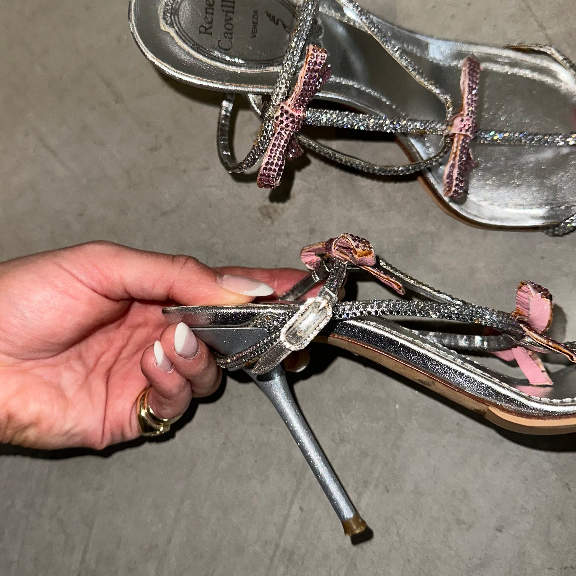 Princess-worthy triple bow diamanté heels by Rene Caovilla. These heels are some of the most stunning I have ever seen. Beautiful beyond comprehension. These still retail on Farfetch for A$2995. Soles have been reinforced.