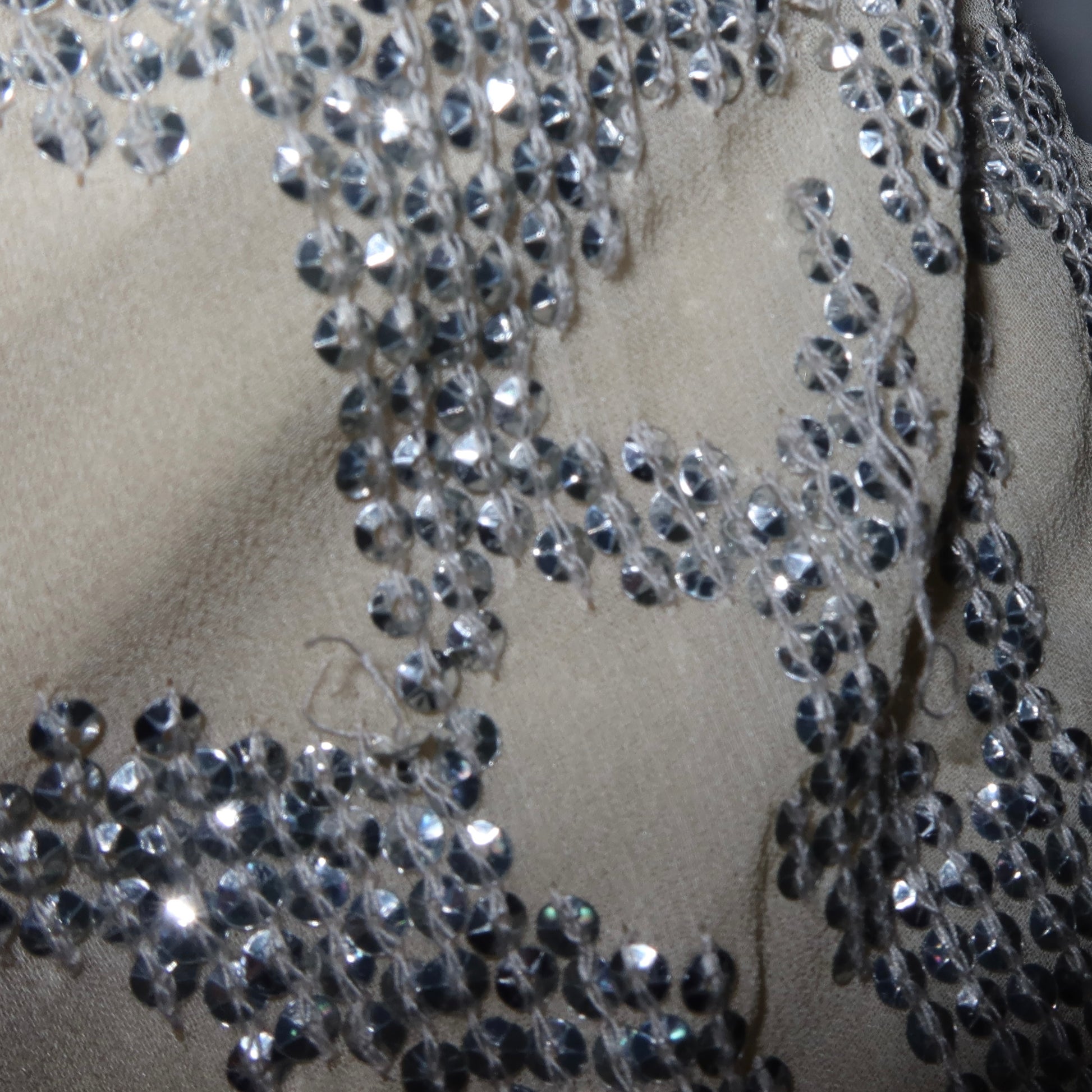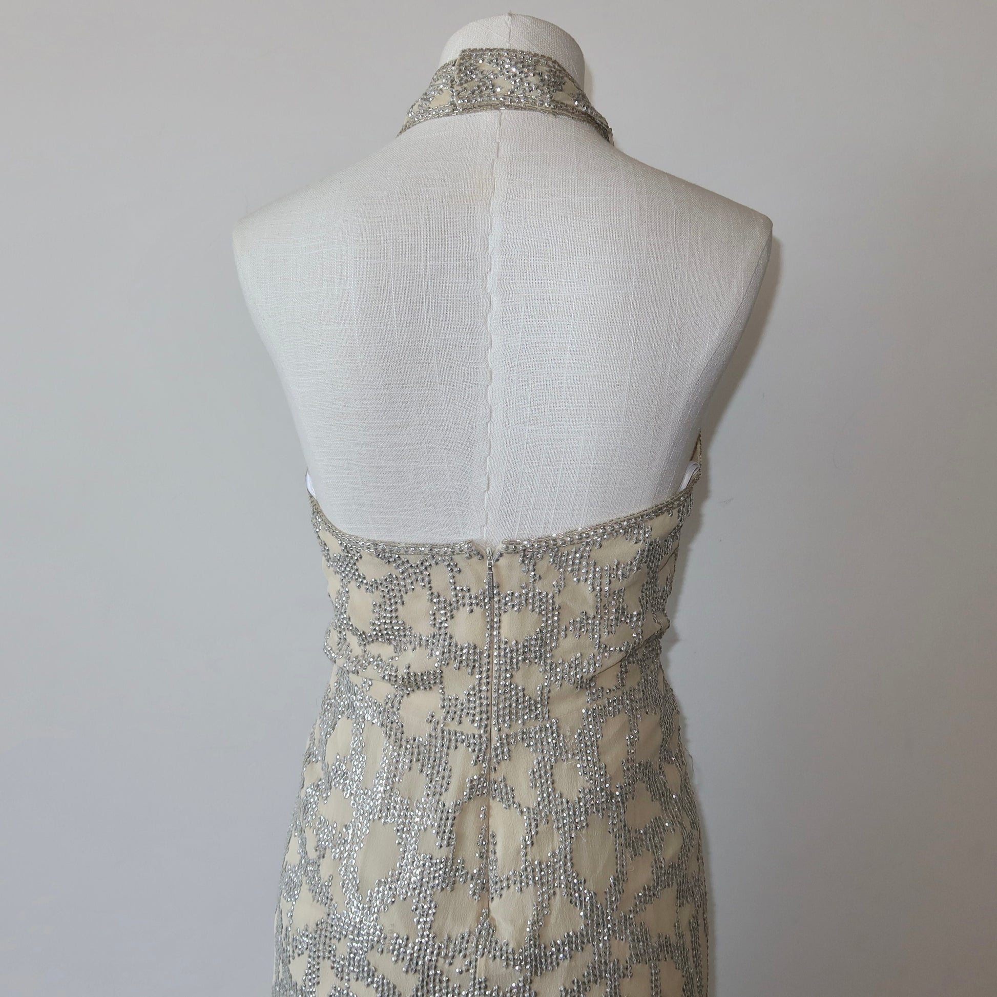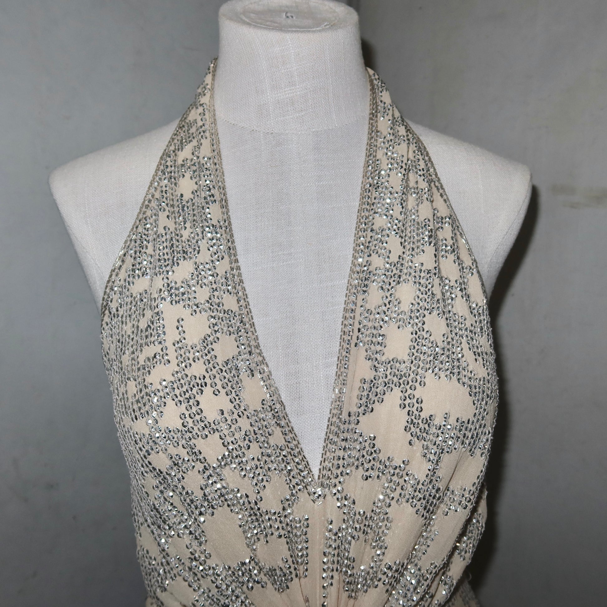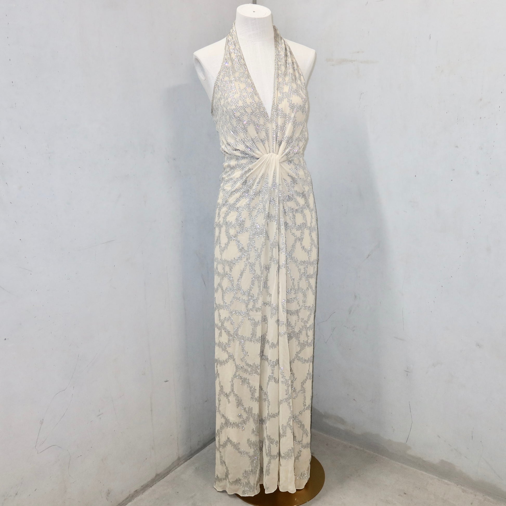 Roberto Cavalli floor length silk halter neck gown with plunging neckline and sequin embellishment. Although this was not a runway piece, it is from 2007.