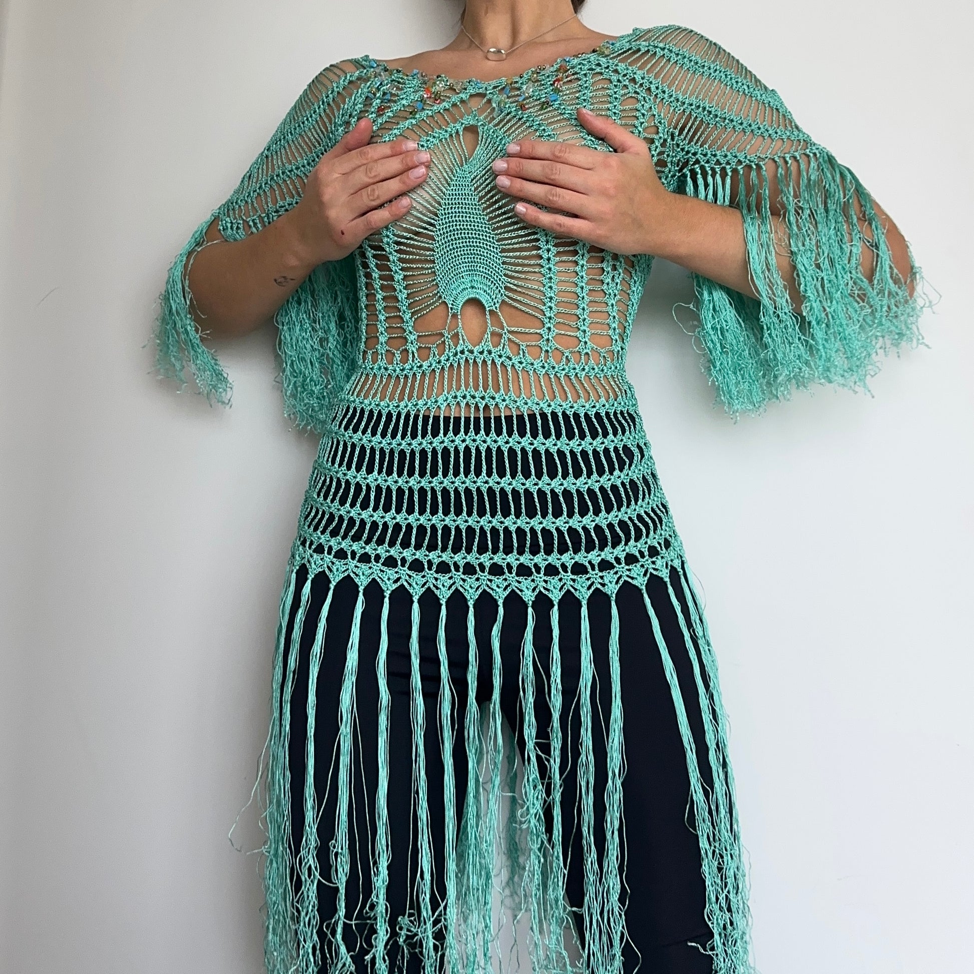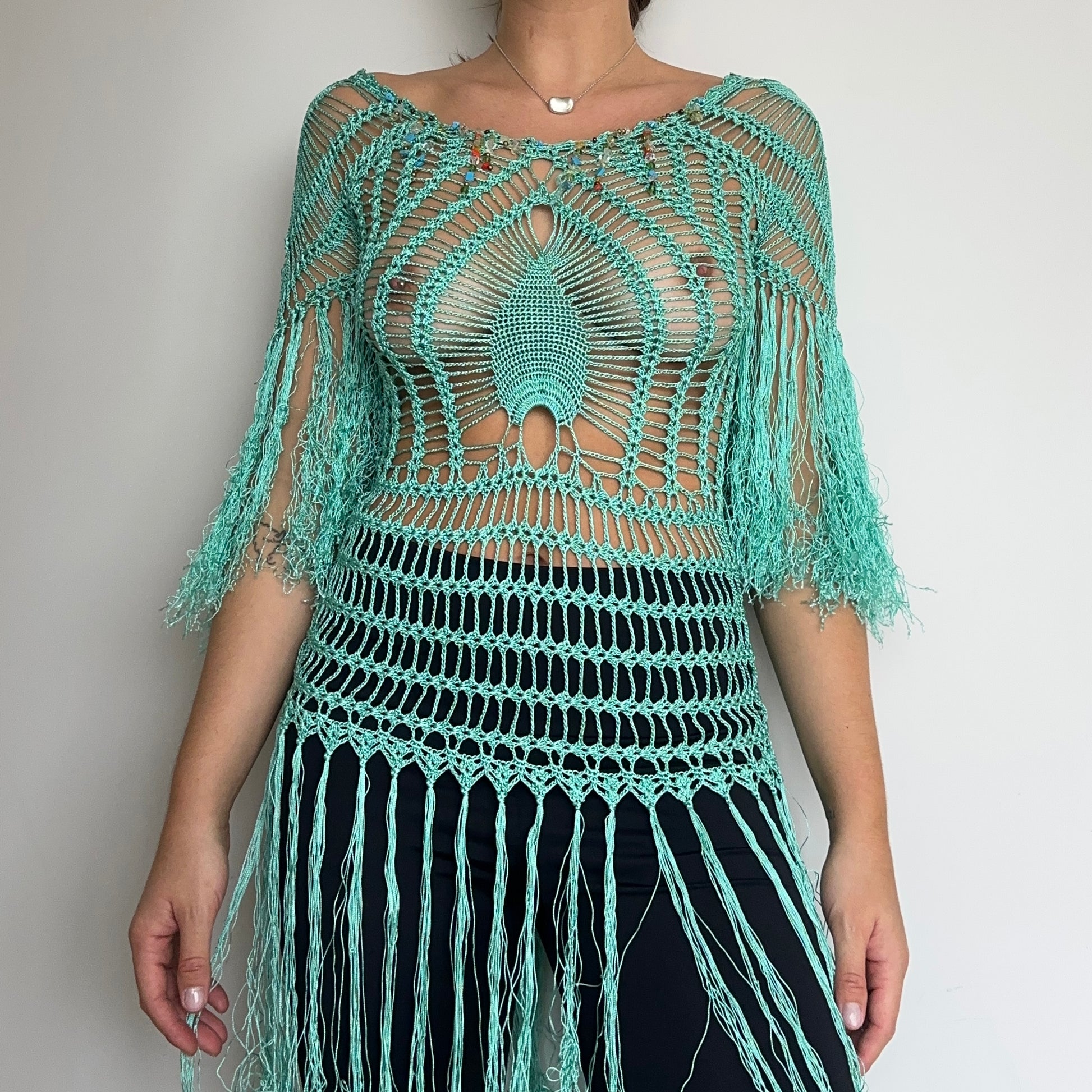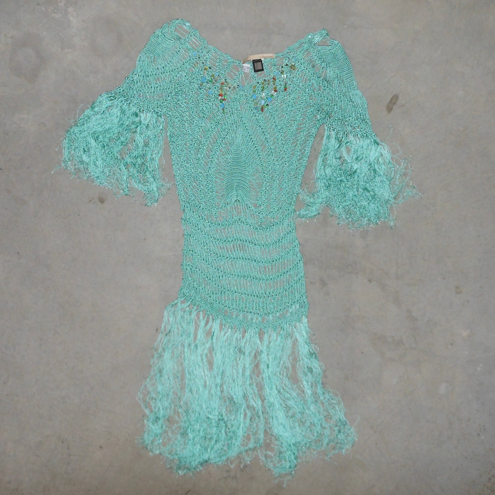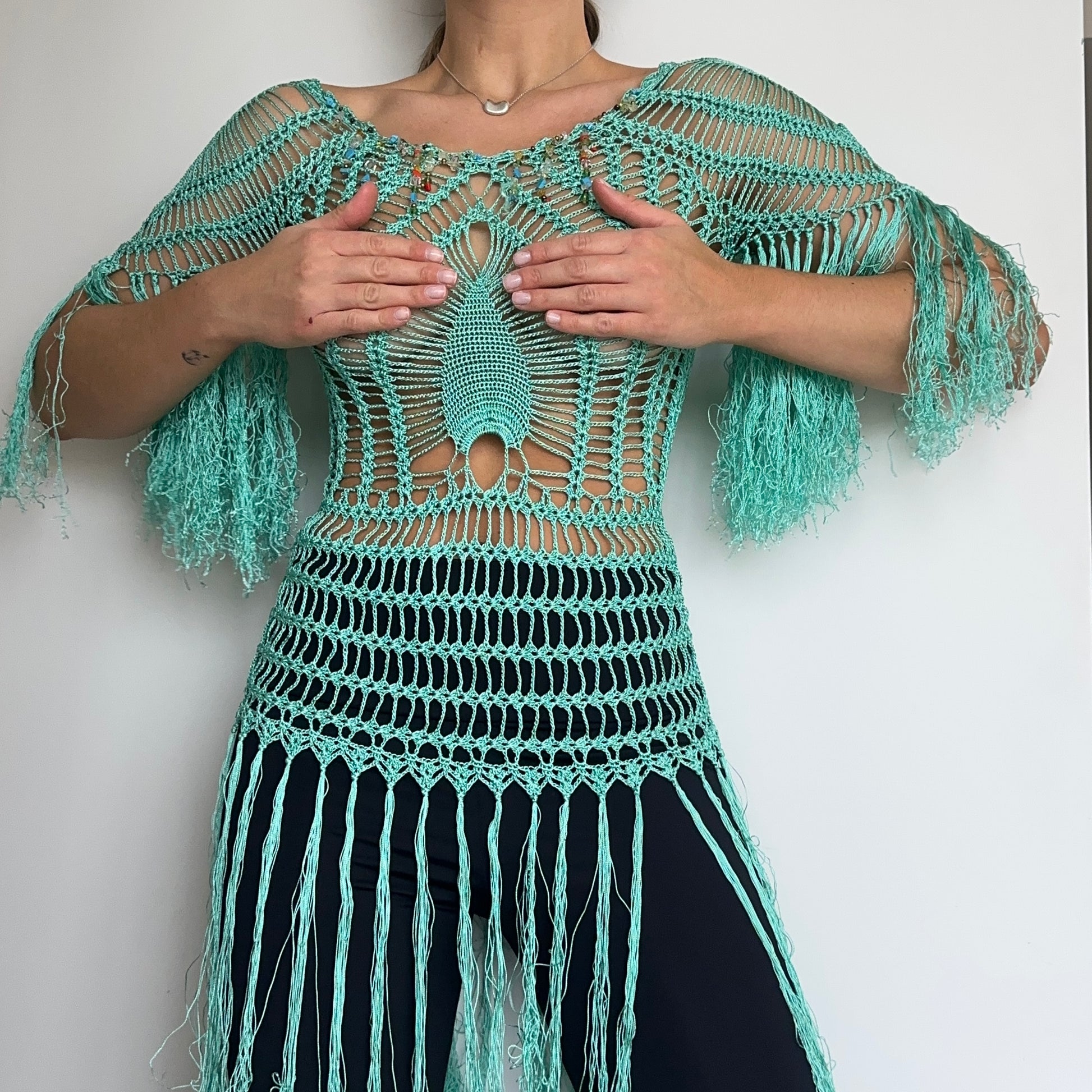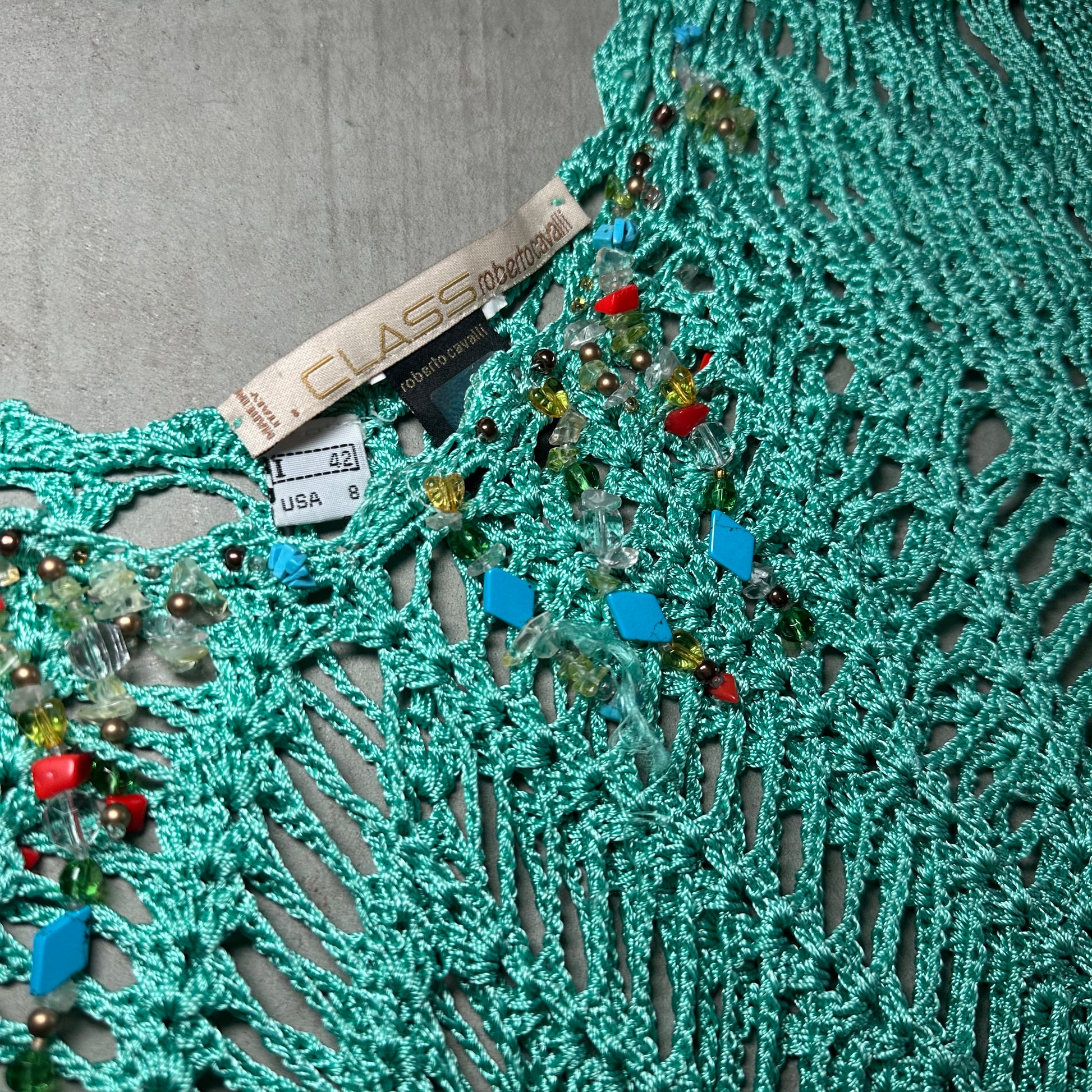 Amazing turquoise crotchet top/mini dress by Cavalli Class.