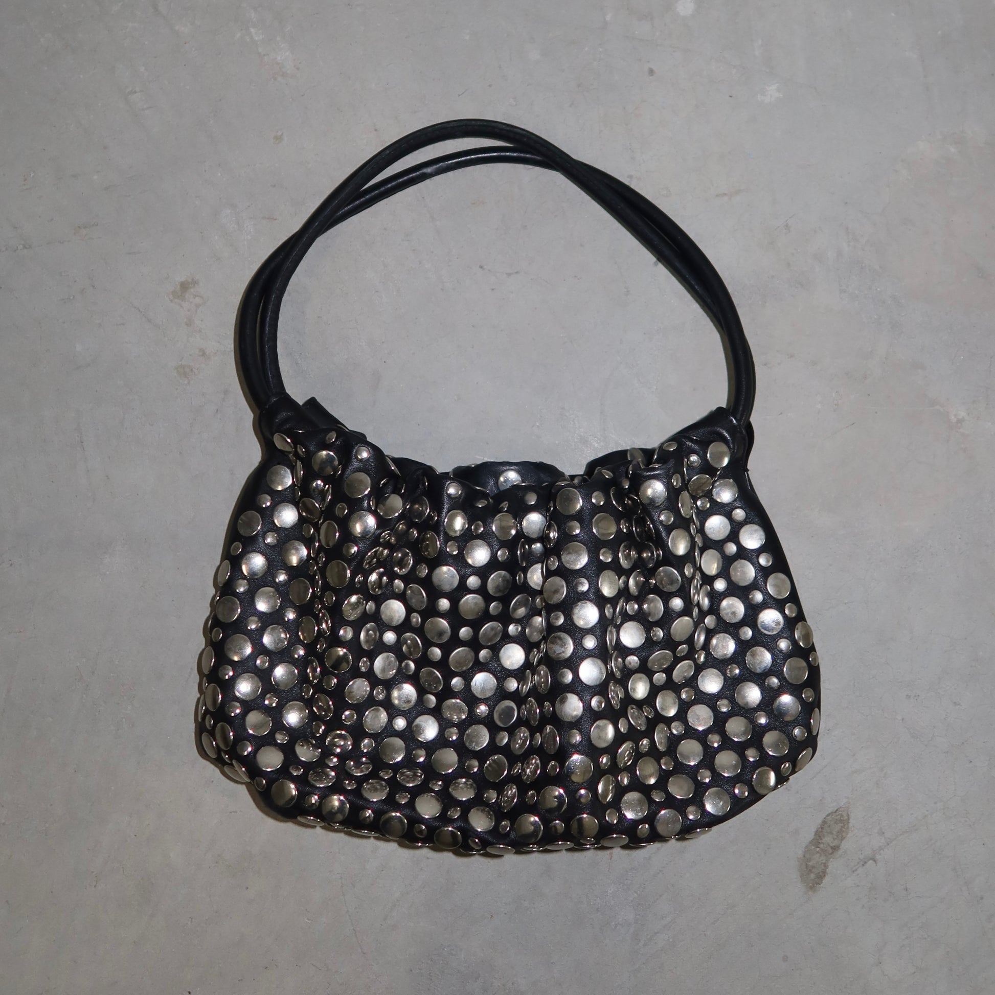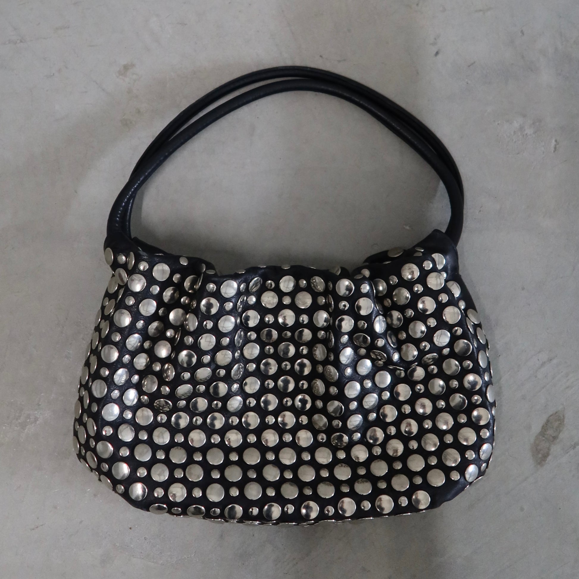 Gorgeous black leather Domino bag by Sonia Rykiel with silver hardware.