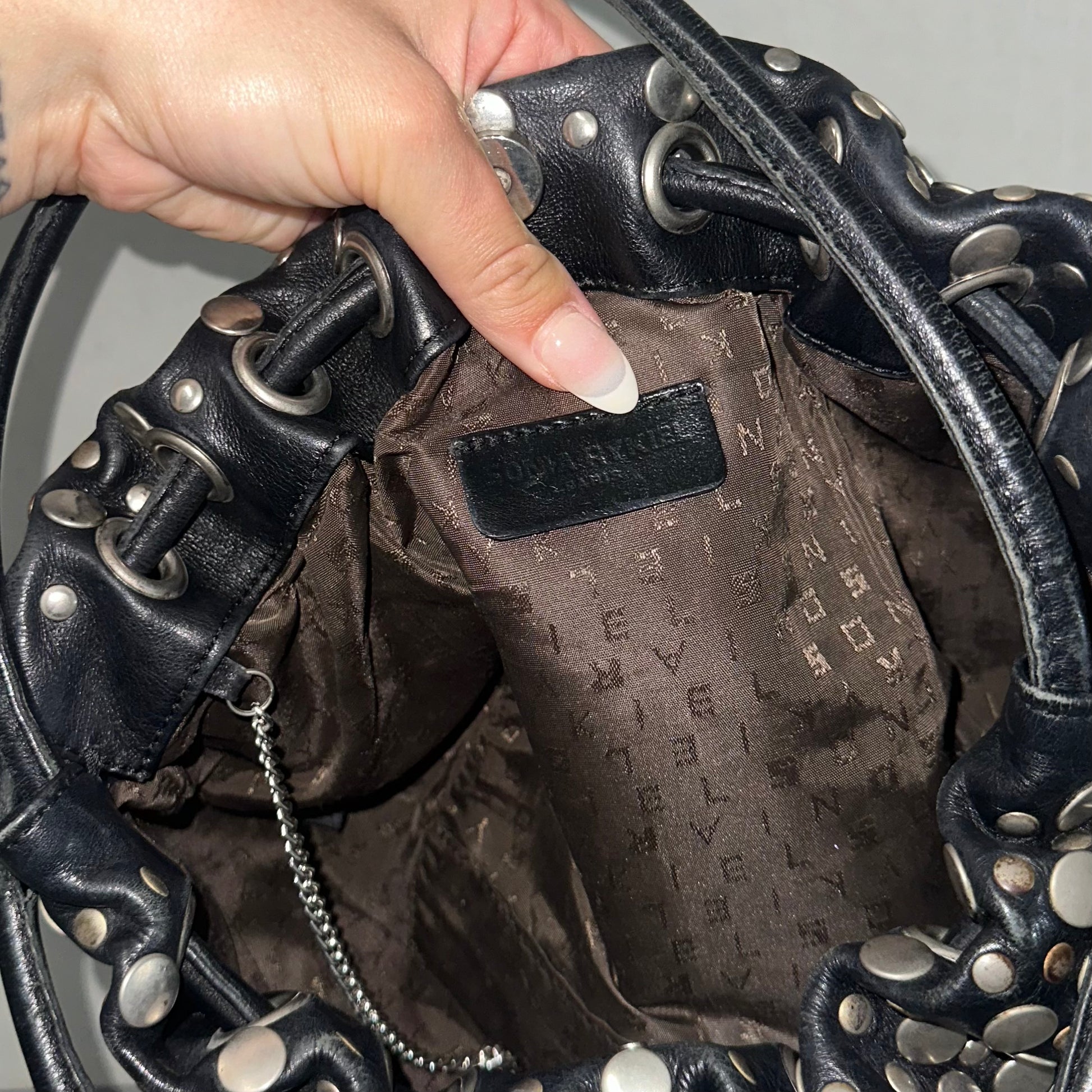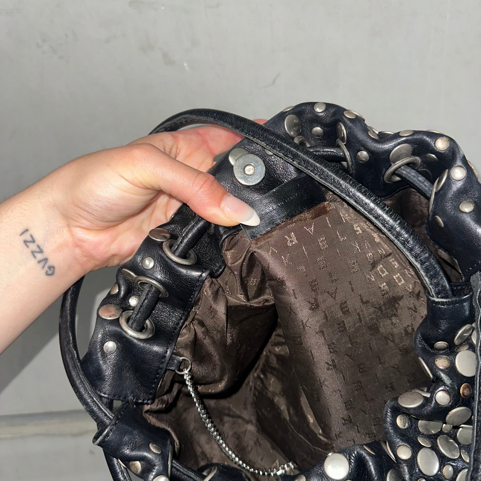 Another gorgeous Sonia Rykiel Domino bag in black leather with silver studs. Heavy. I personally have this colour way and she goes with everything !