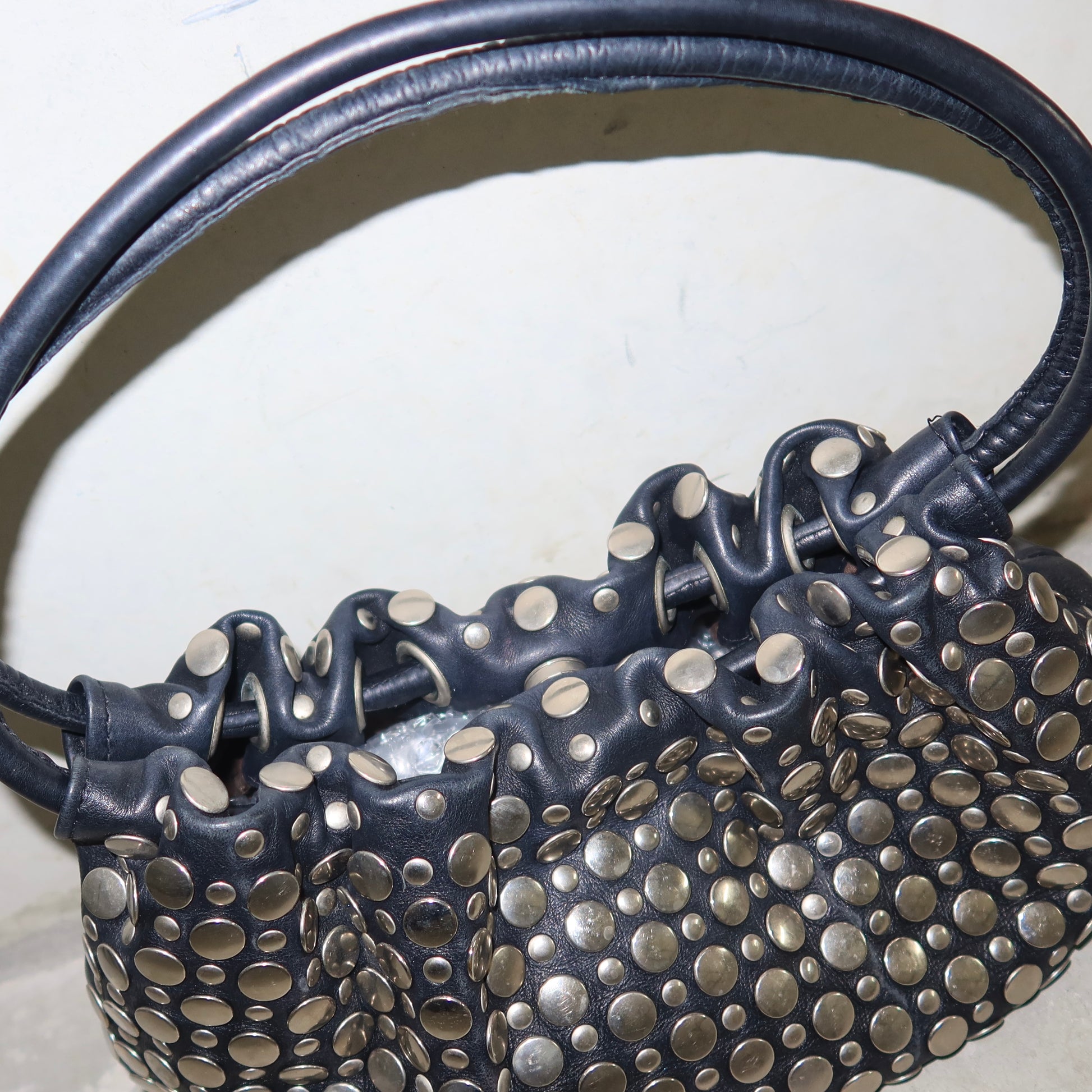 Great vintage condition. Very minor signs of wear - scuffs on studs, wrinkles in the leather on the handle.