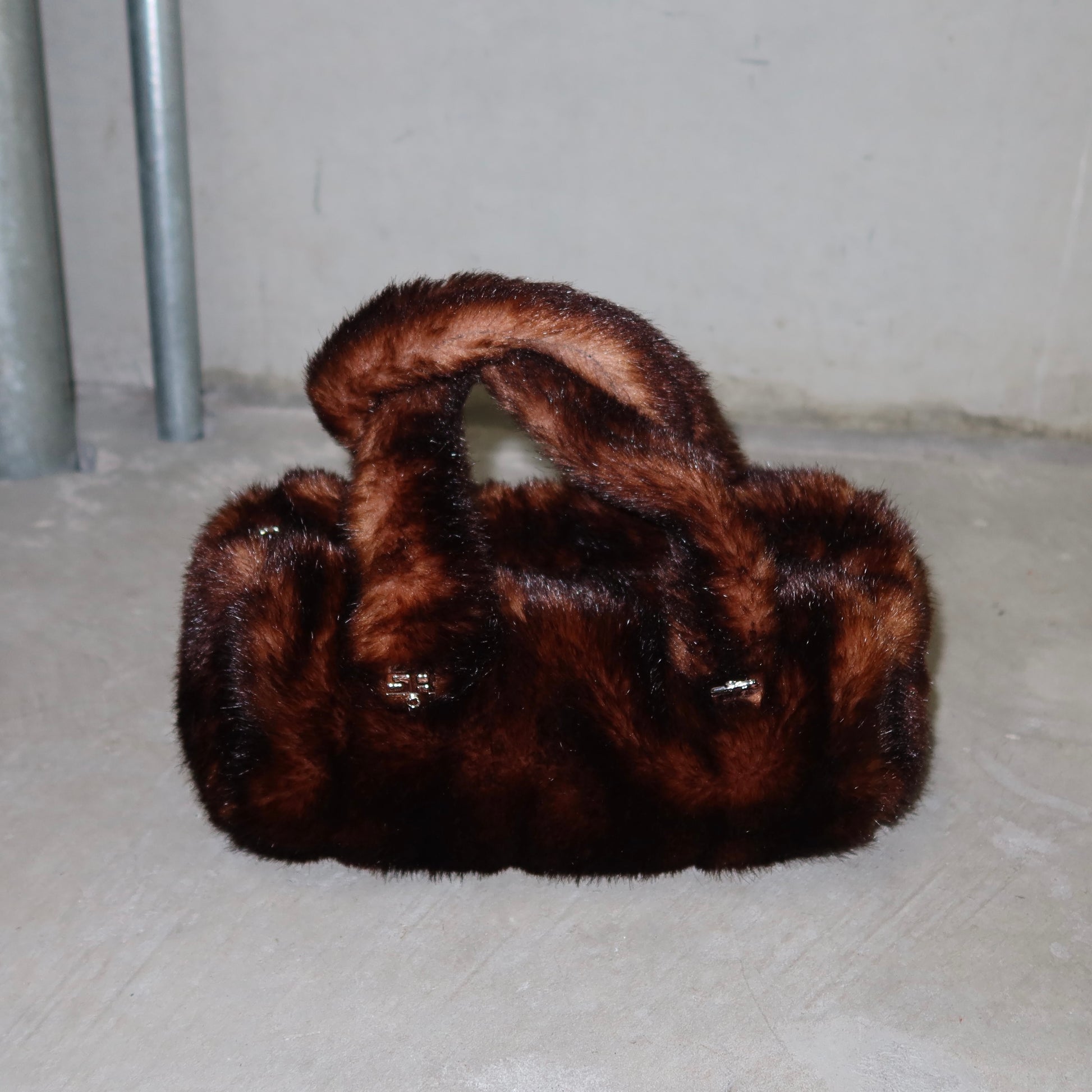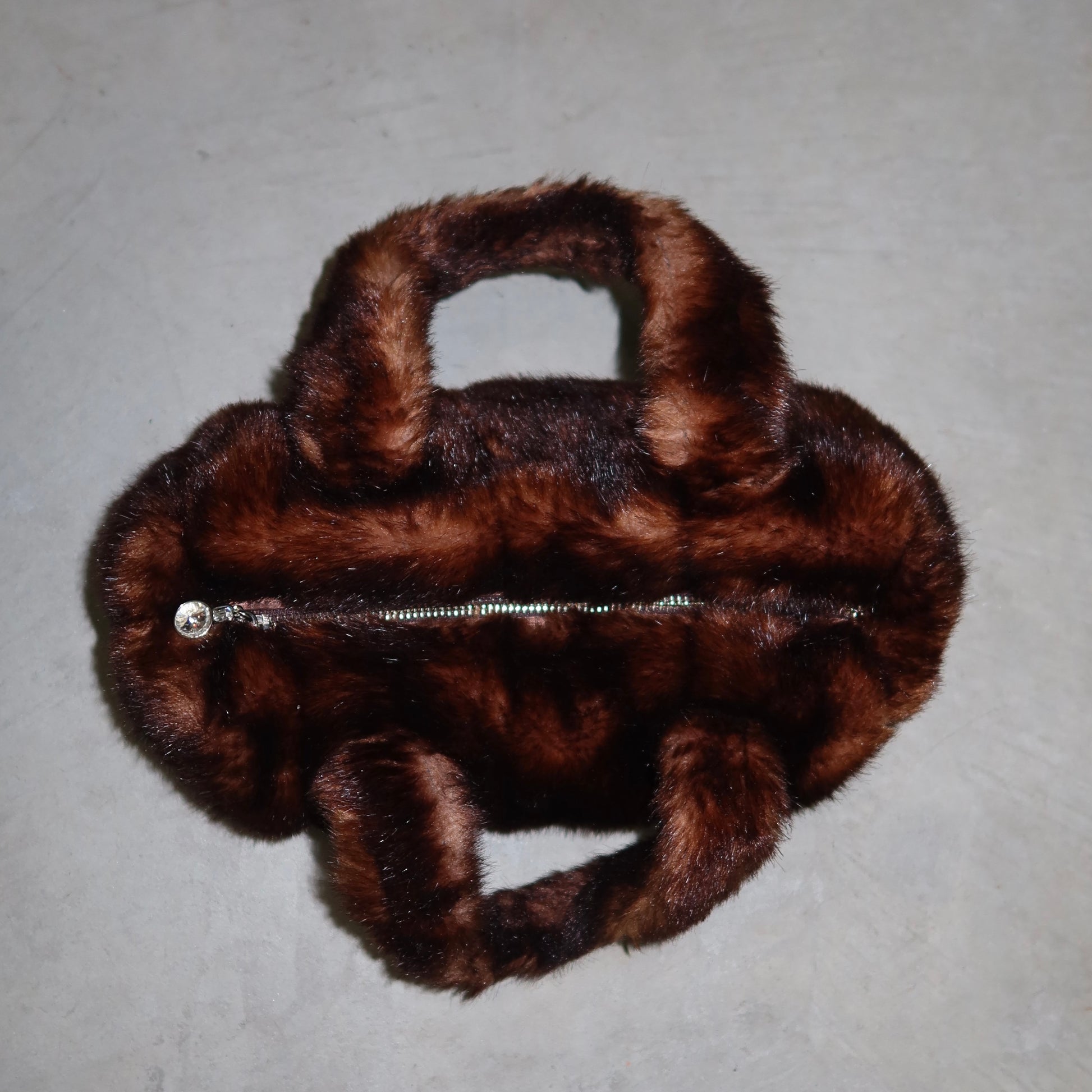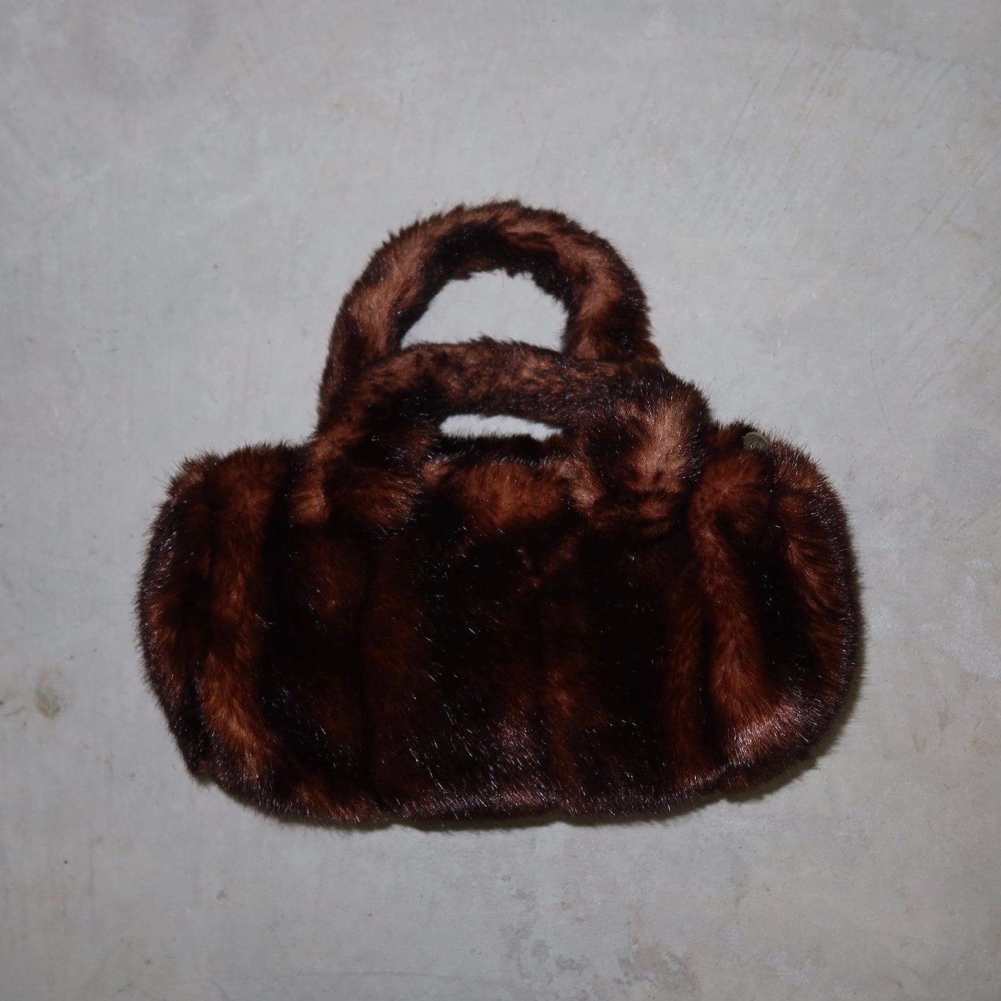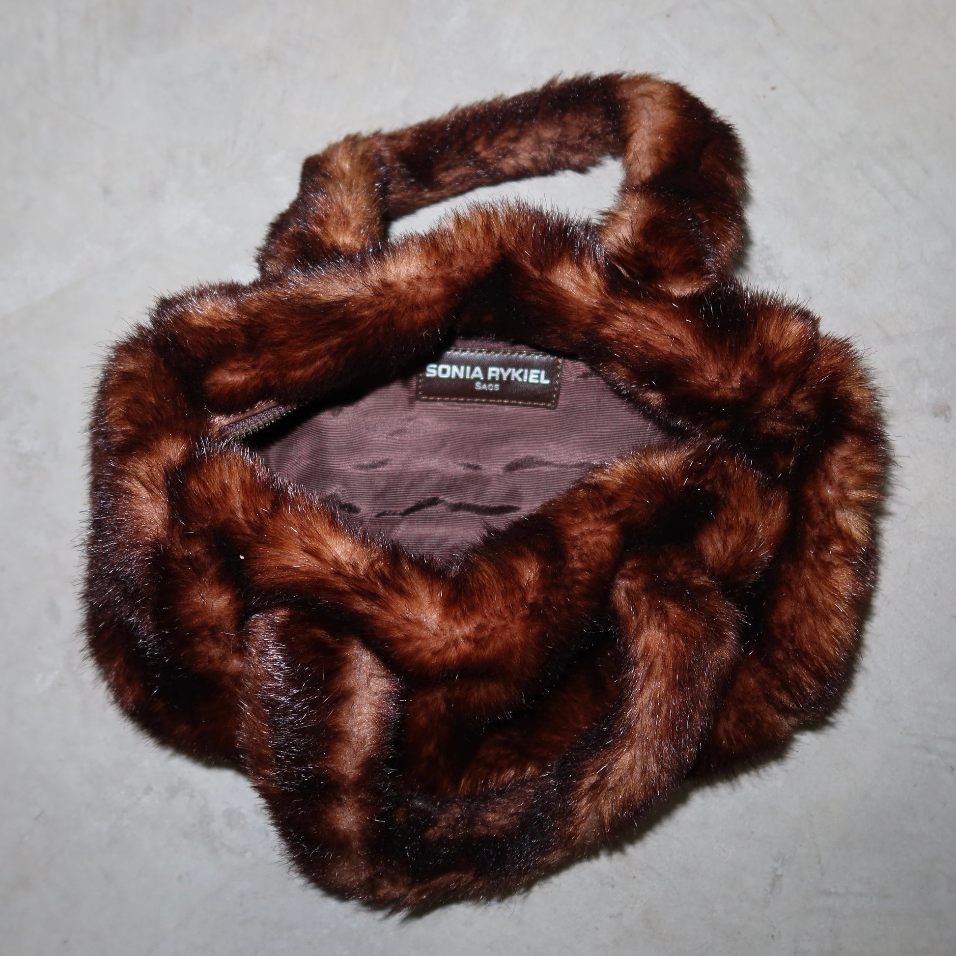 The cutest little faux fur bowling bag by Sonia Rykiel. Tiny 'SR' charms at the base of the handles. These used to have diamanté chain attachment but it is sadly lost.