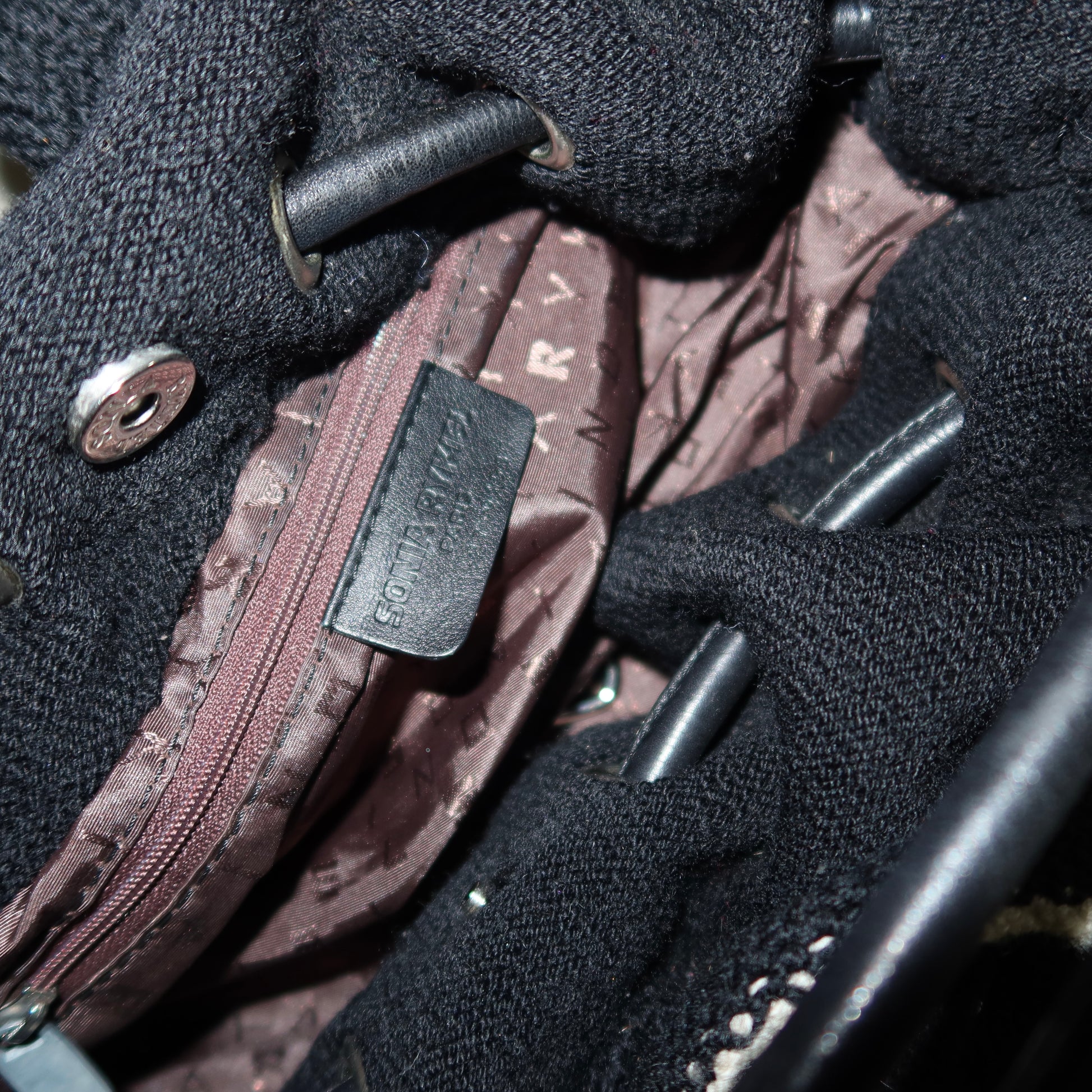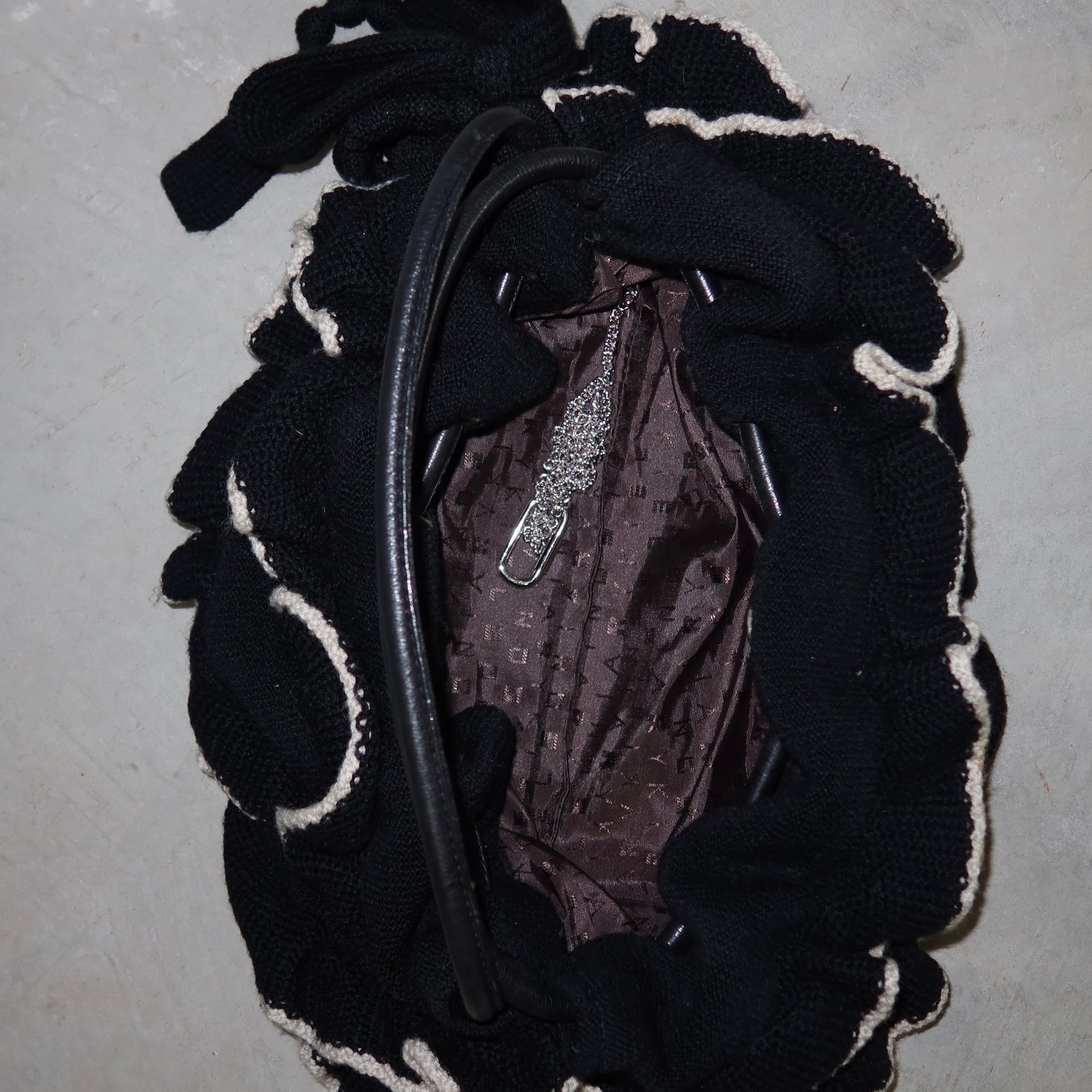 Gorgeous huge black and white Sonia Rykiel Domino bag with knitted frill details.