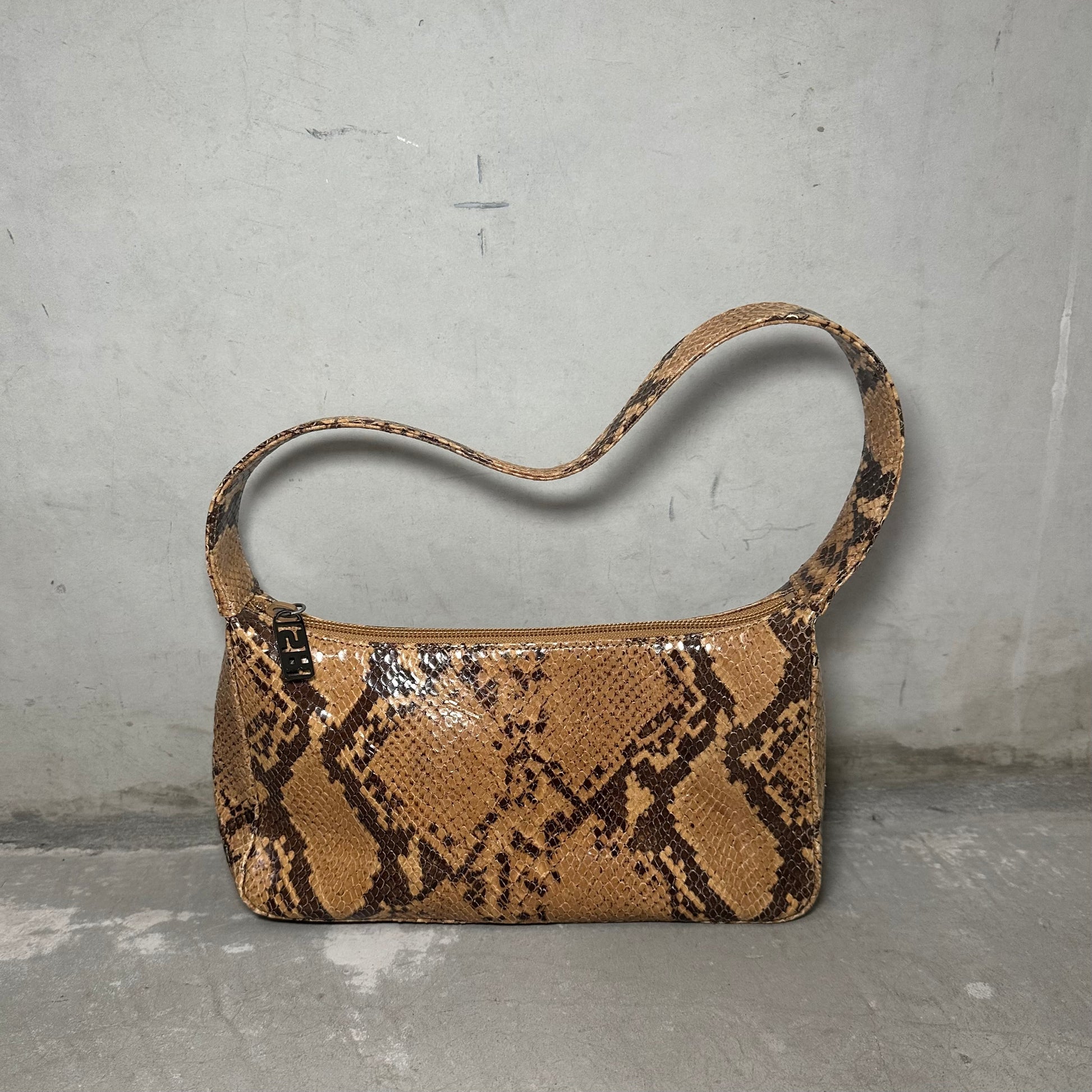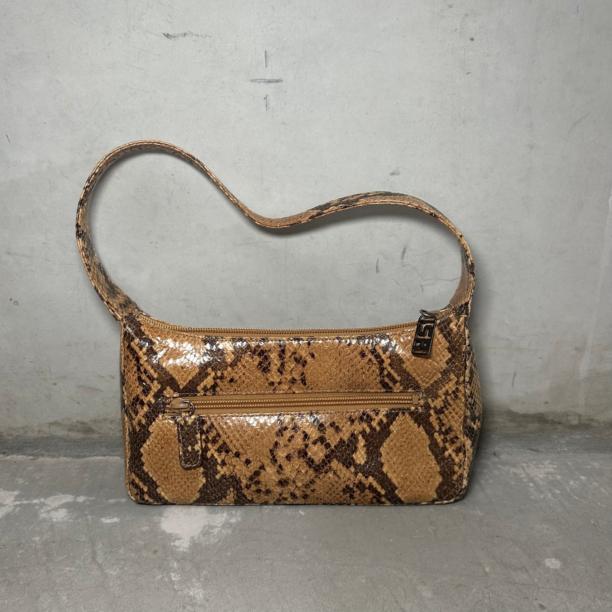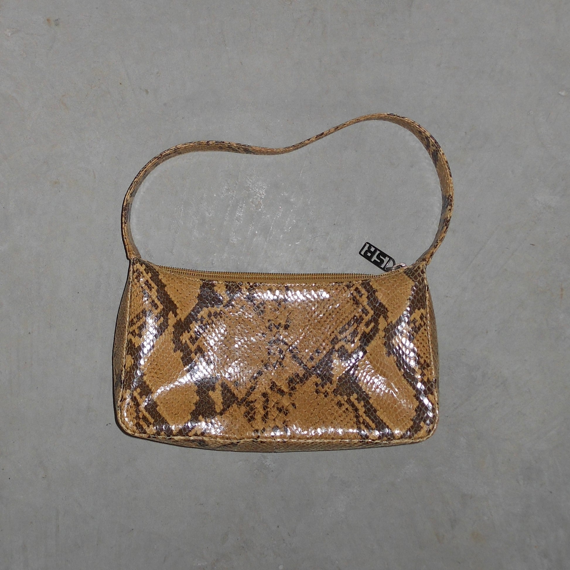 Super cute Sonia Rykiel faux snakeskin mini bag. ‘SR’ hardware on the zip. Back pocket.