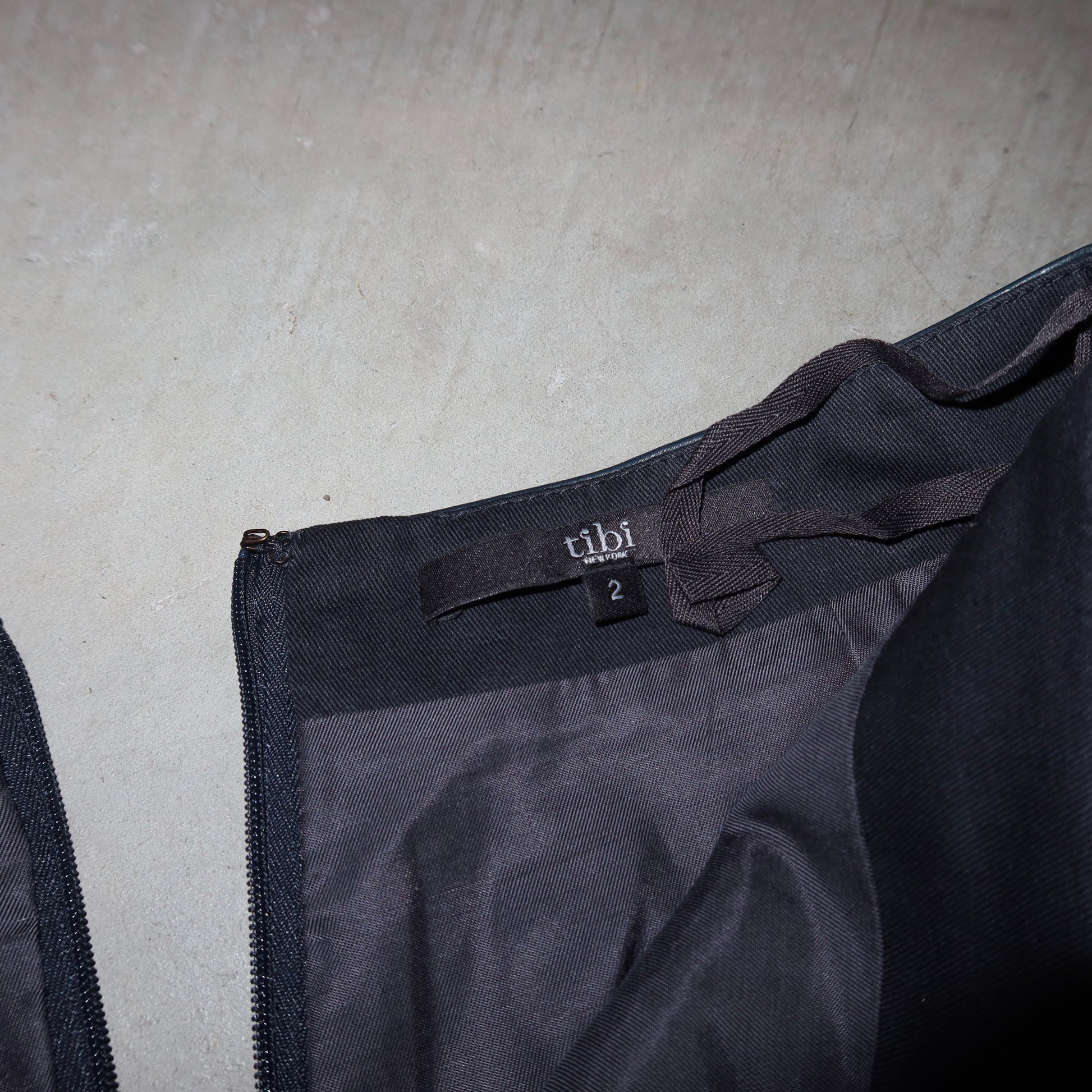 Beautiful dark blue leather skirt by Tibi with gorgeous silver hardware details. This is not vintage.