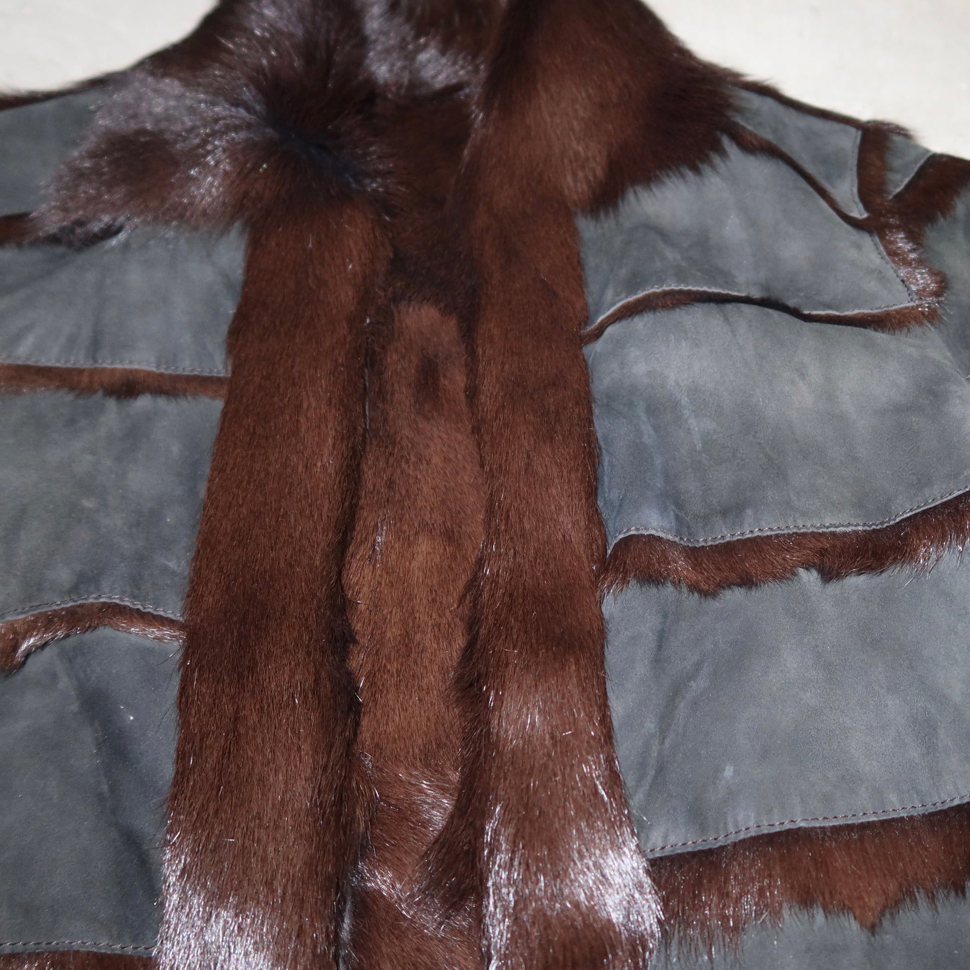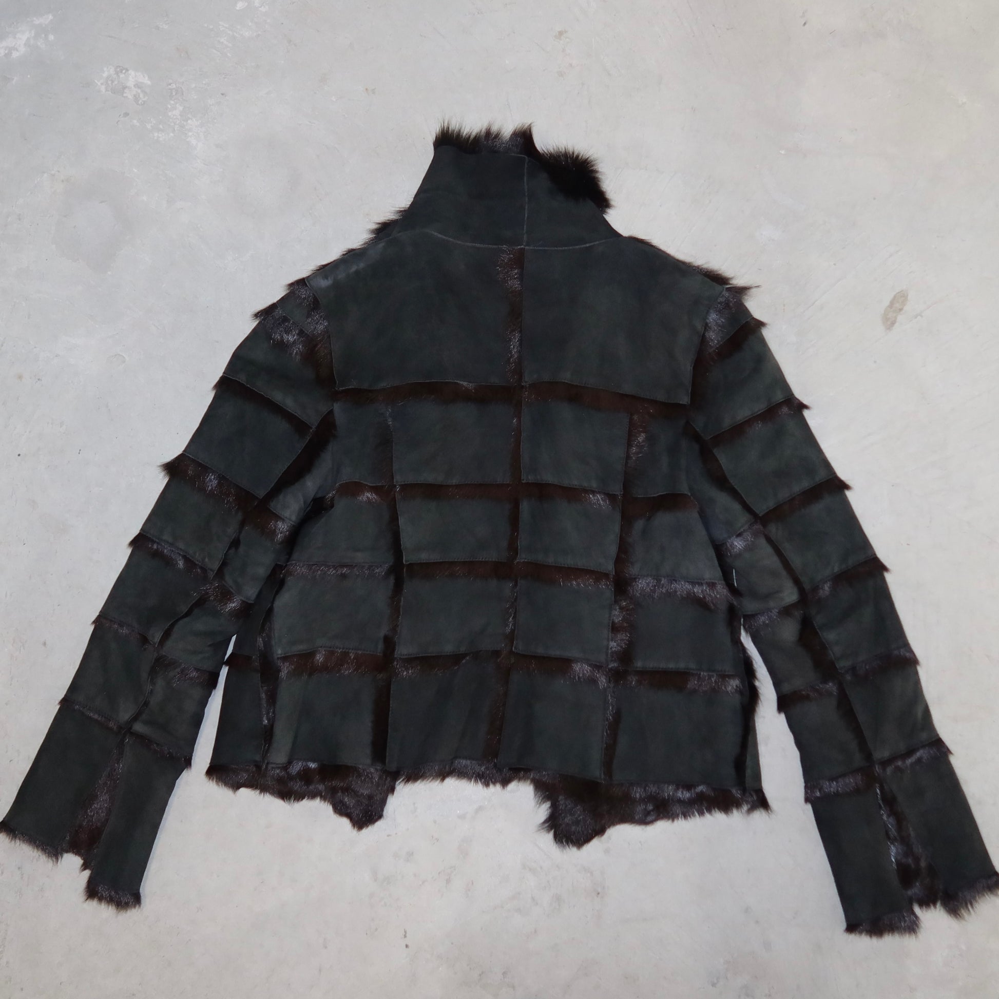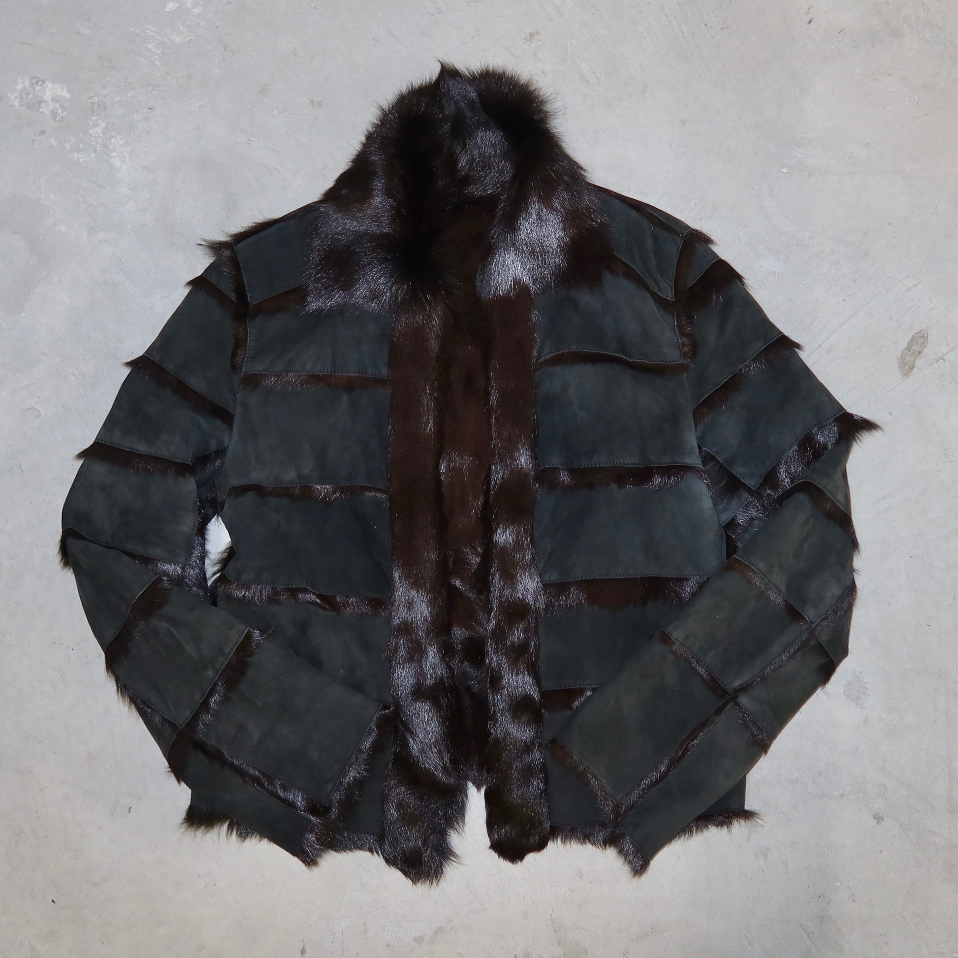 Gorgeous dark green suede jacket with real fur lining. Buttery soft. Silver hook and eye closure.