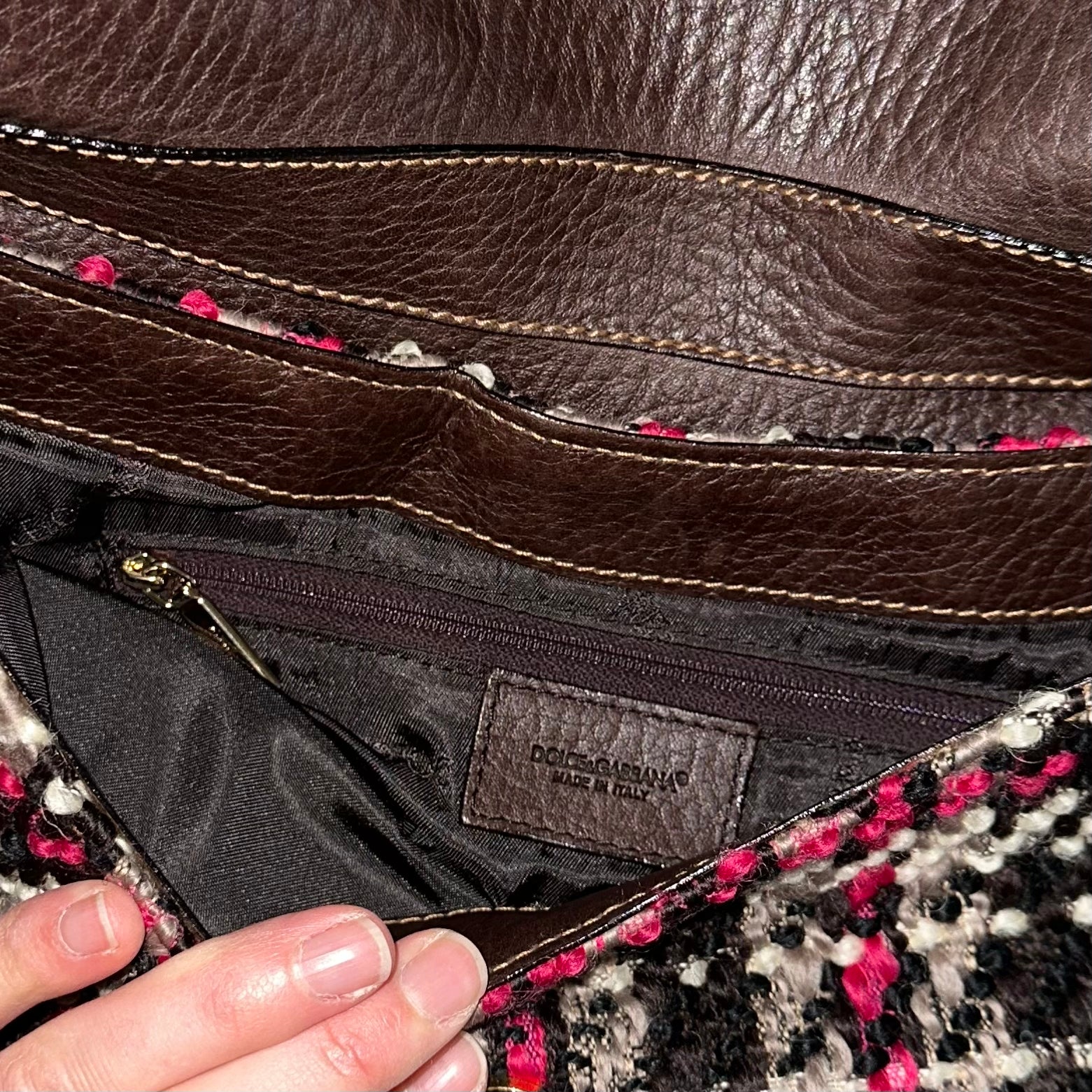 Dolce & Gabbana Large Tweed and Leather Flap Front Handbag