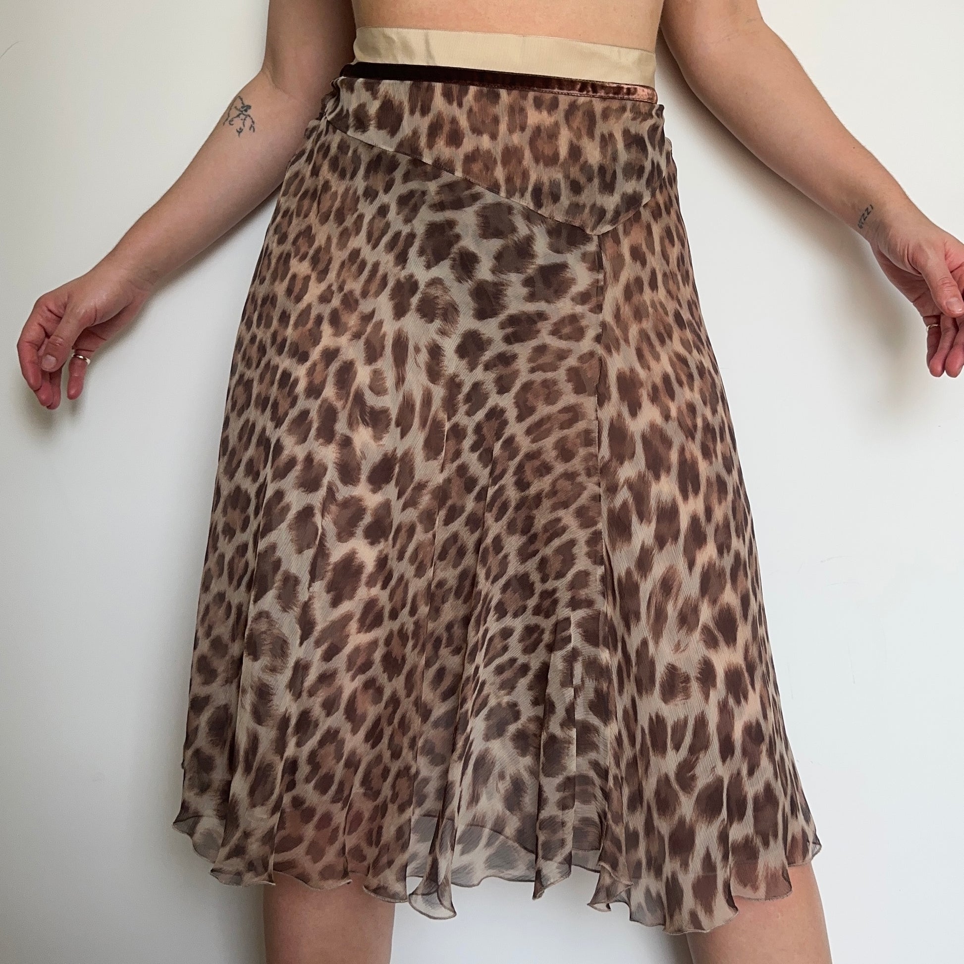 The most gorgeous semi sheer Blumarine 100% silk leopard print skirt.