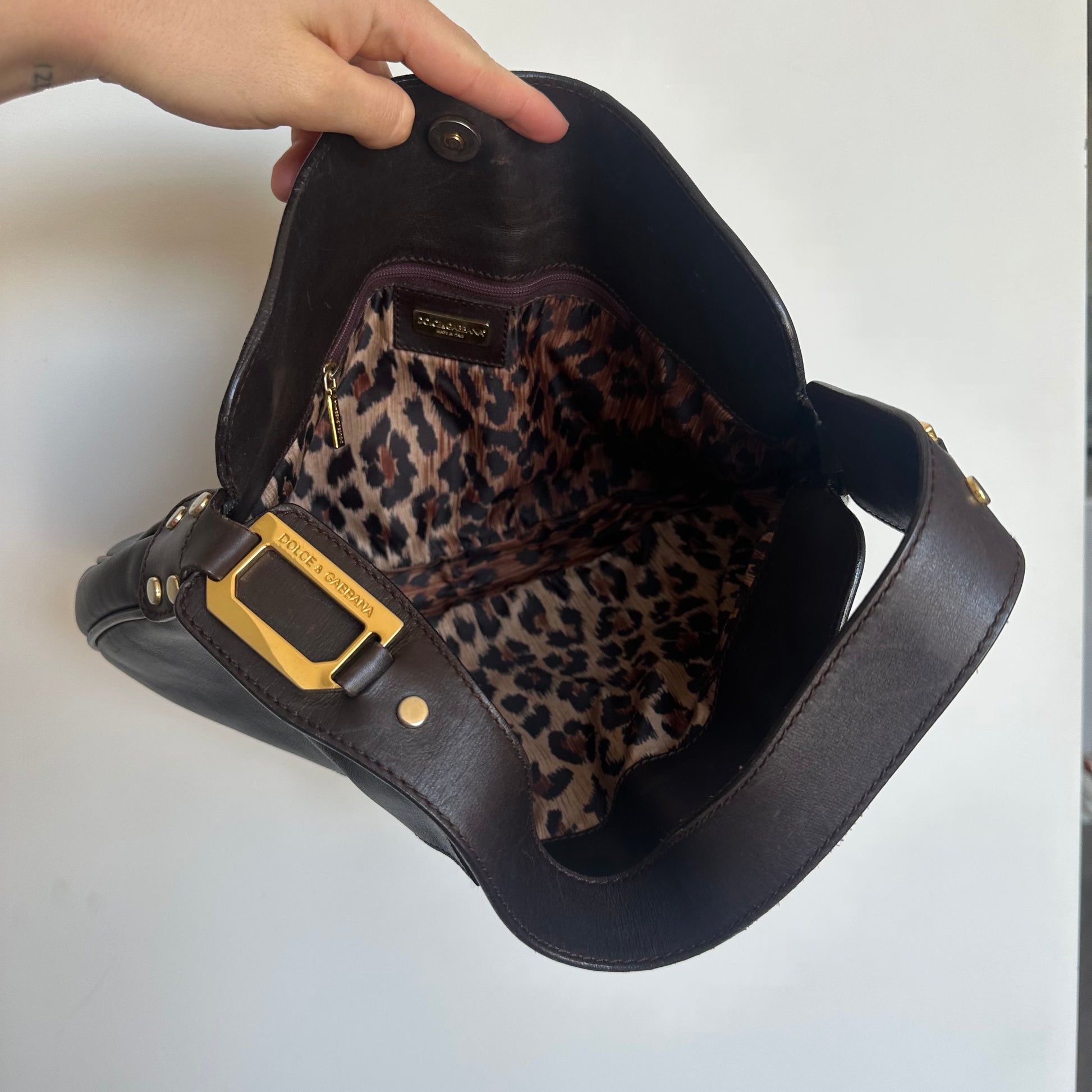 Dolce & Gabbana Brown Leather Slouchy Bag with Gold Hardware