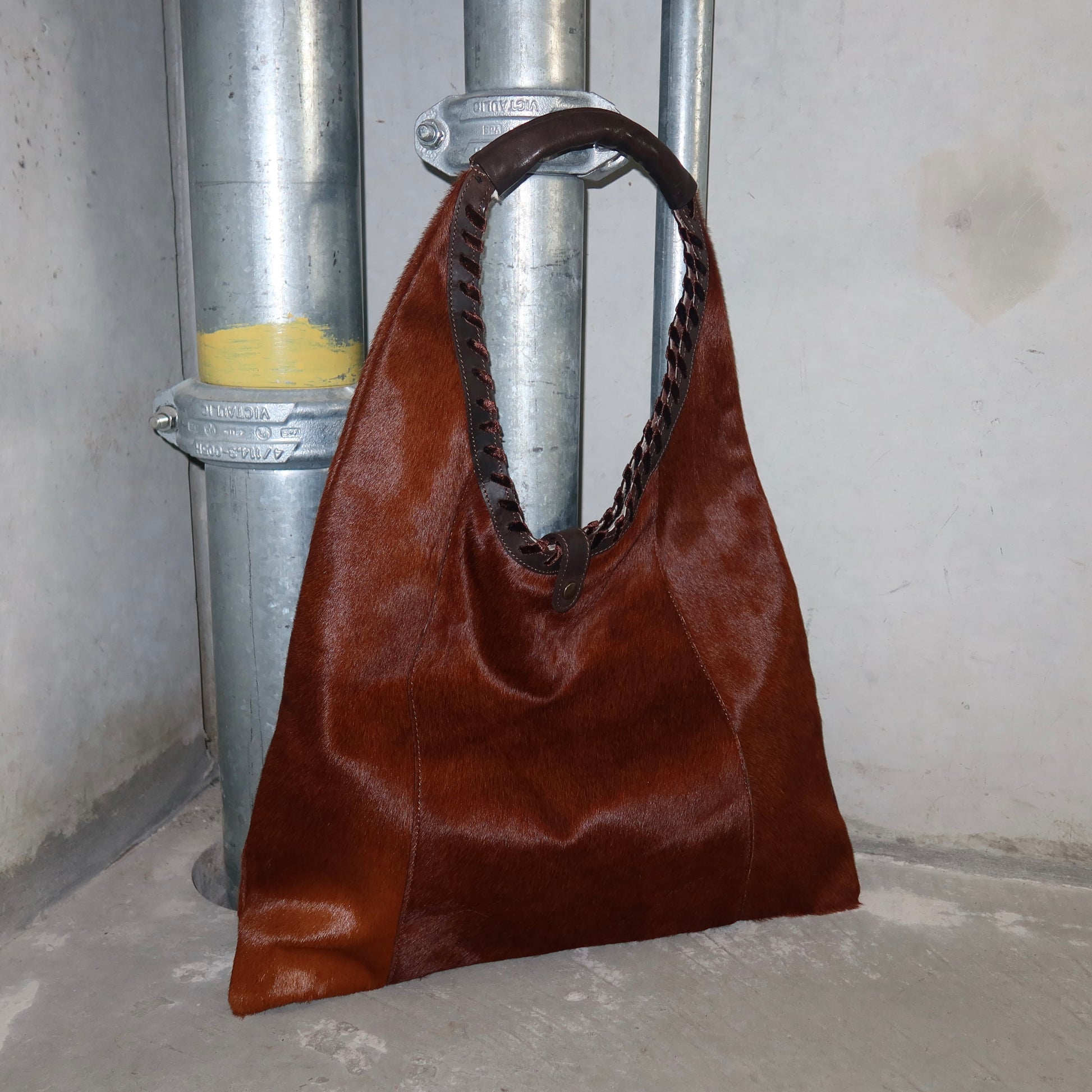 Beautiful large brown cowhide hobo bag by Gianni Notaro. Made in Italy.