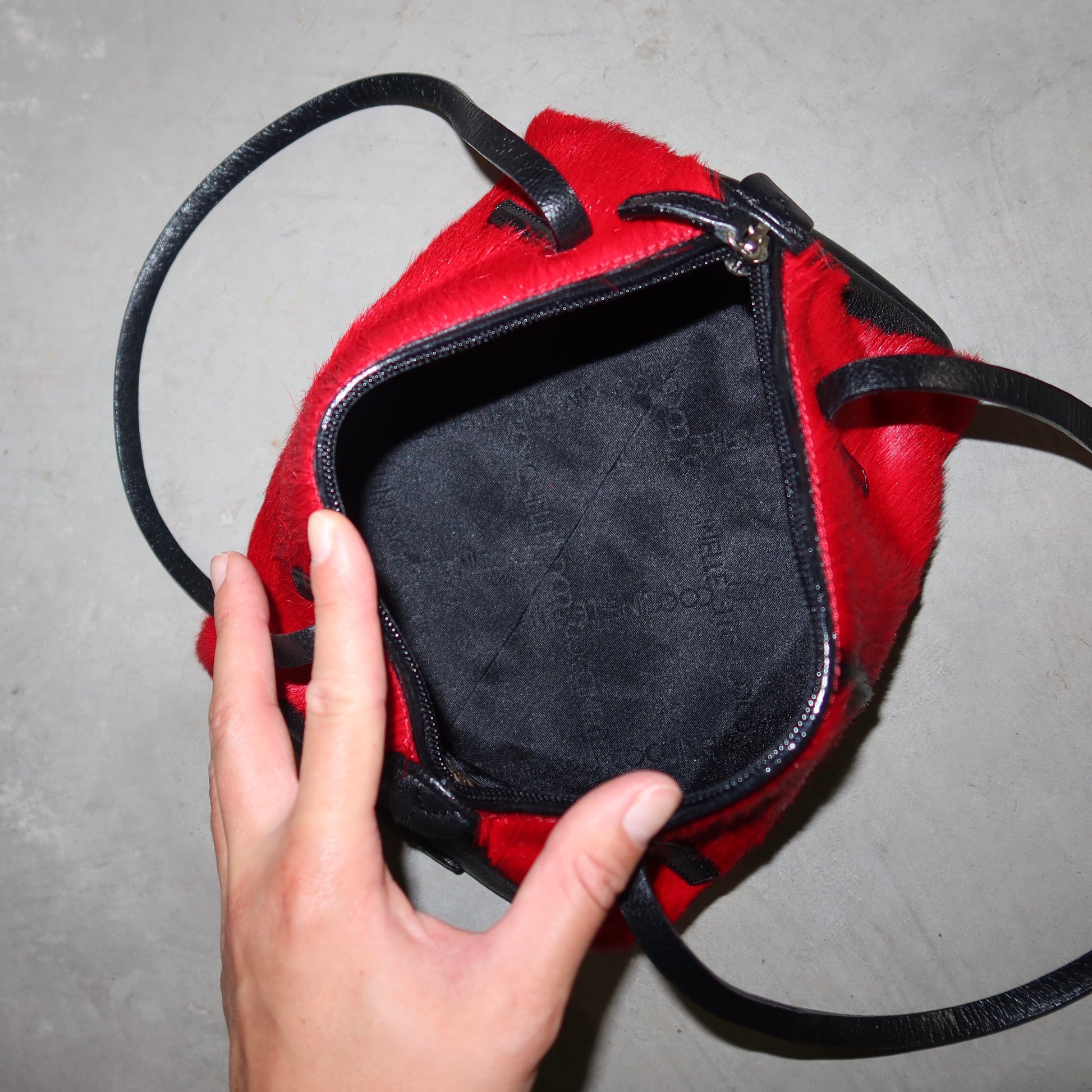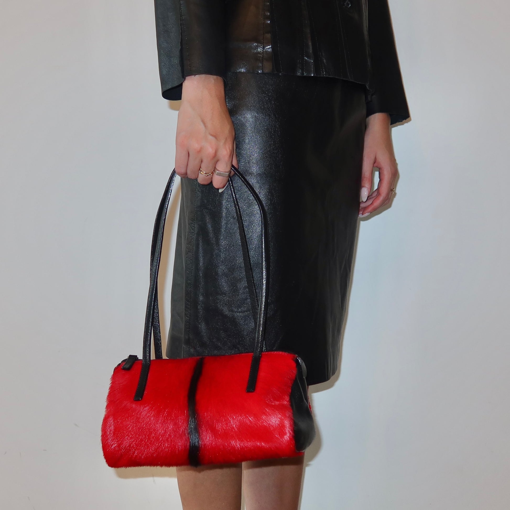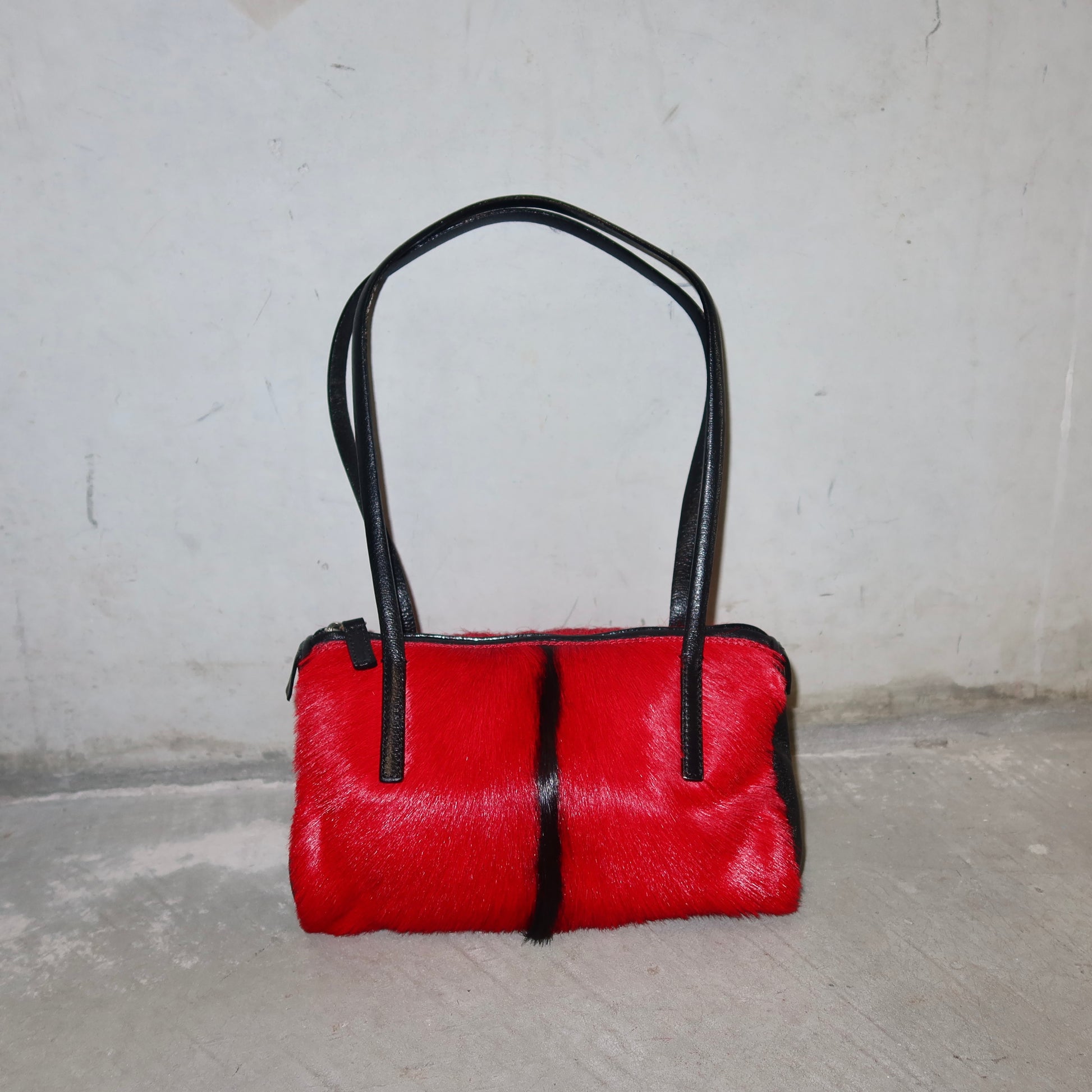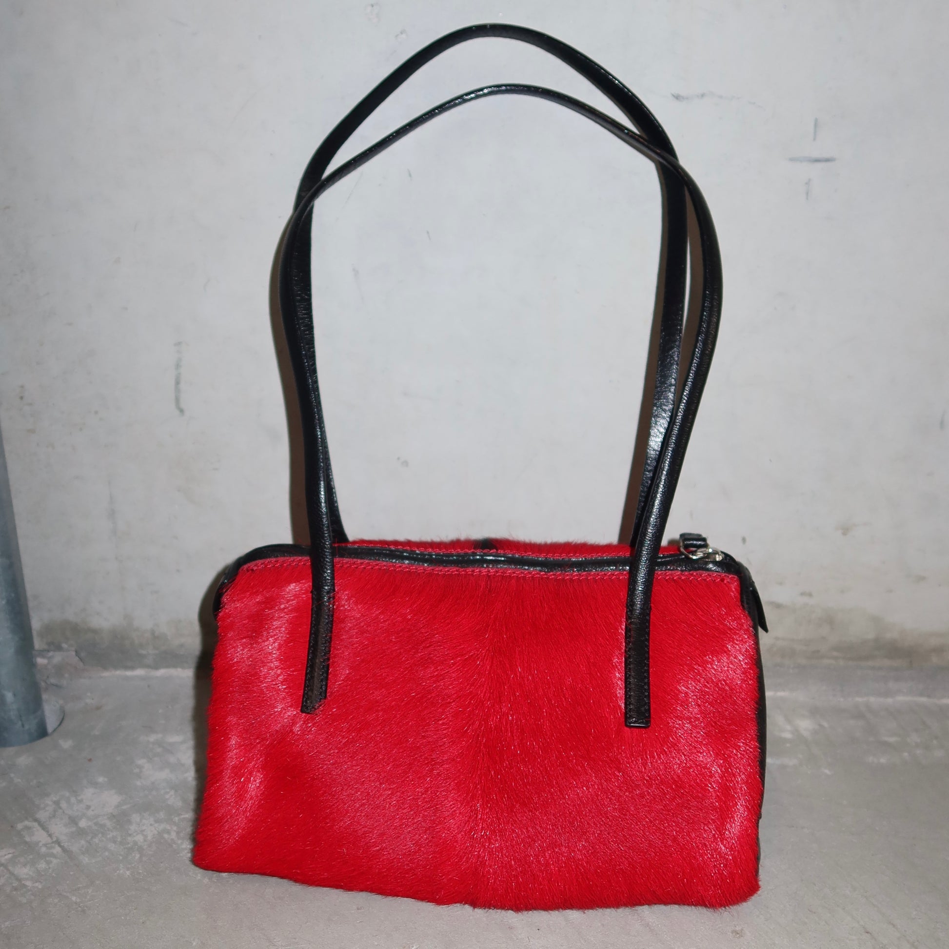 Beautiful red and black real cowhide bag with skinny leather straps. Made in Italy.