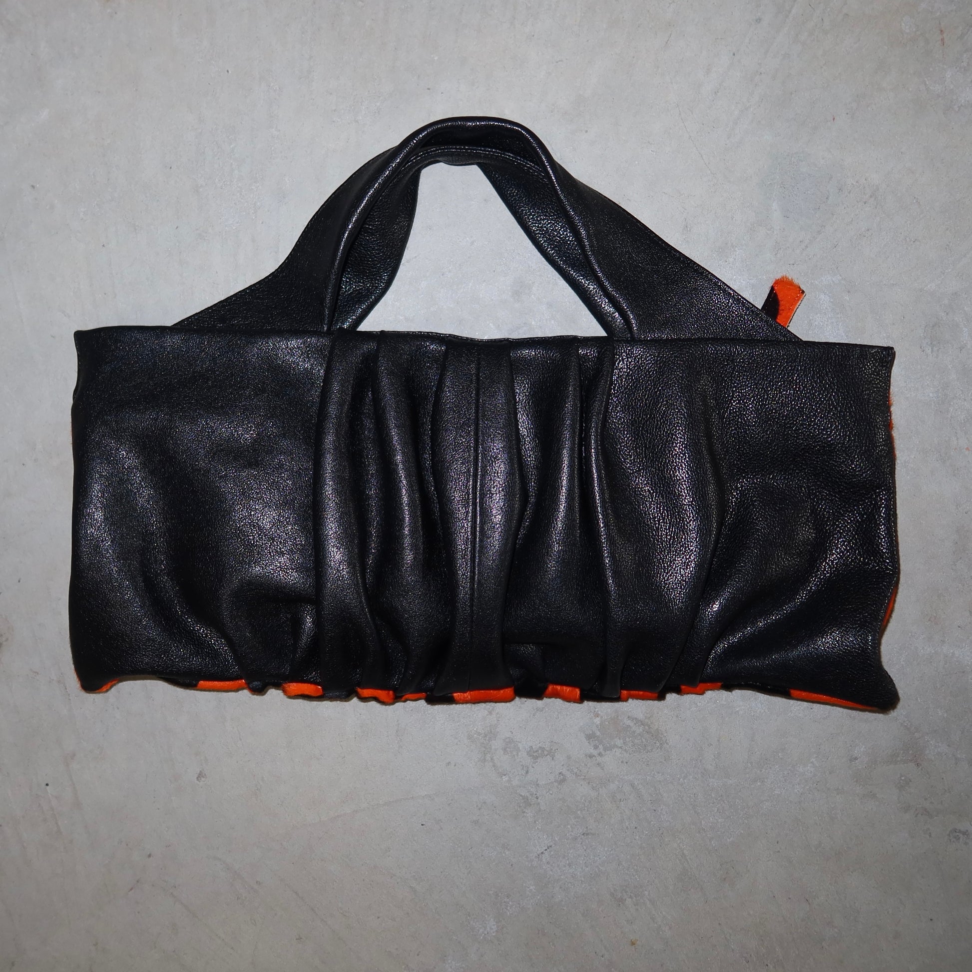 The most stunning bright orange polka dot cowhide and black leather bag. Italian brand. Please note this does not fit on the shoulder.