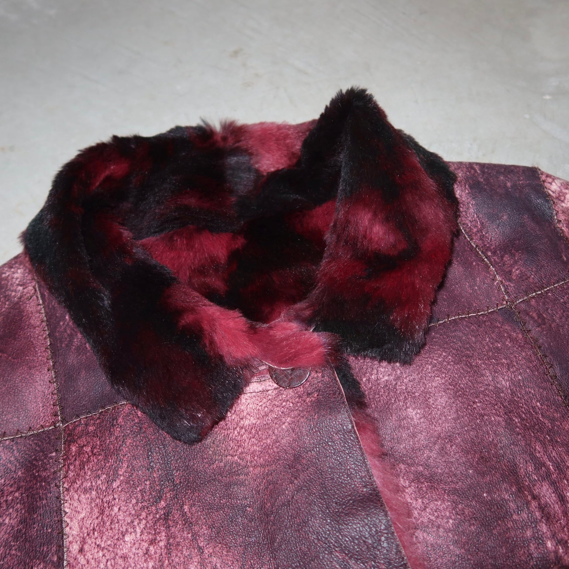 Gorgeous red leather jacket by Japanese leather brand Cizenne with full red dyed real fur lining. Completely reversible, including the collar!
