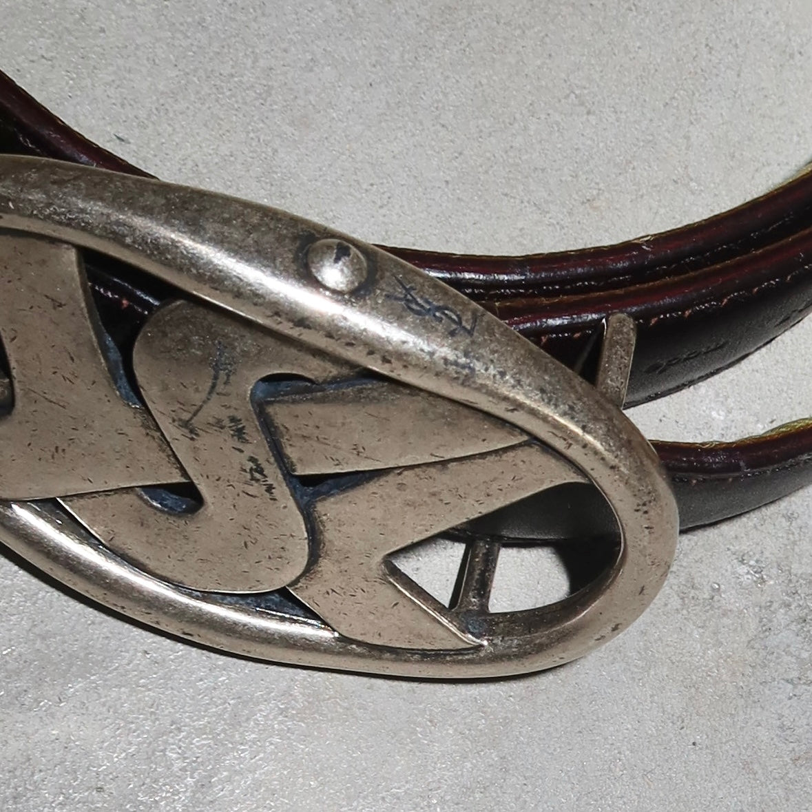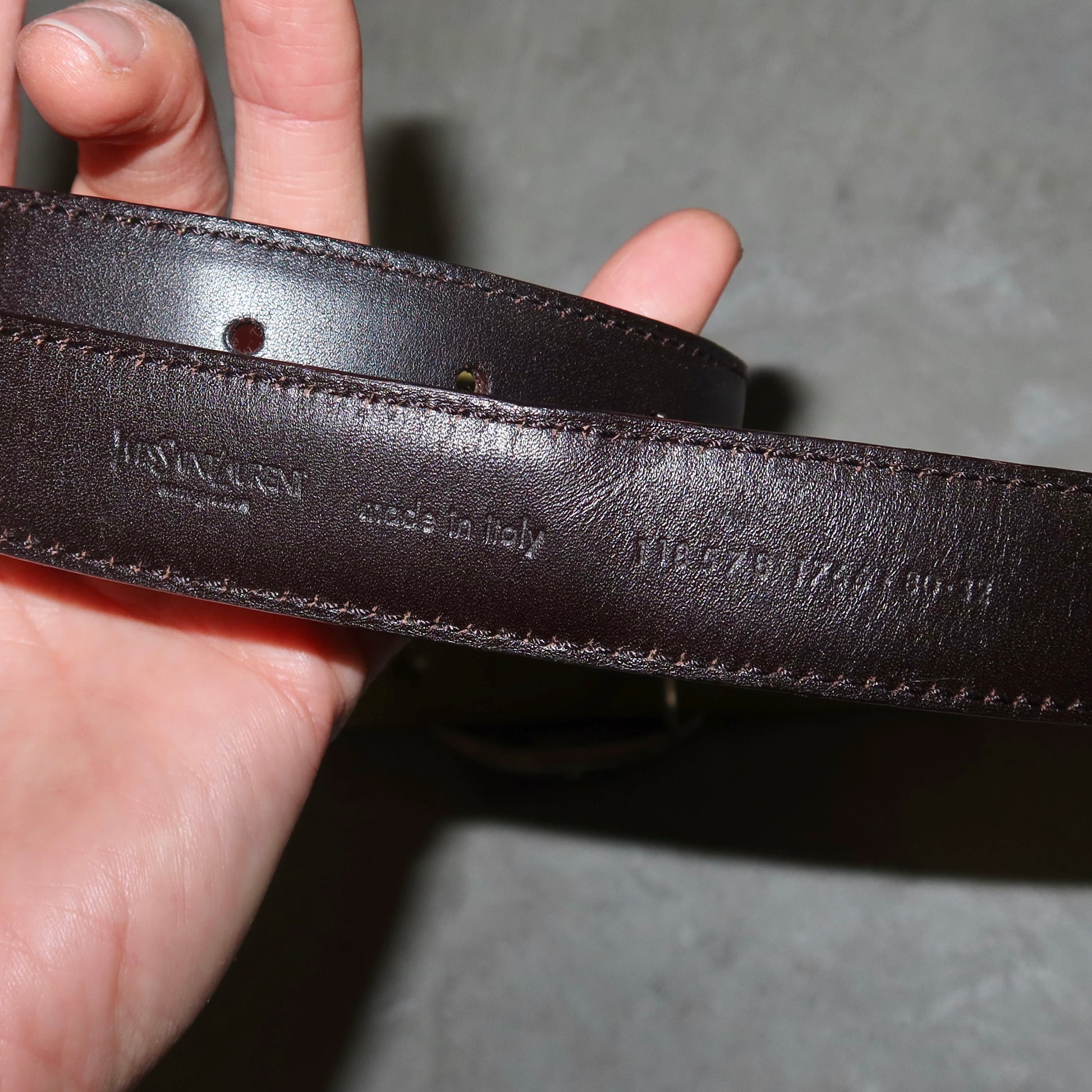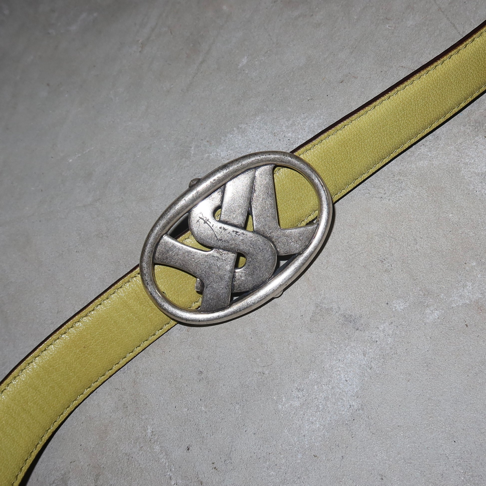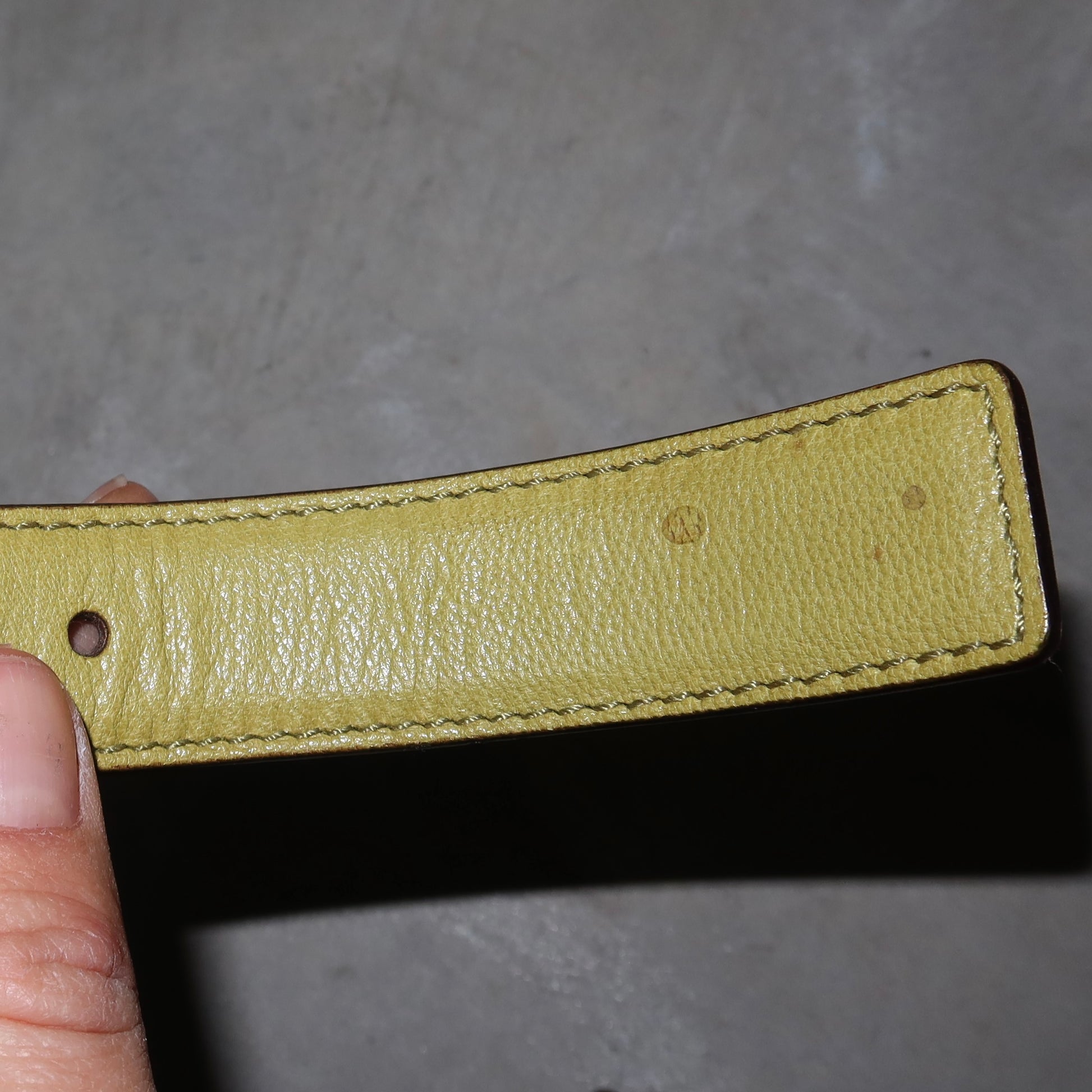 The most beautiful YSL AW2003 belt in a rare reversible green and brown colourway. A skinny version of the one seen on the menswear AW2003 runway.