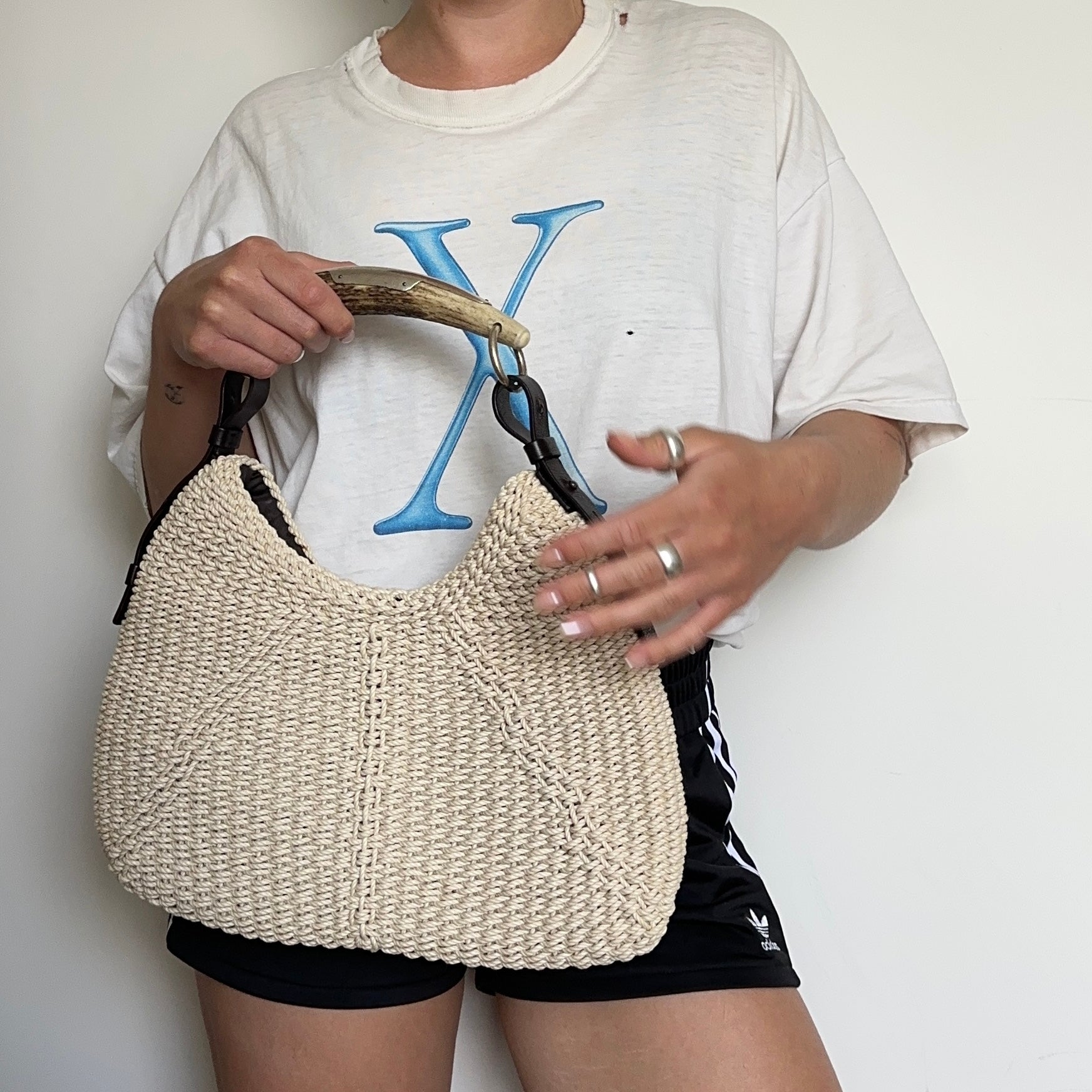 Beautiful cream woven Yves Saint Laurent Mombasa bag.