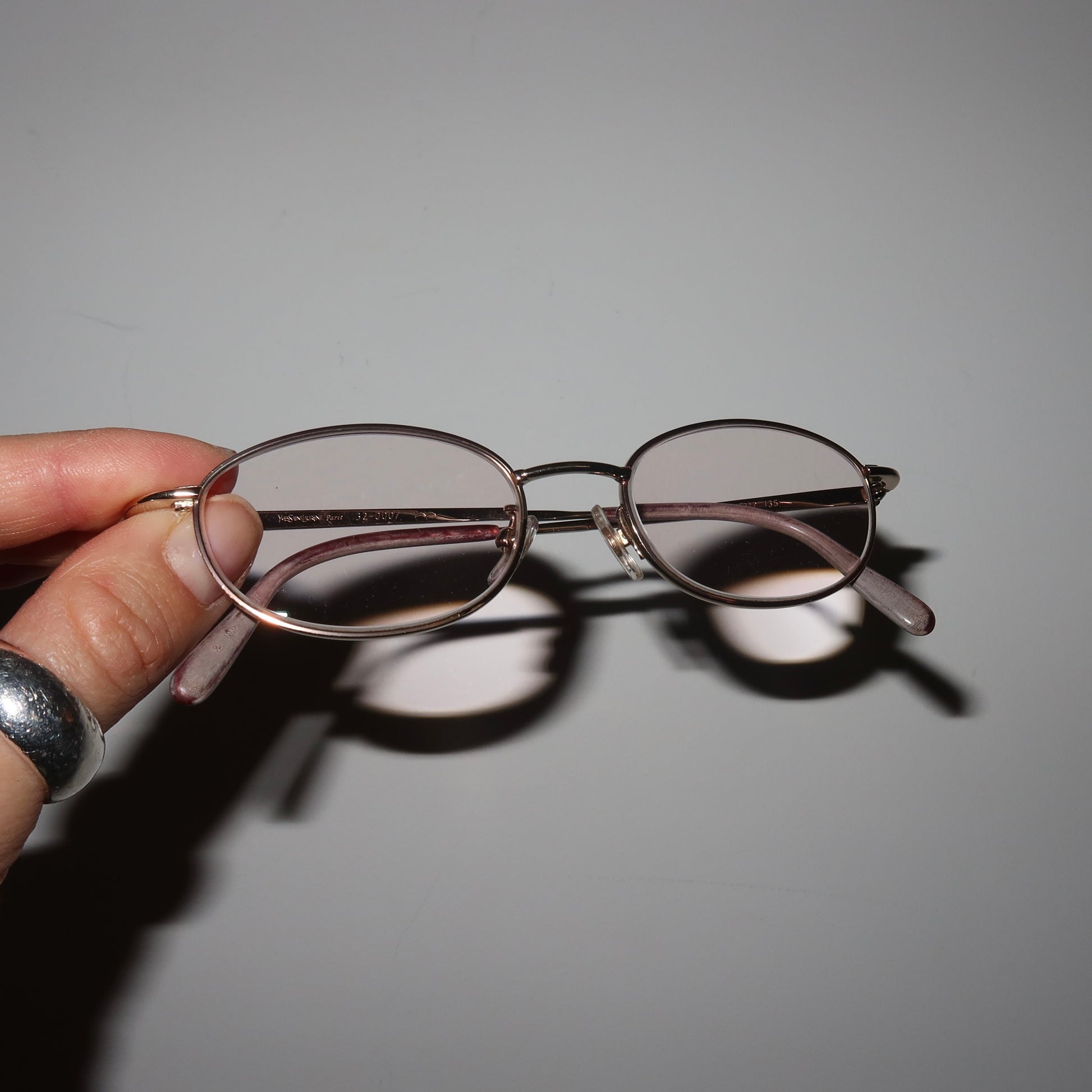 Beautiful little gold frame round optical glasses from YSL. Currently they have a tinted long sighted prescription fitted (my best guess is around +3 ish). This will need removed and fitted with your own prescription.