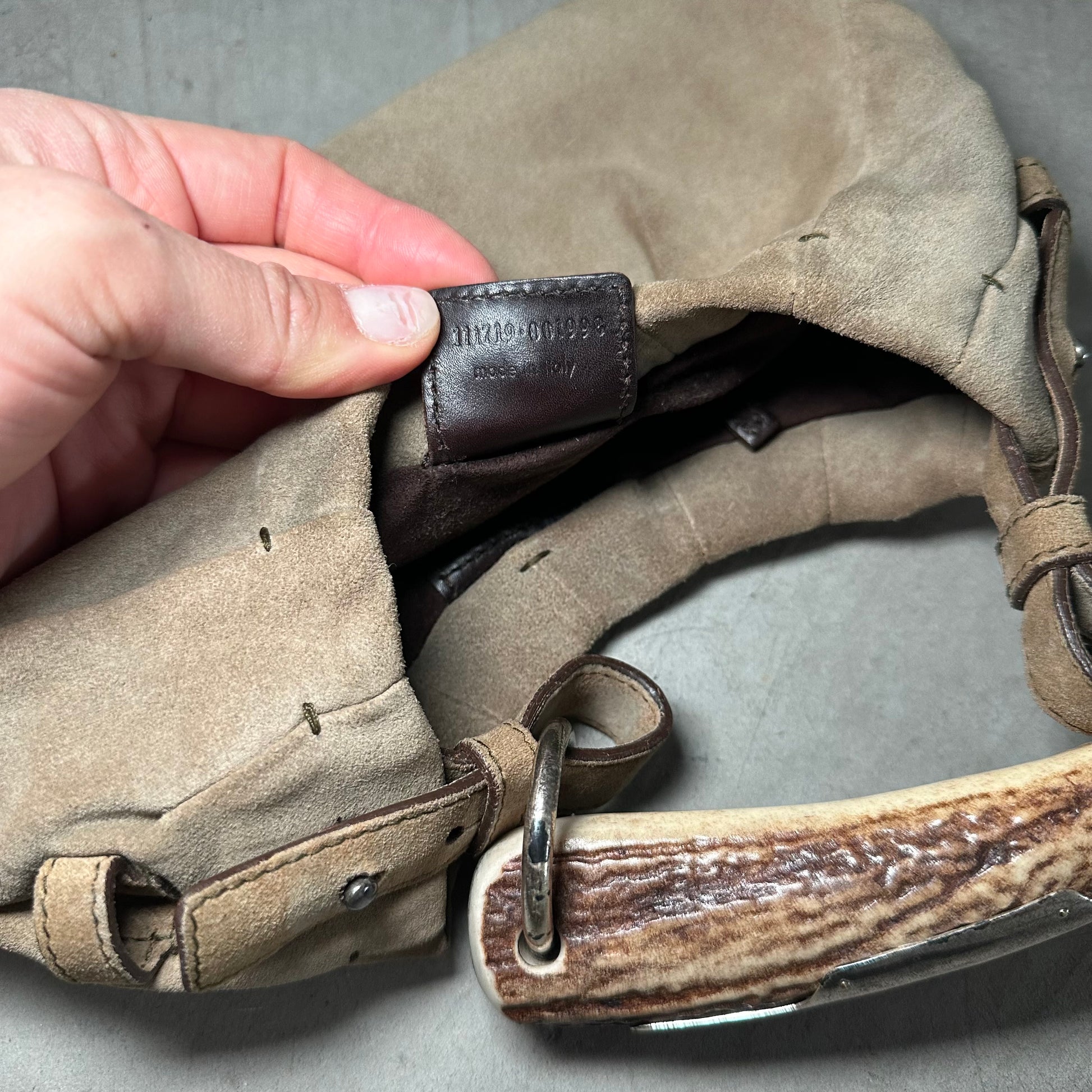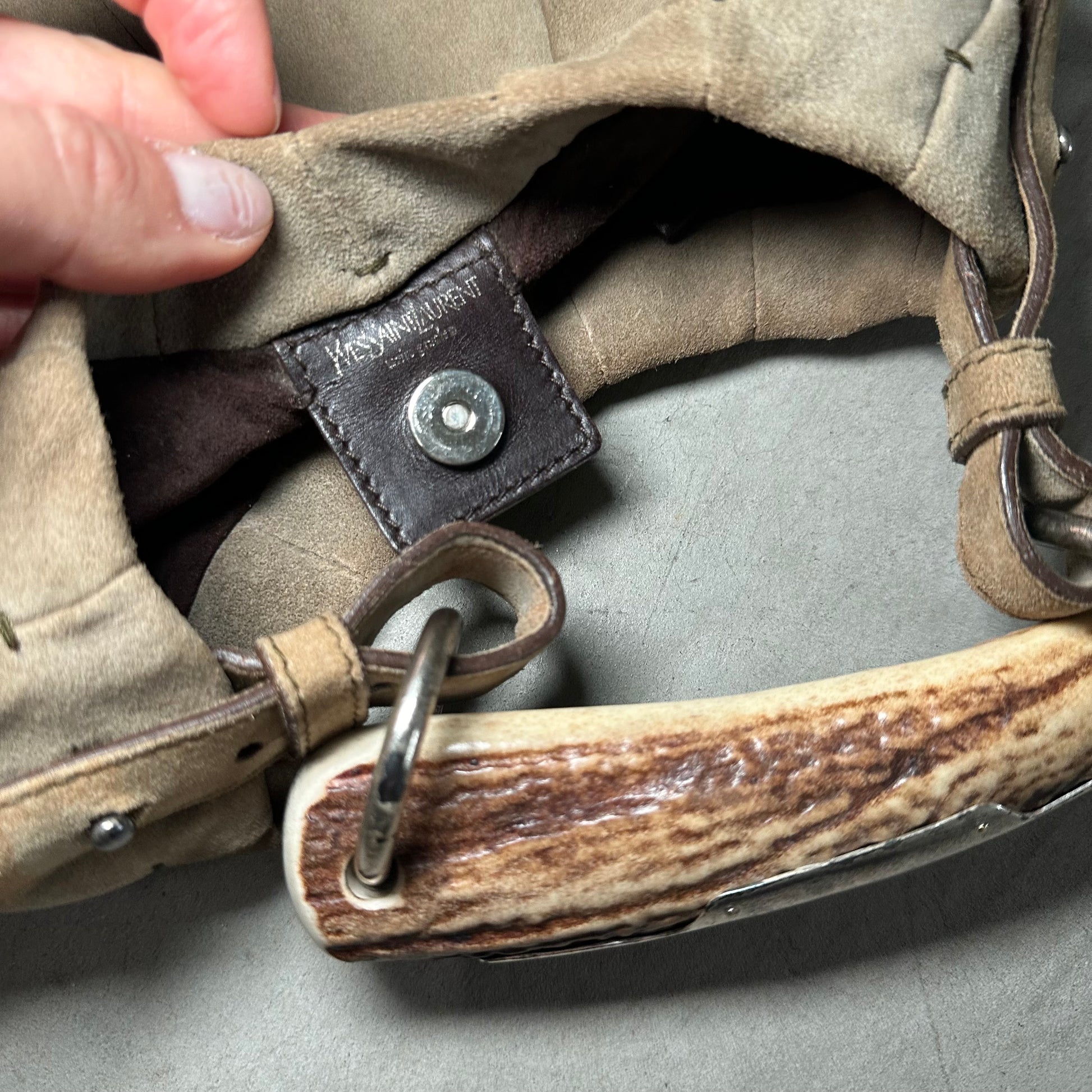 A gorgeous little brown suede mini Mombasa bag by Yves Saint Laurent.